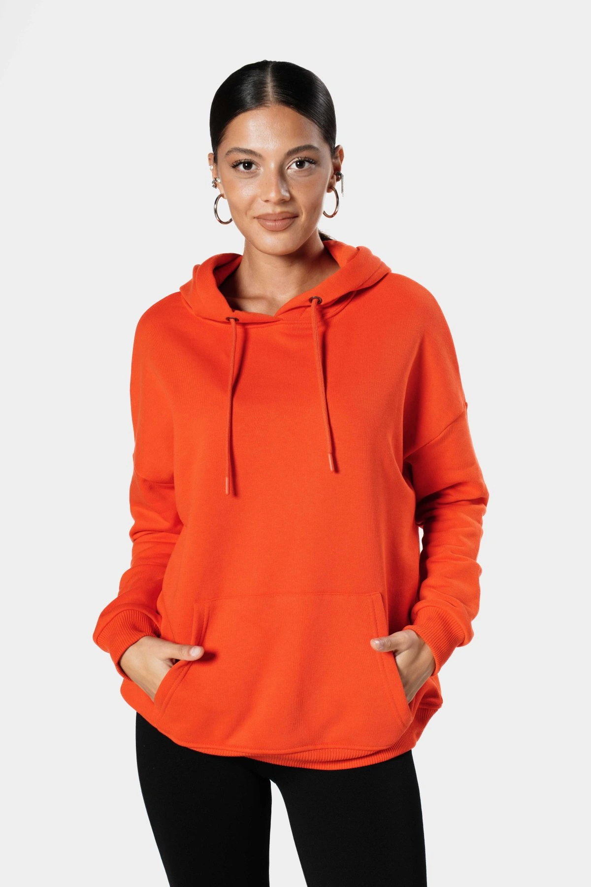 KAPÜŞONLU KANGRU CEPLİ SALAŞ PAMUK SWEAT – AÇIK KIRMIZI