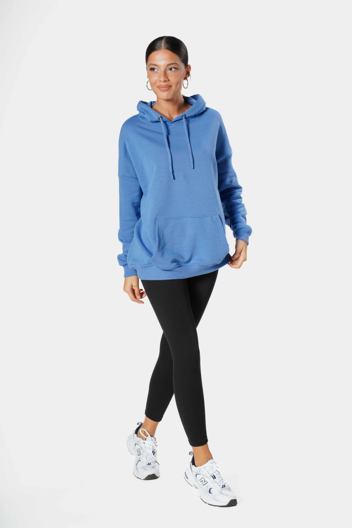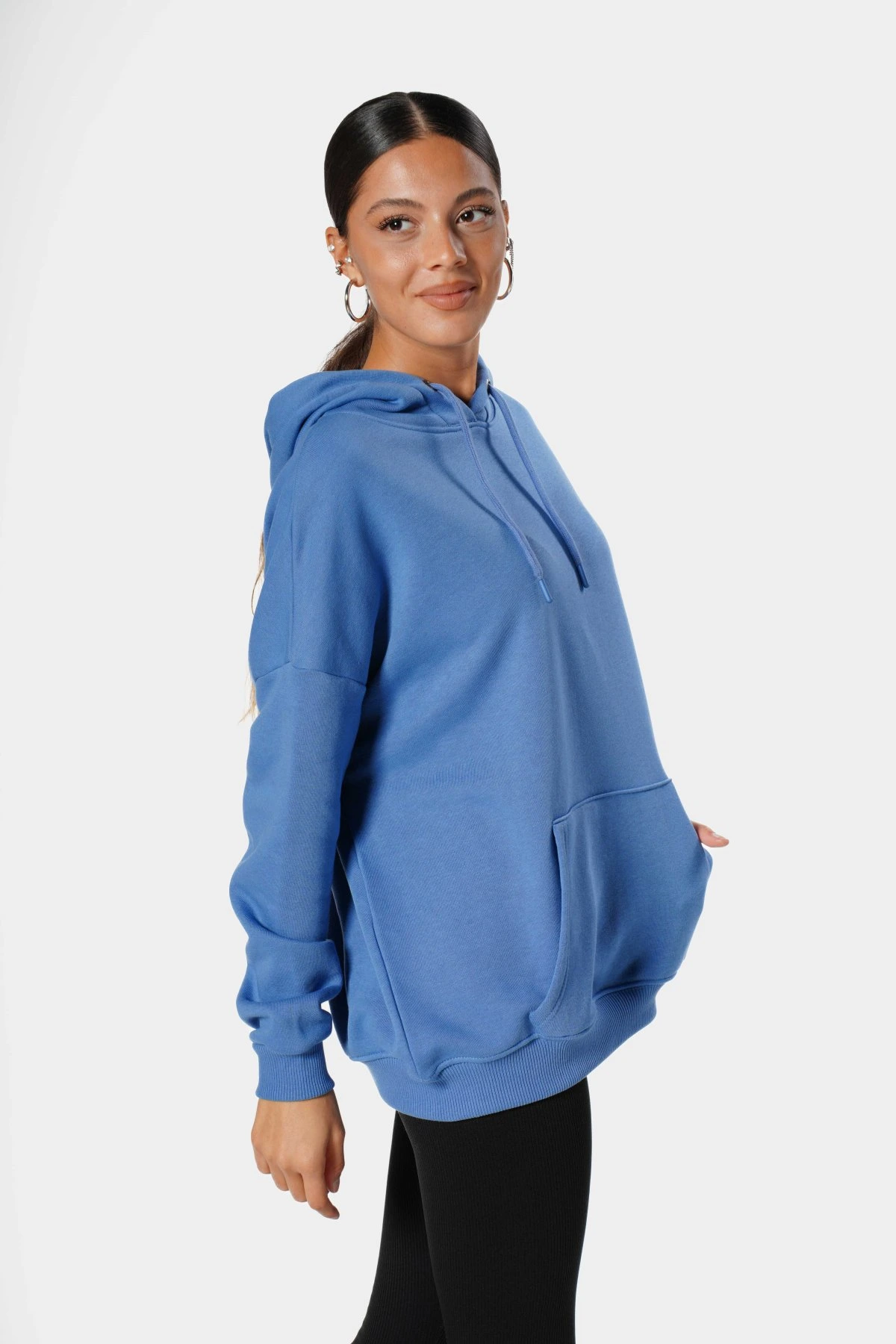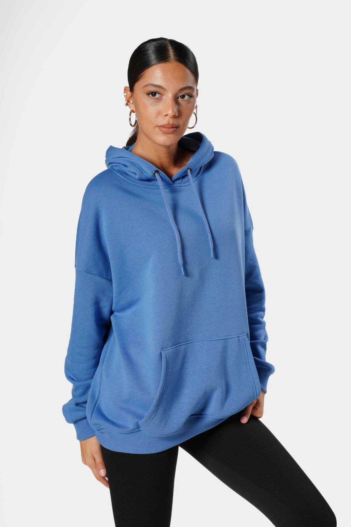 KAPÜŞONLU KANGRU CEPLİ SALAŞ PAMUK SWEAT – İNDİGO