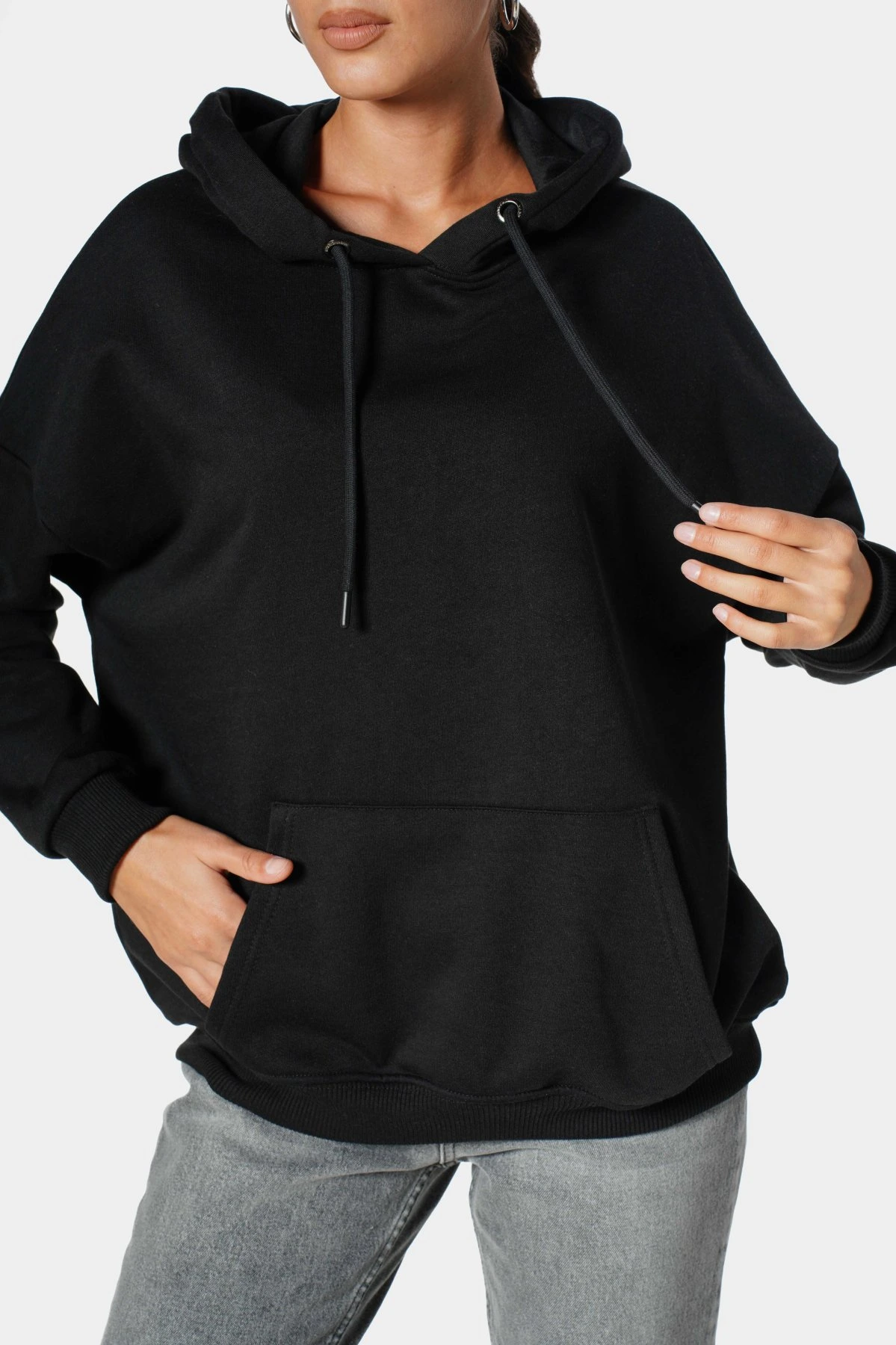 KAPÜŞONLU KANGRU CEPLİ SALAŞ PAMUK SWEAT – SİYAH
