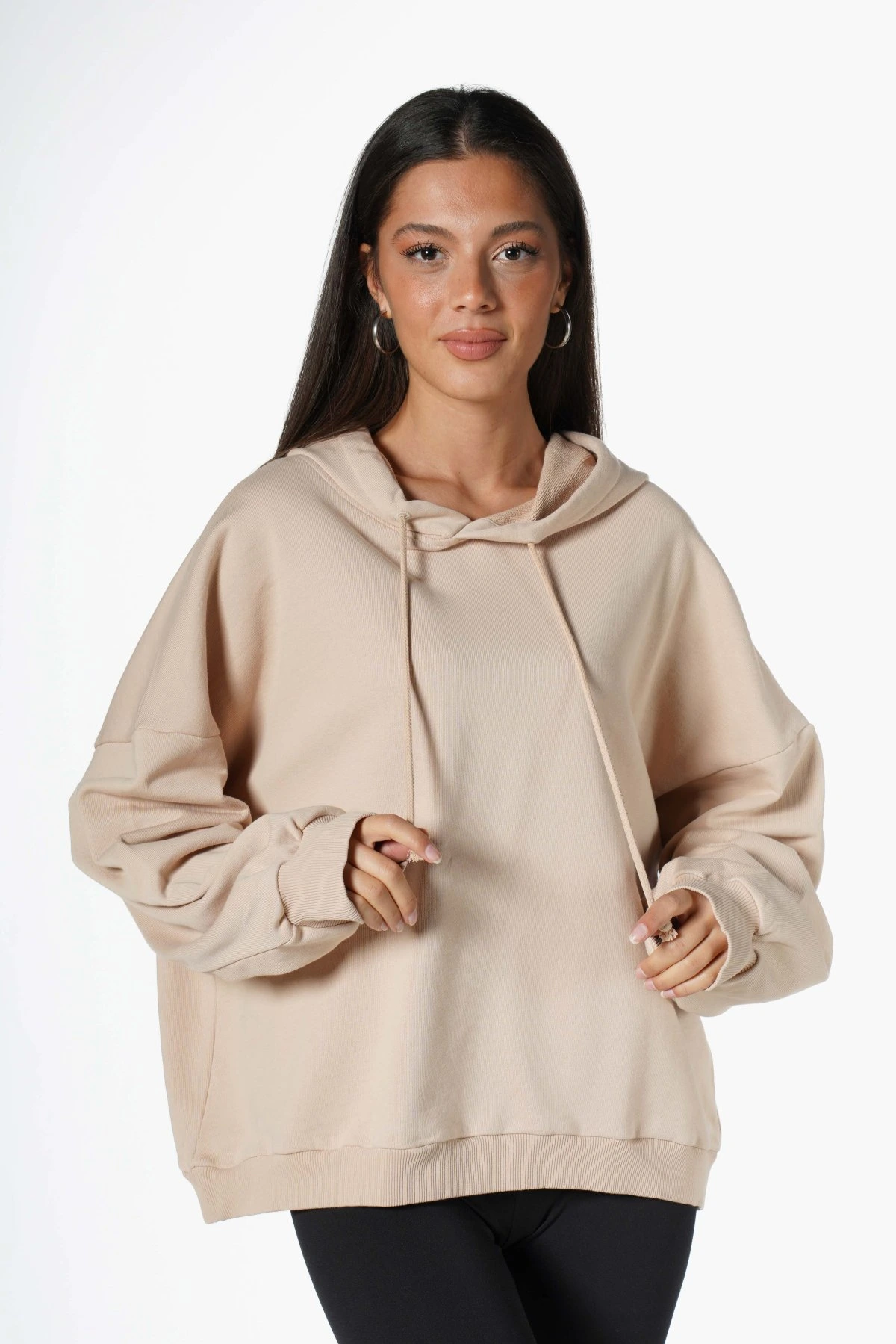 KAPÜŞONLU PAMUK SALAŞ SWEAT – BEJ