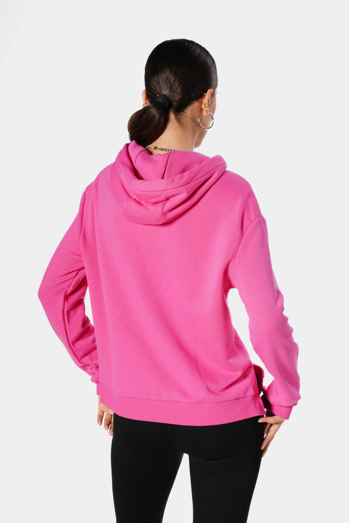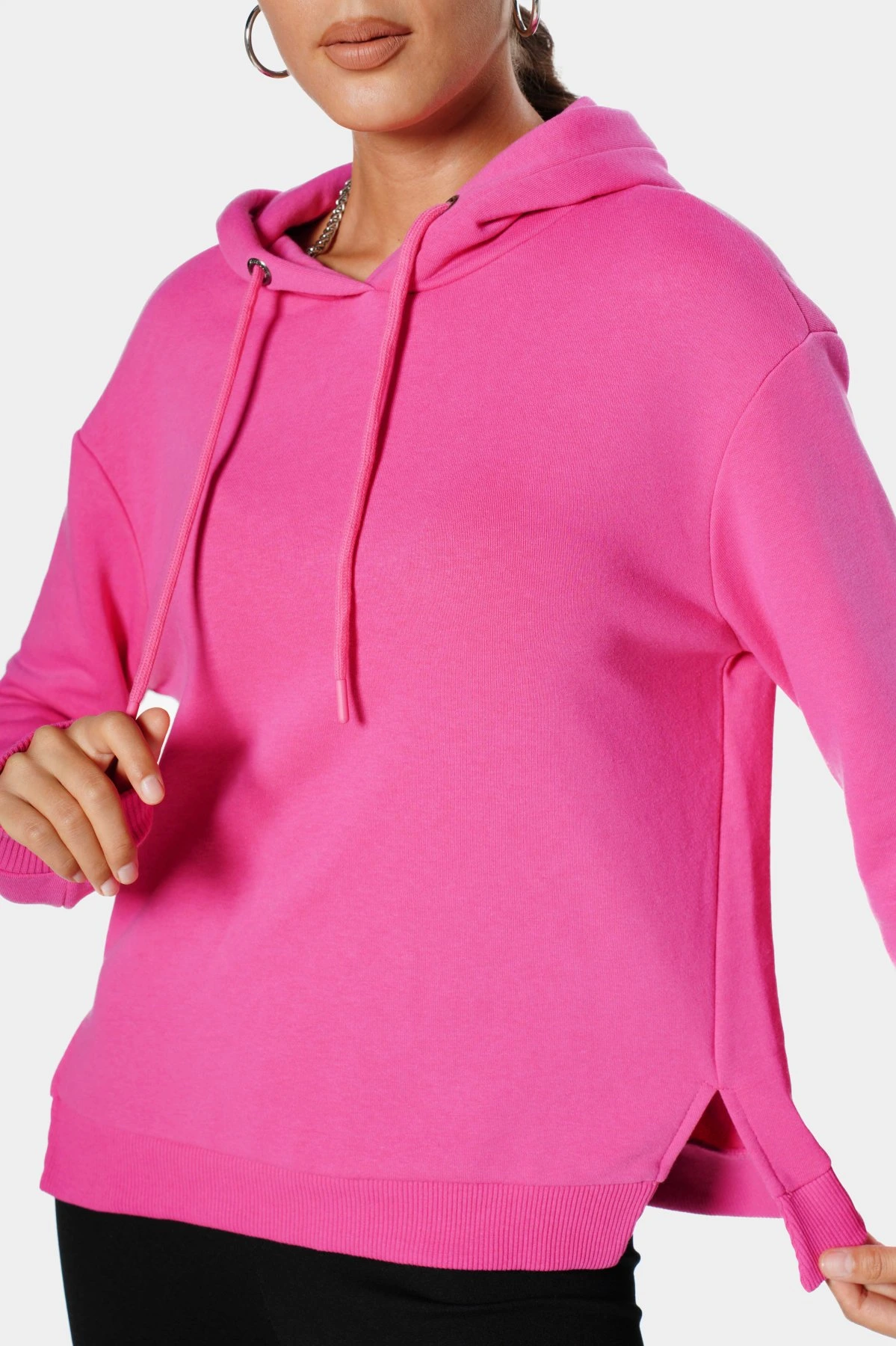 KAPÜŞONLU YAN YIRTMAÇLI SWEAT – PEMBE