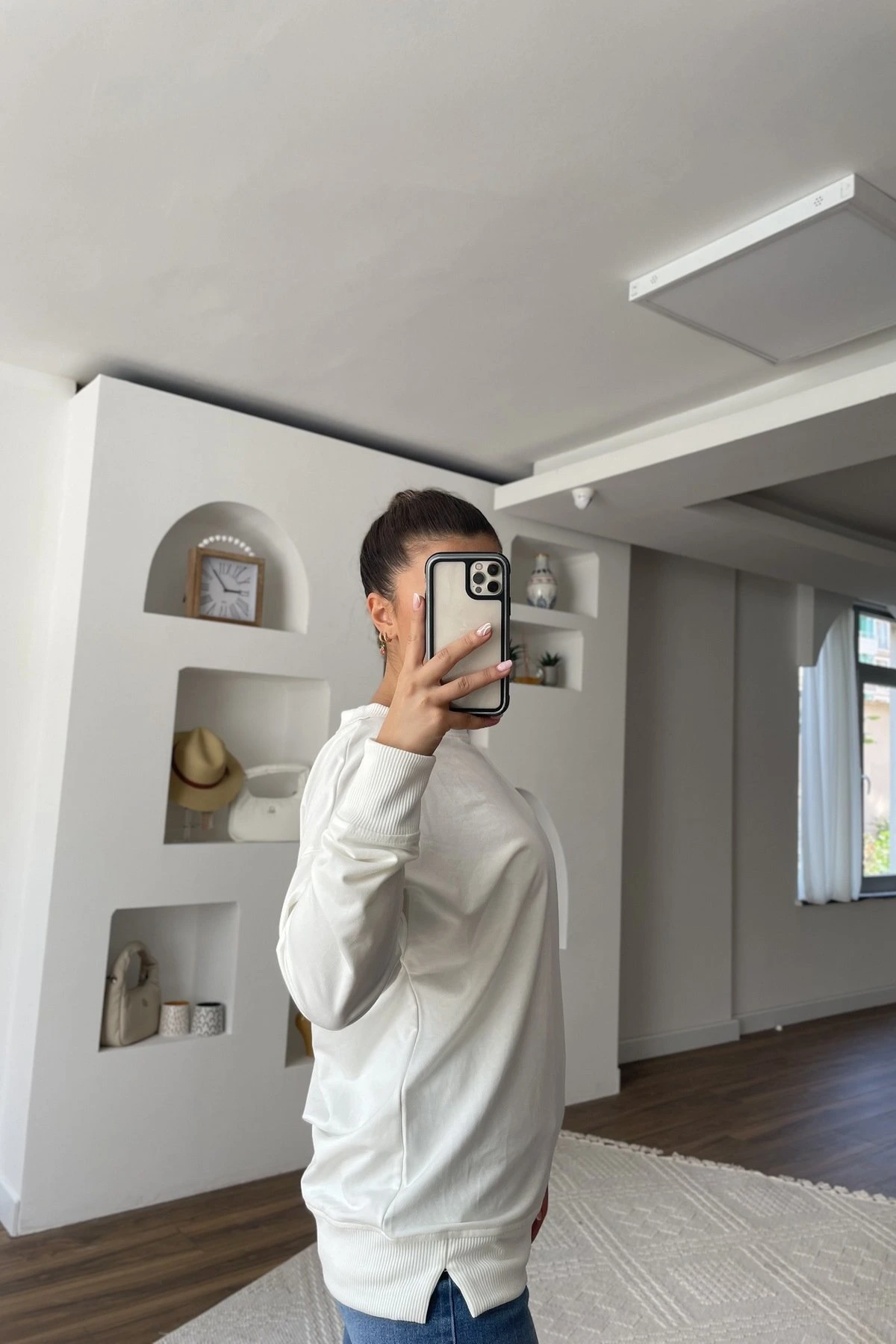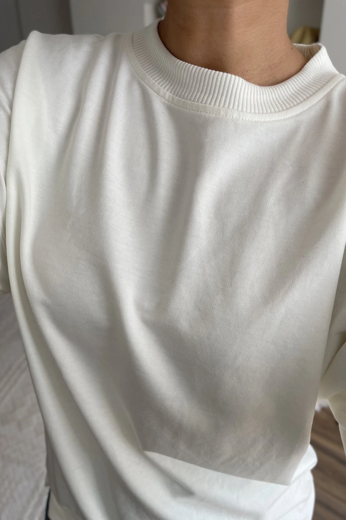 KOL VE YAKA DOKUMA BİSİKLET YAKA PAMUK SWEAT – EKRU