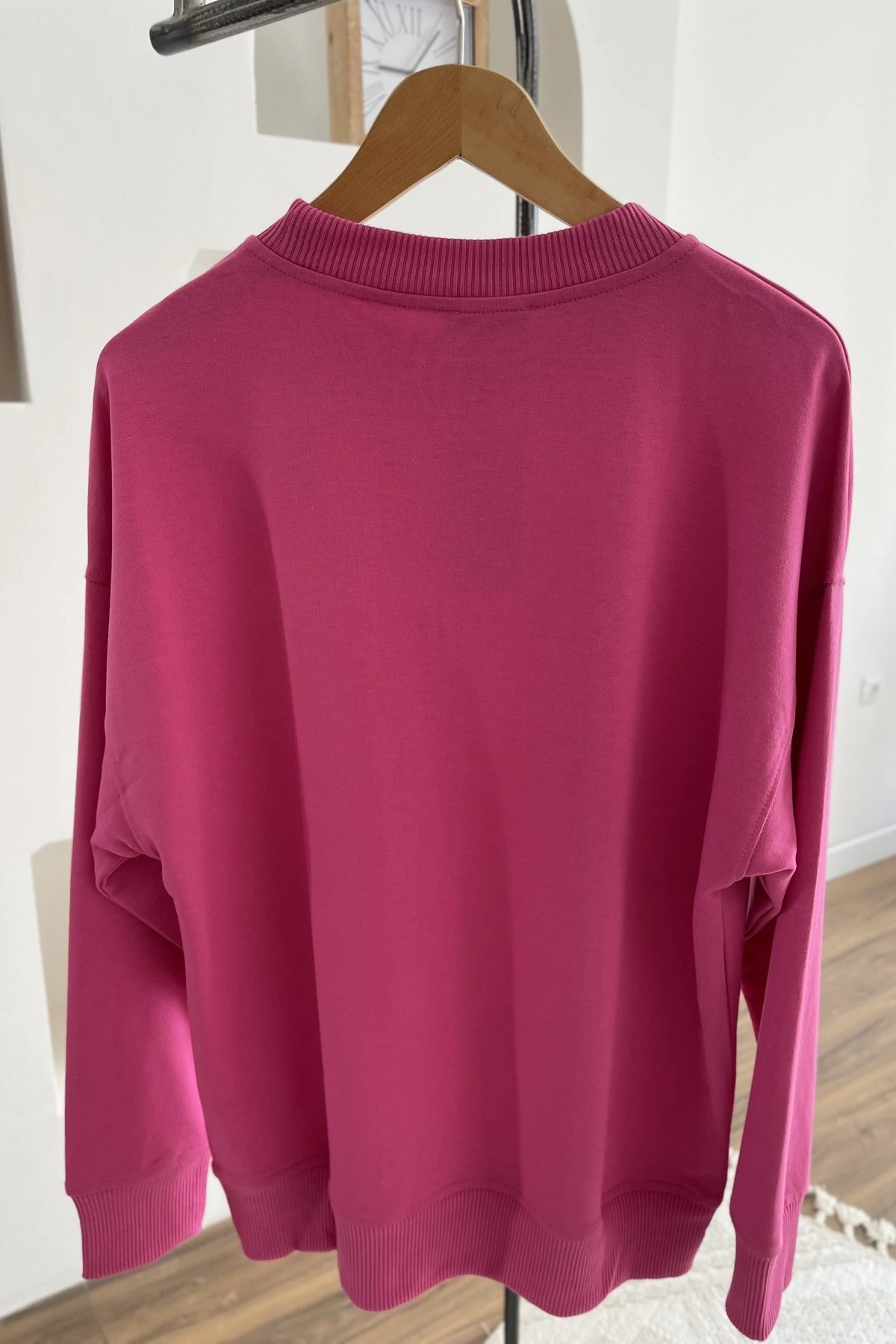 KOL VE YAKA DOKUMA BİSİKLET YAKA PAMUK SWEAT – FUŞYA
