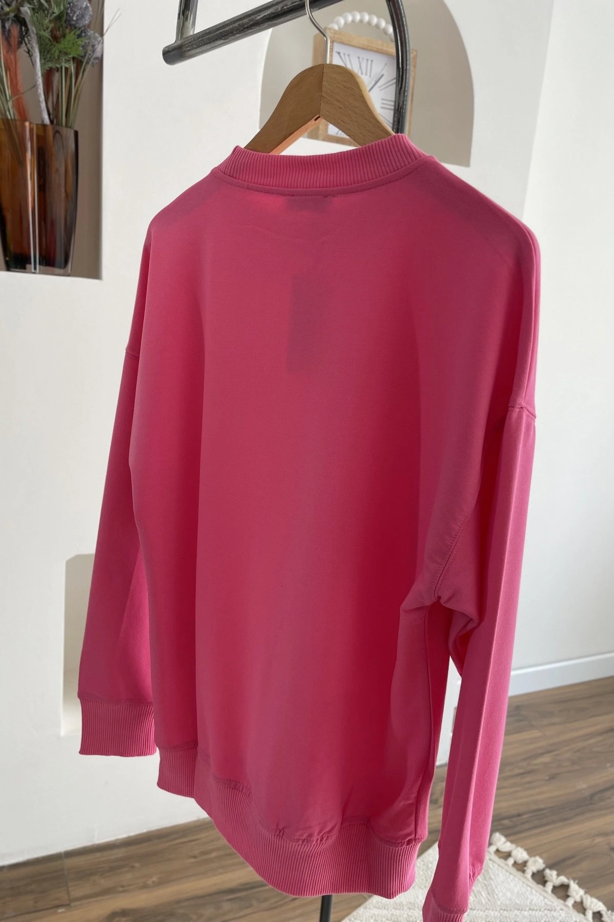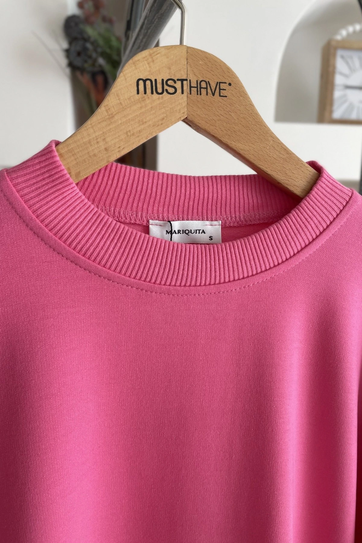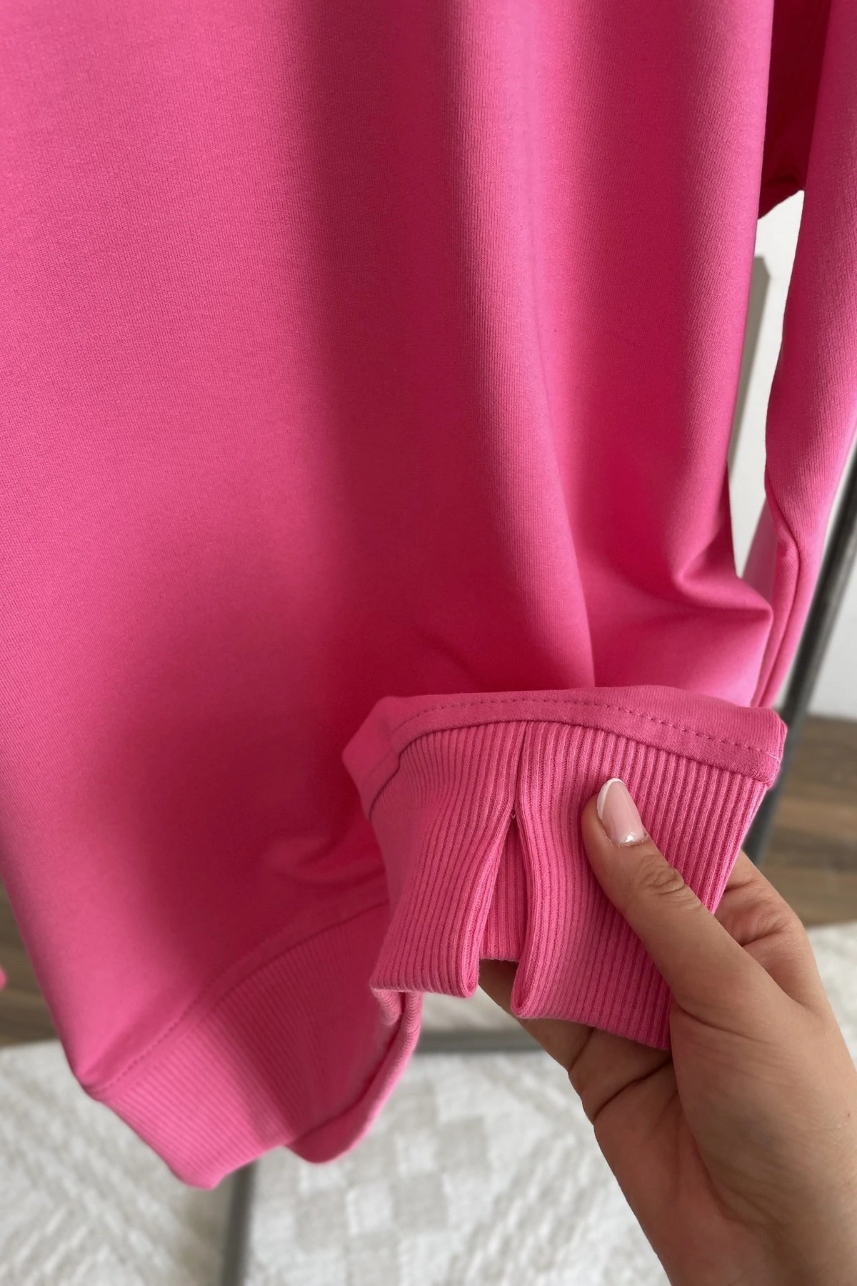 KOL VE YAKA DOKUMA BİSİKLET YAKA PAMUK SWEAT – PEMBE