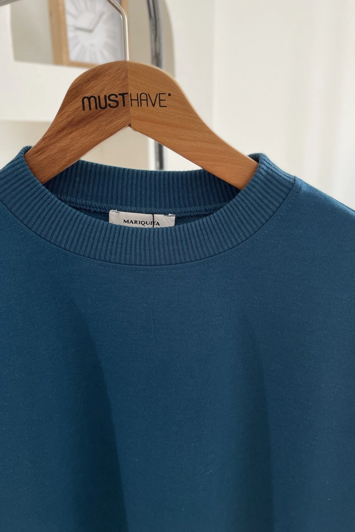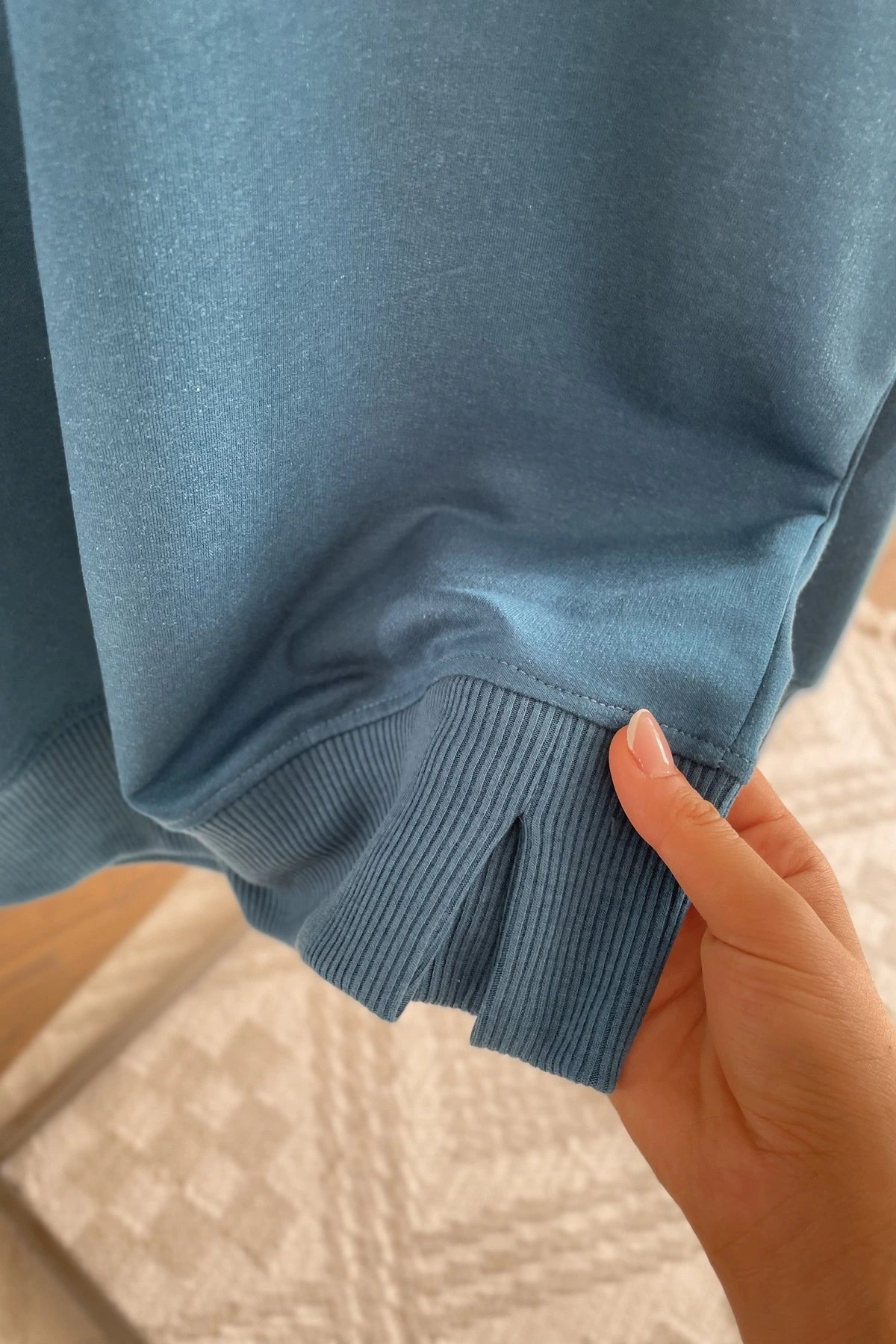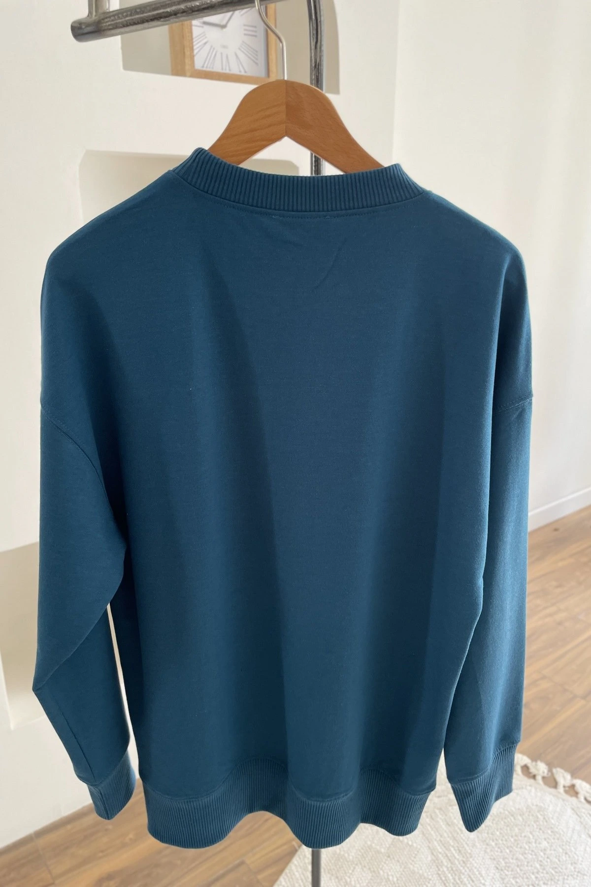 KOL VE YAKA DOKUMA BİSİKLET YAKA PAMUK SWEAT – PETROL