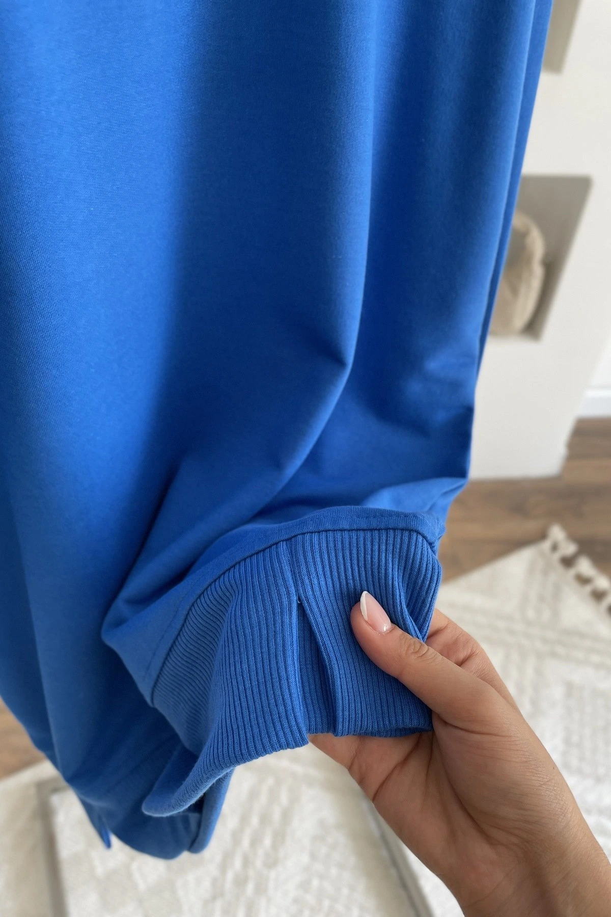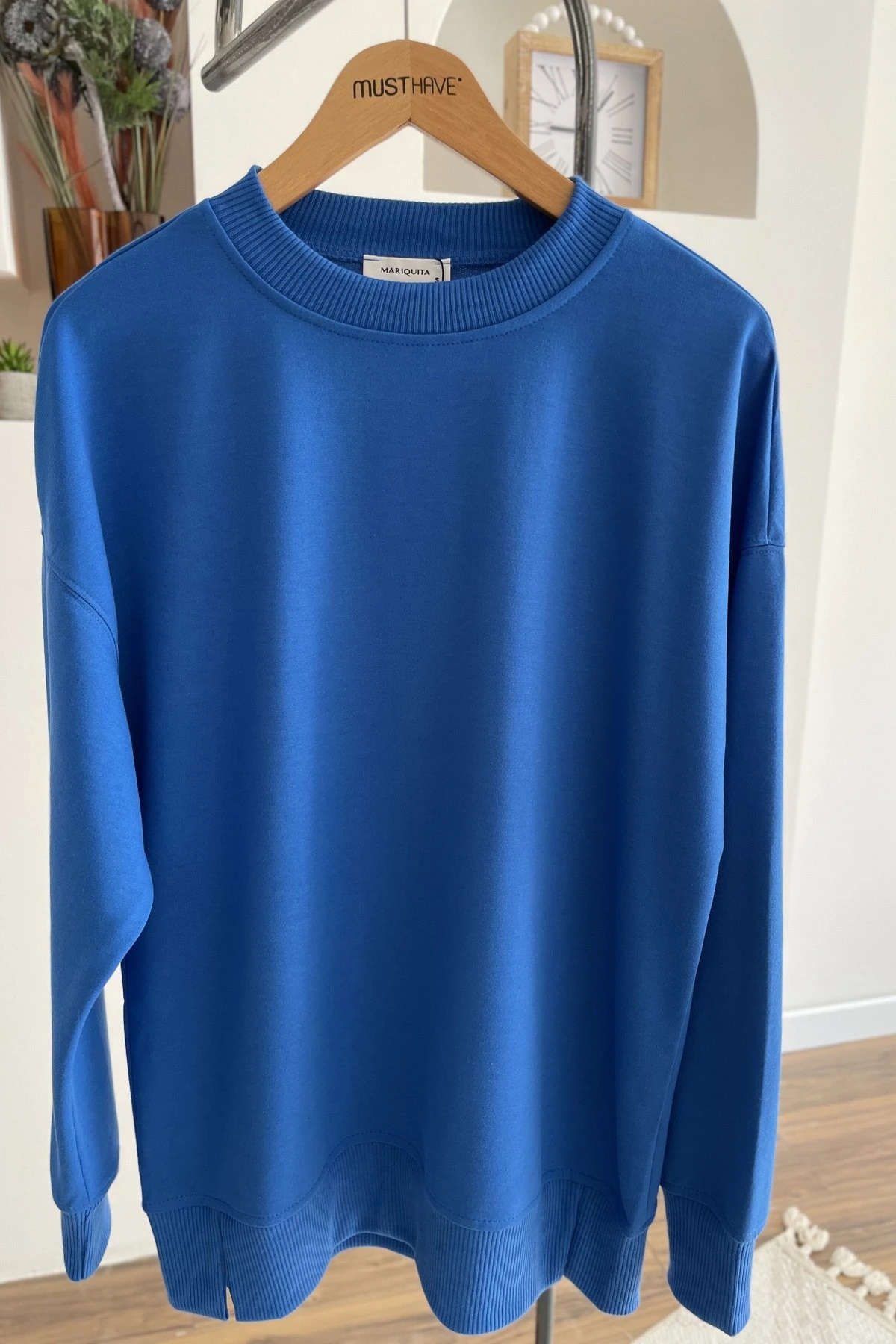 KOL VE YAKA DOKUMA BİSİKLET YAKA PAMUK SWEAT – SAKS