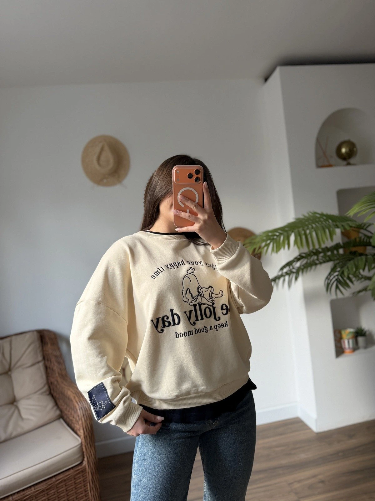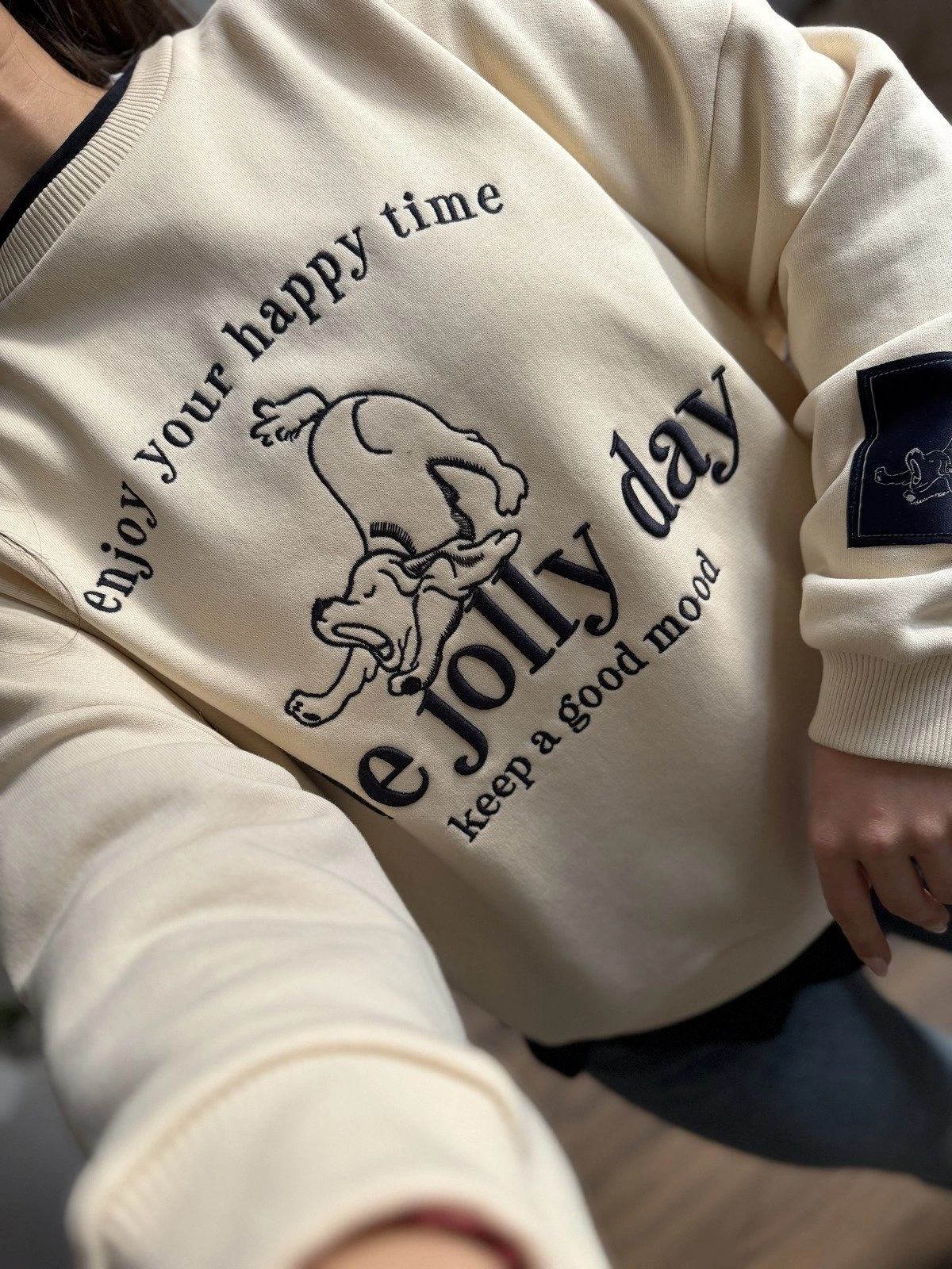KÖPEK NAKIŞ ETEĞİ PENYE DOKUMA PAMUK SWEAT – BEJ