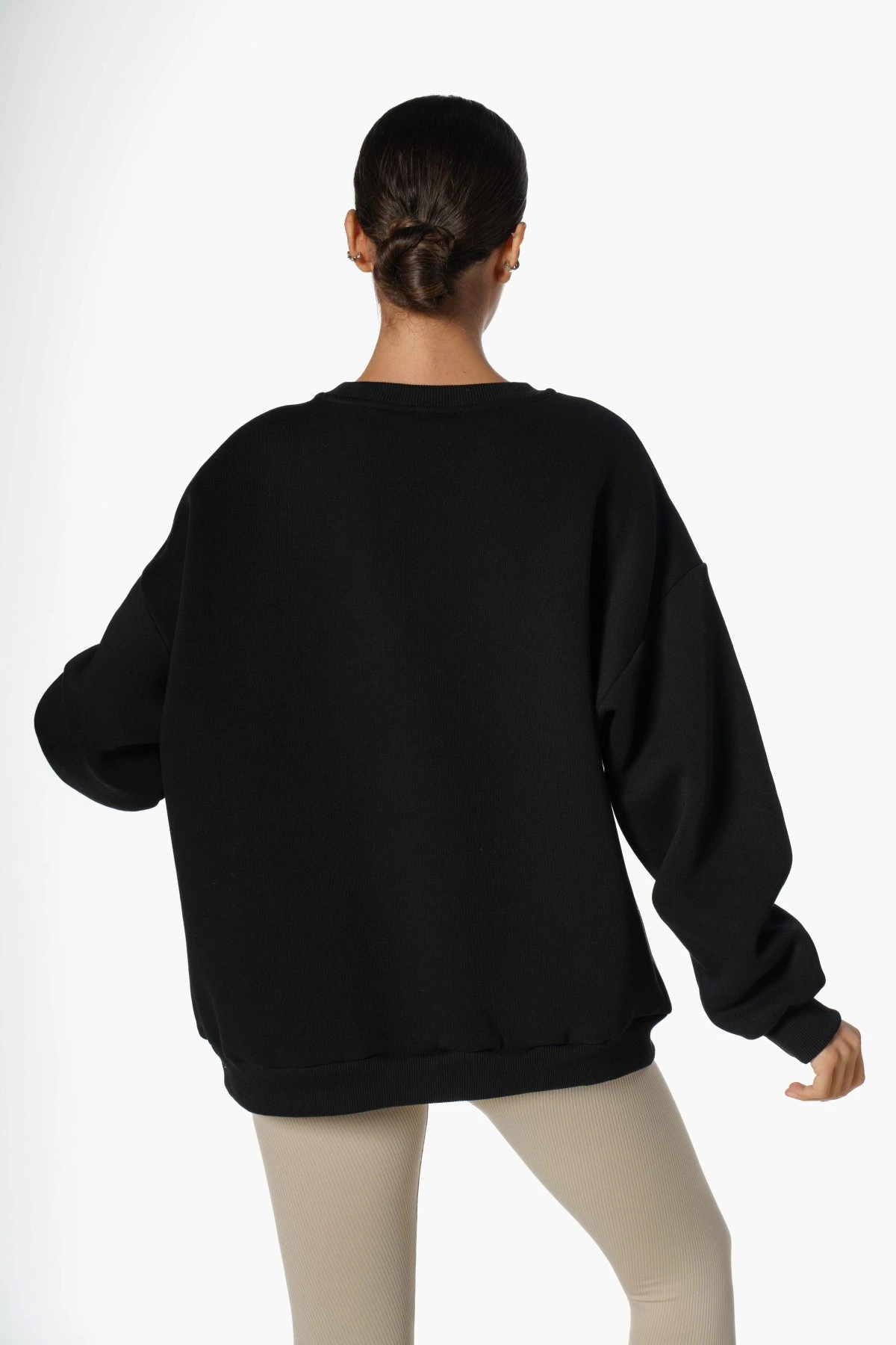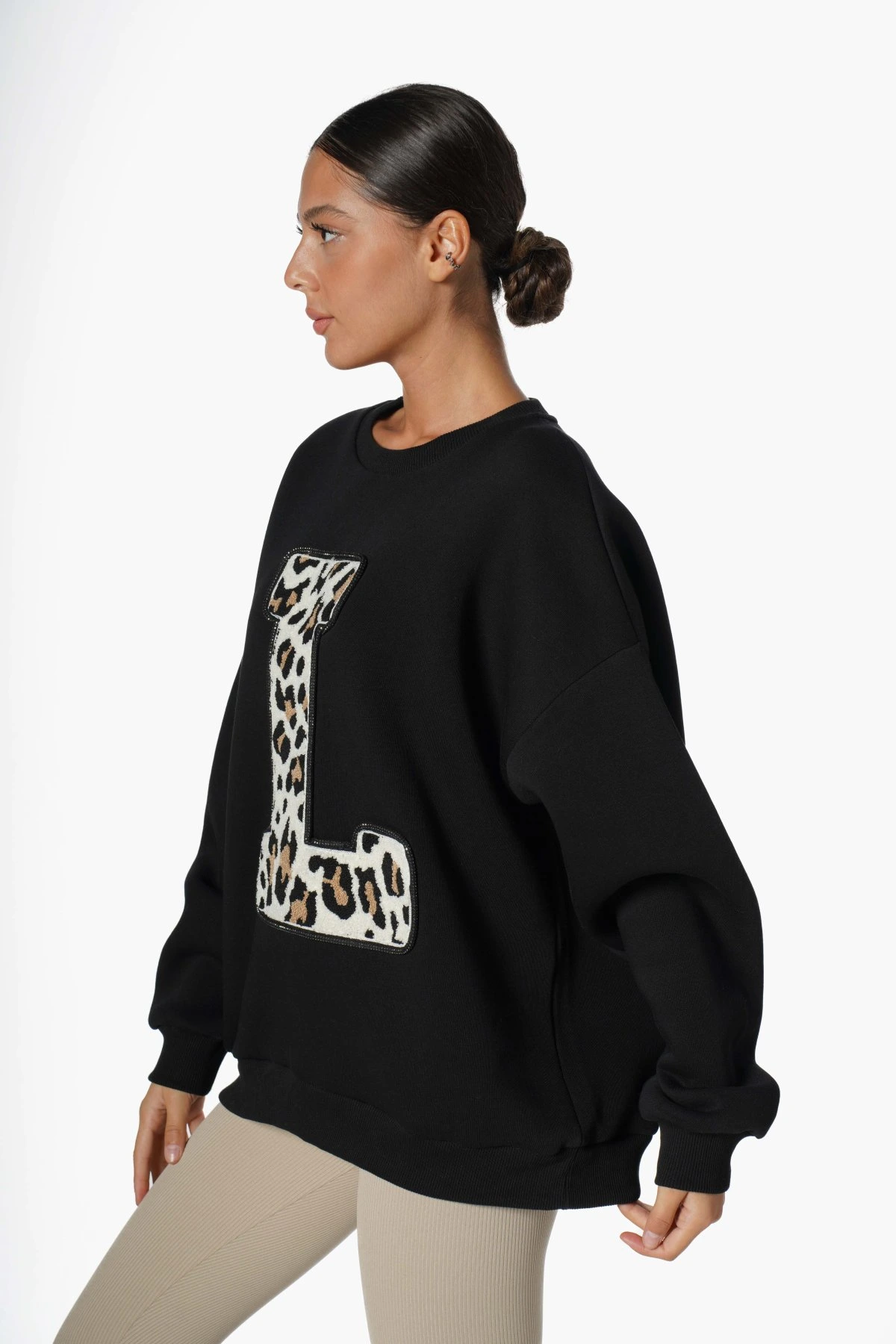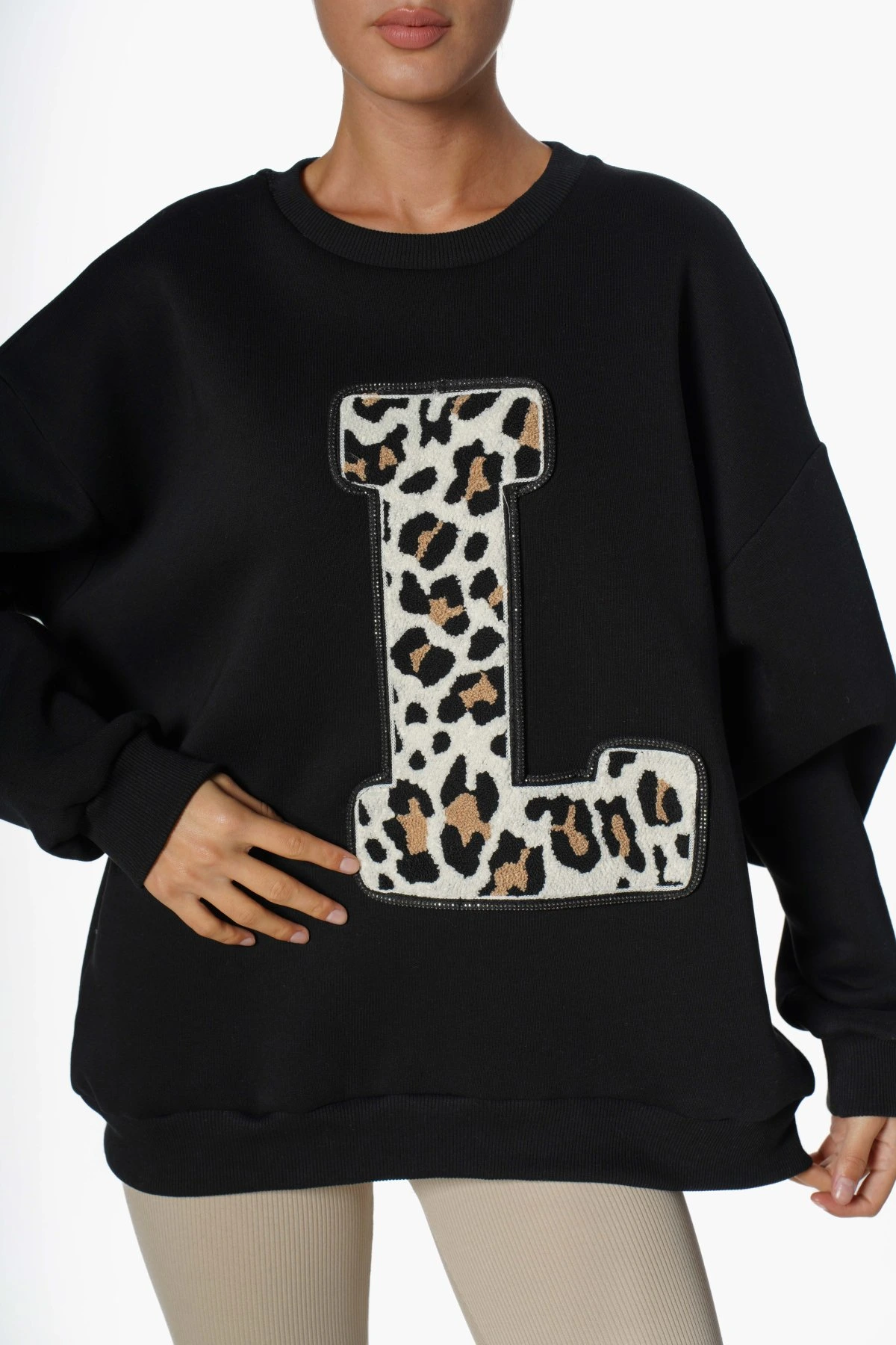 L LEOPAR HARFLİ BİSİKLET YAKA SALAŞ SWEAT – SİYAH