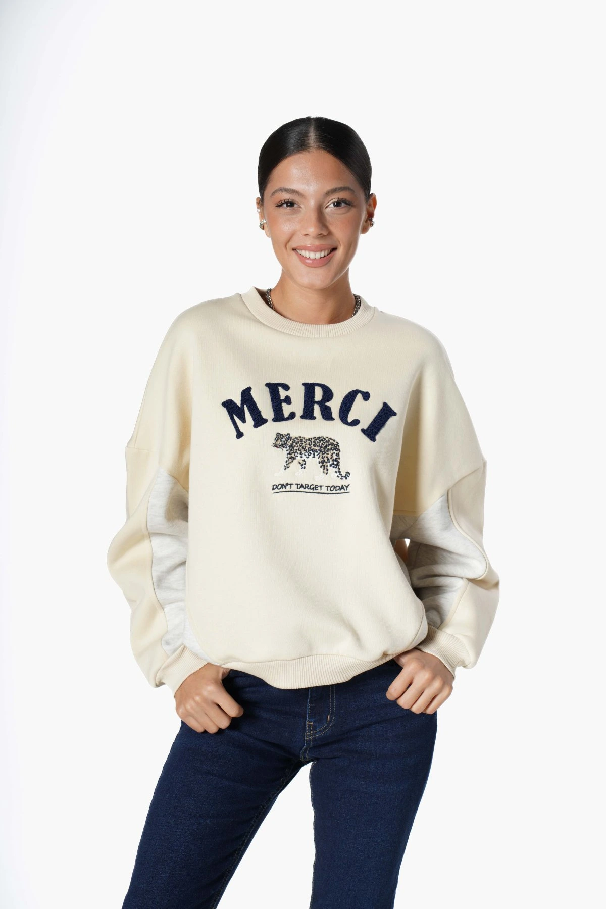 MERCİ YAZI LEOPAR NAKIŞ 2 RENKLİ SWEAT – BEJ