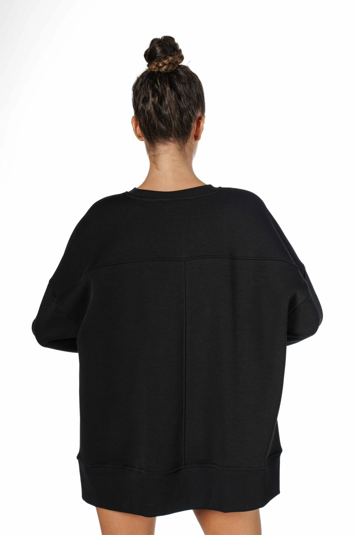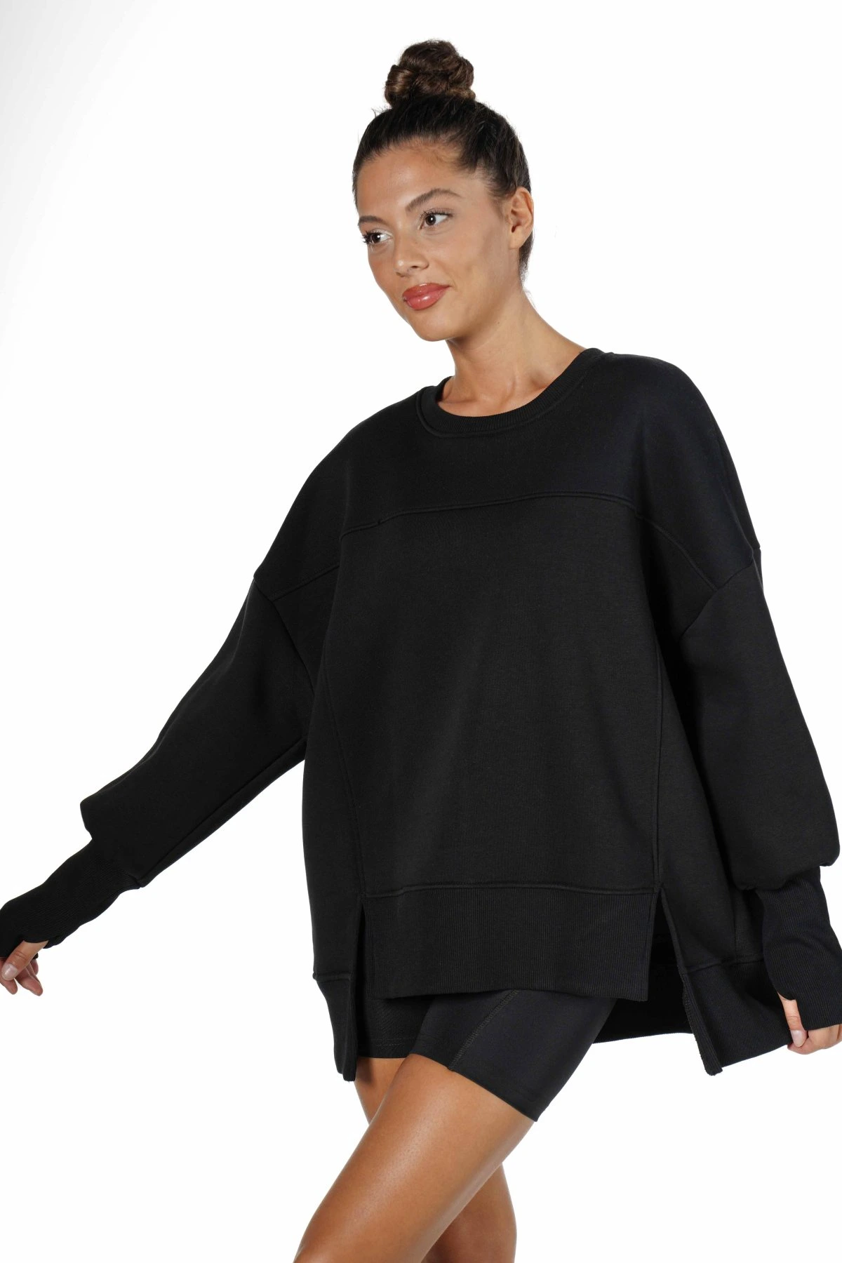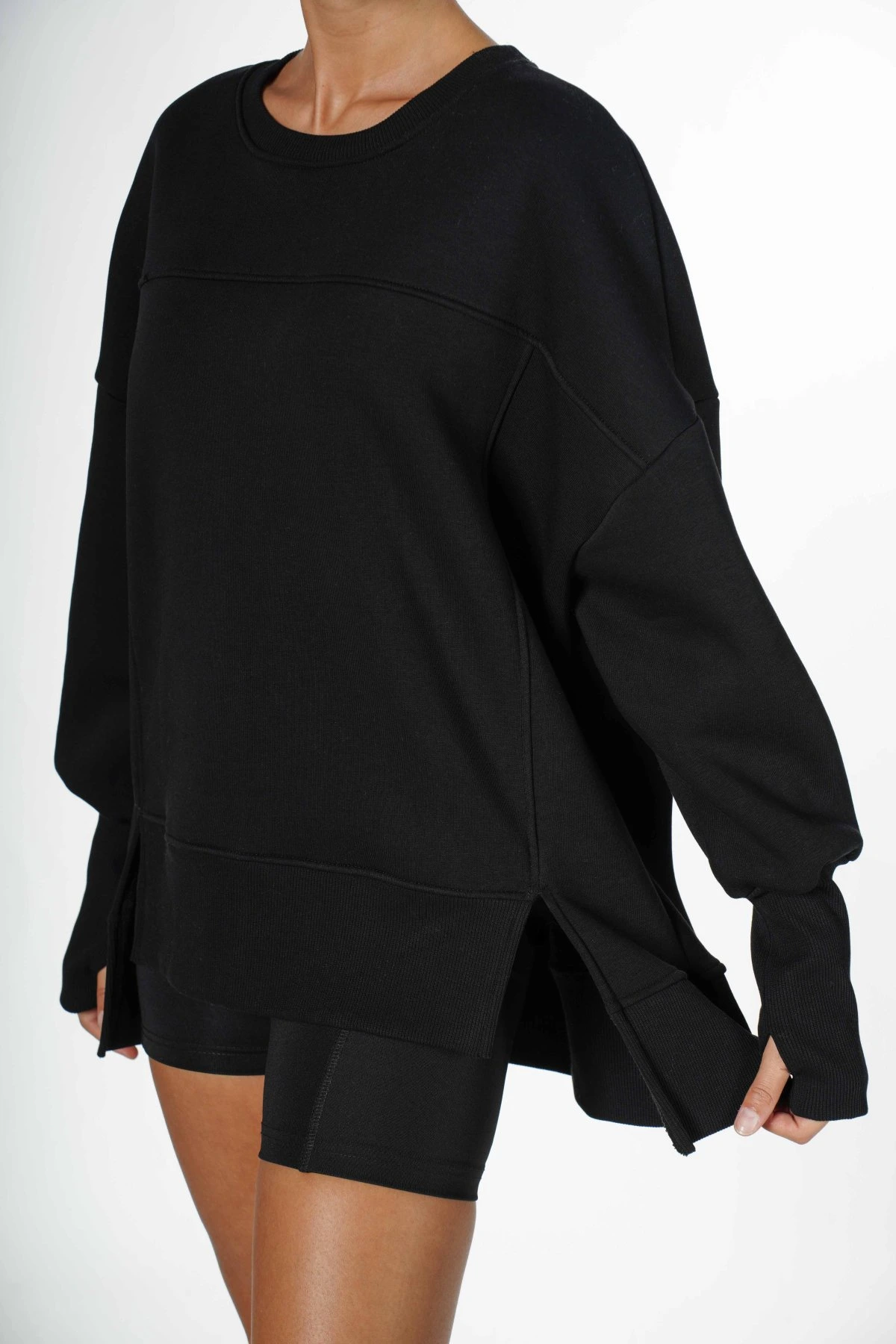 ÖN ASİMETRİ YIRTMAÇ OVERSİZE SWEAT – SİYAH