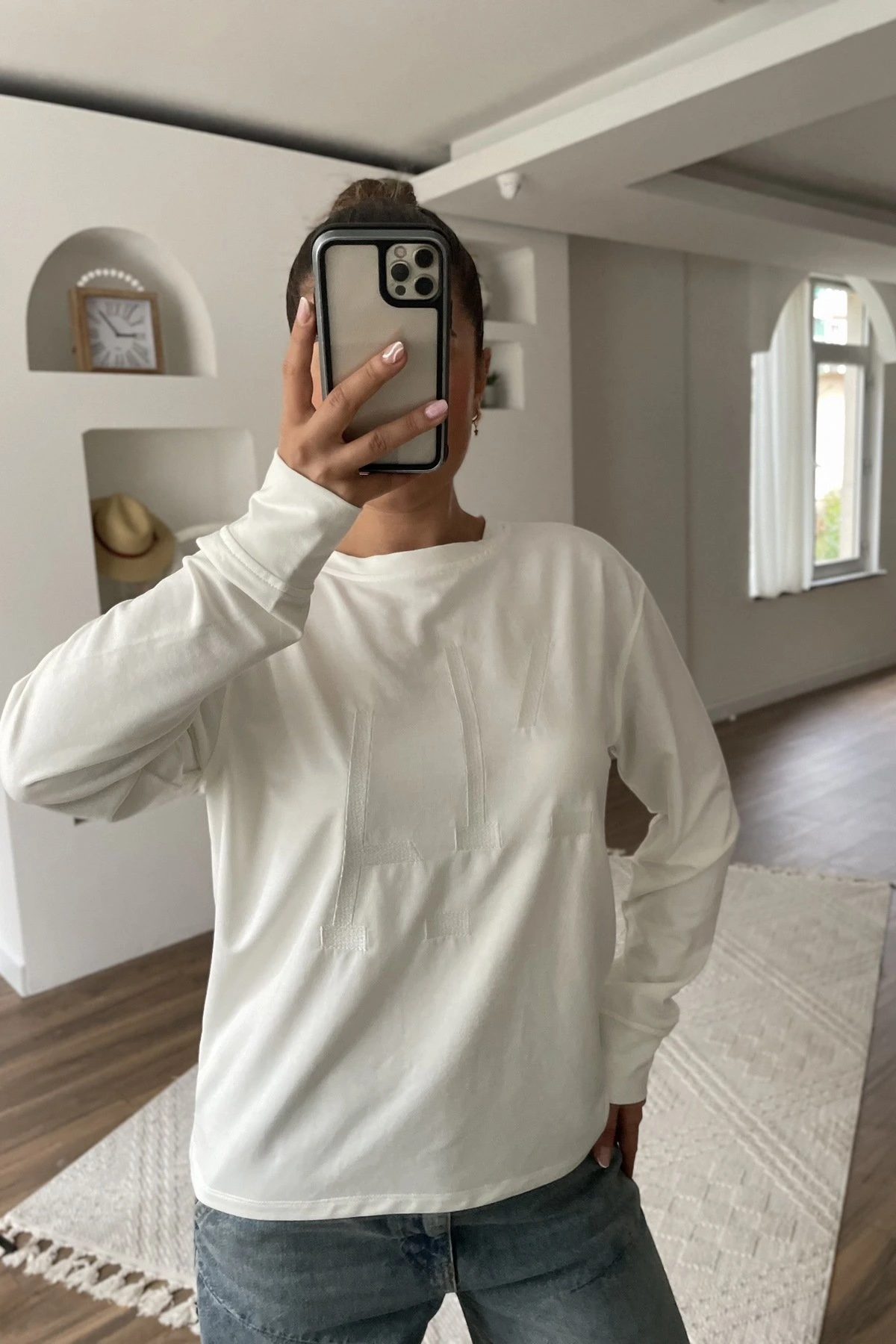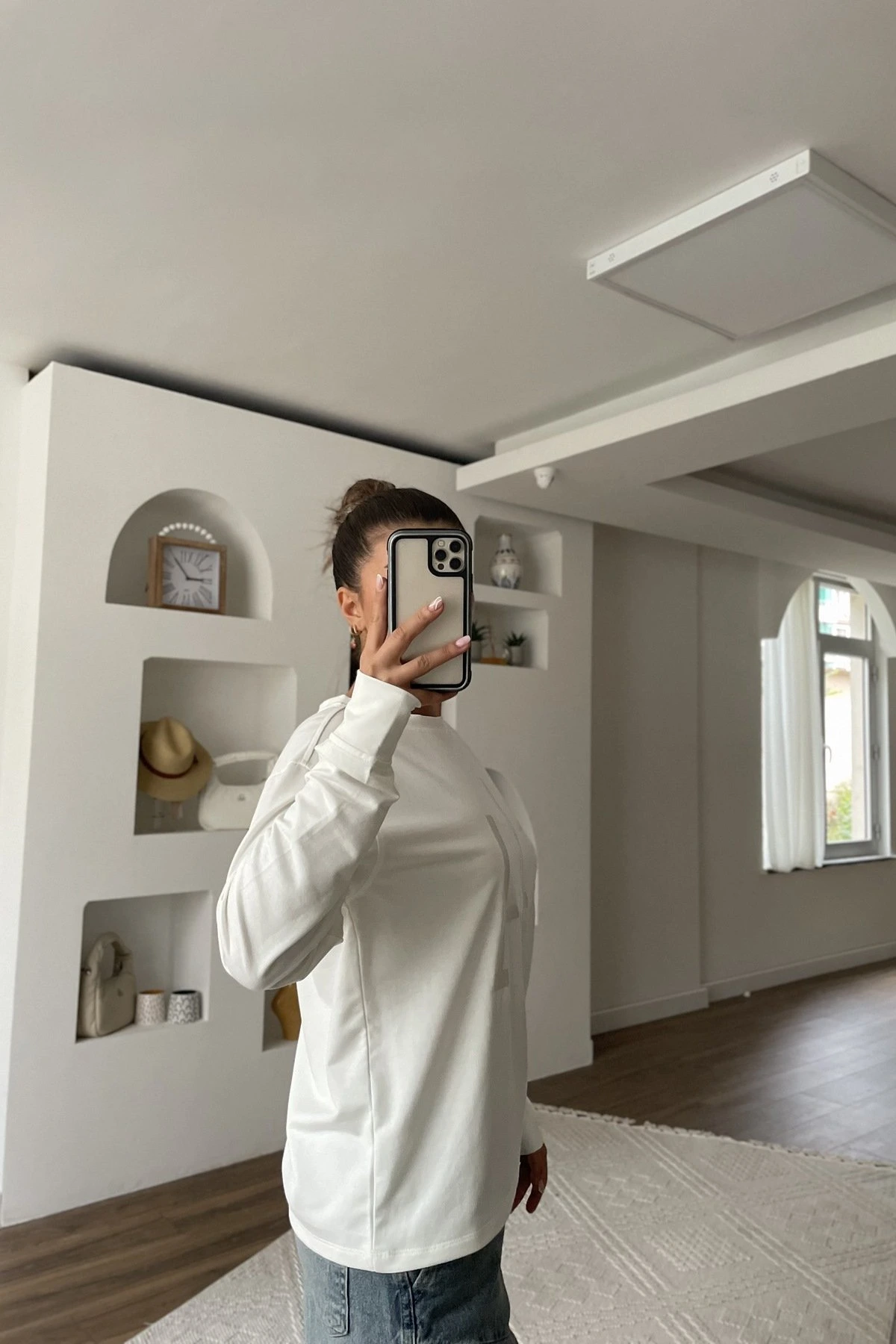 ÖN NAKIŞ BİSİKLET YAKA UZUN KOL PAMUK SWEAT – EKRU