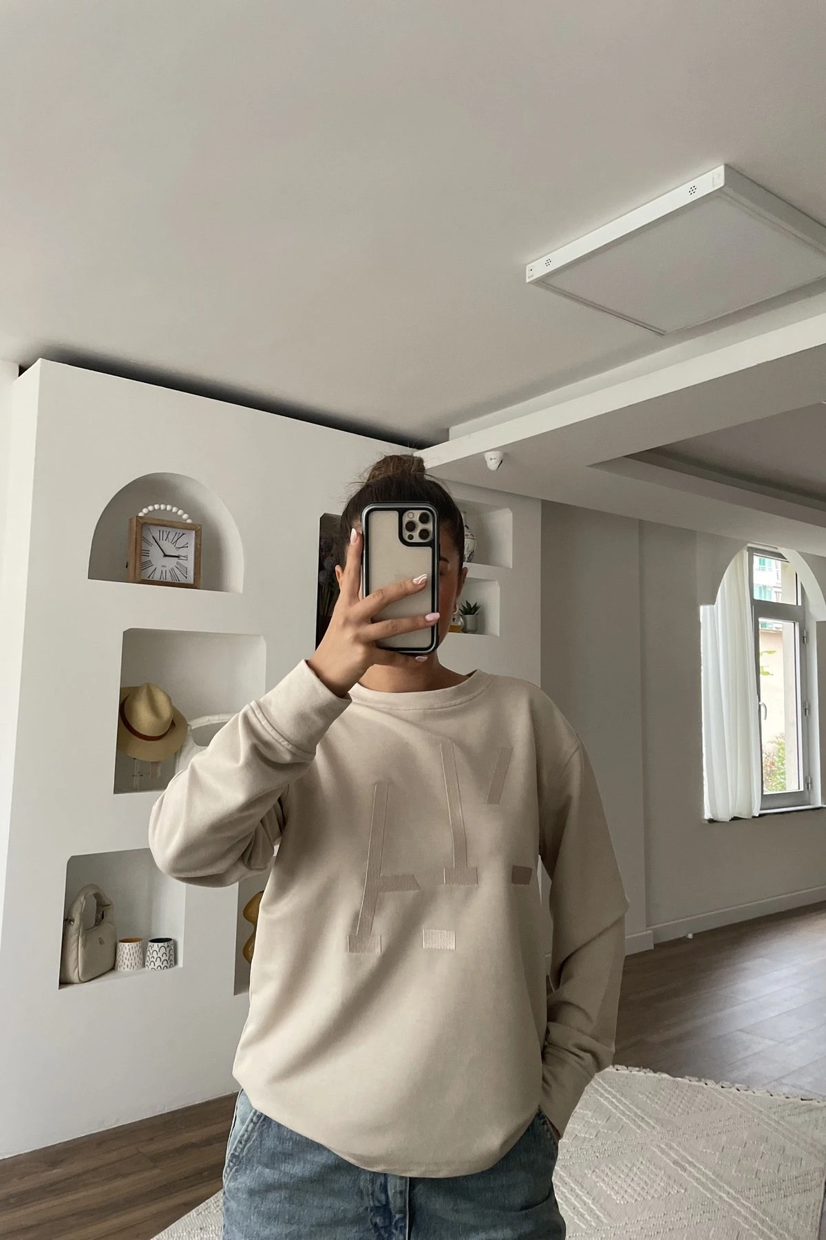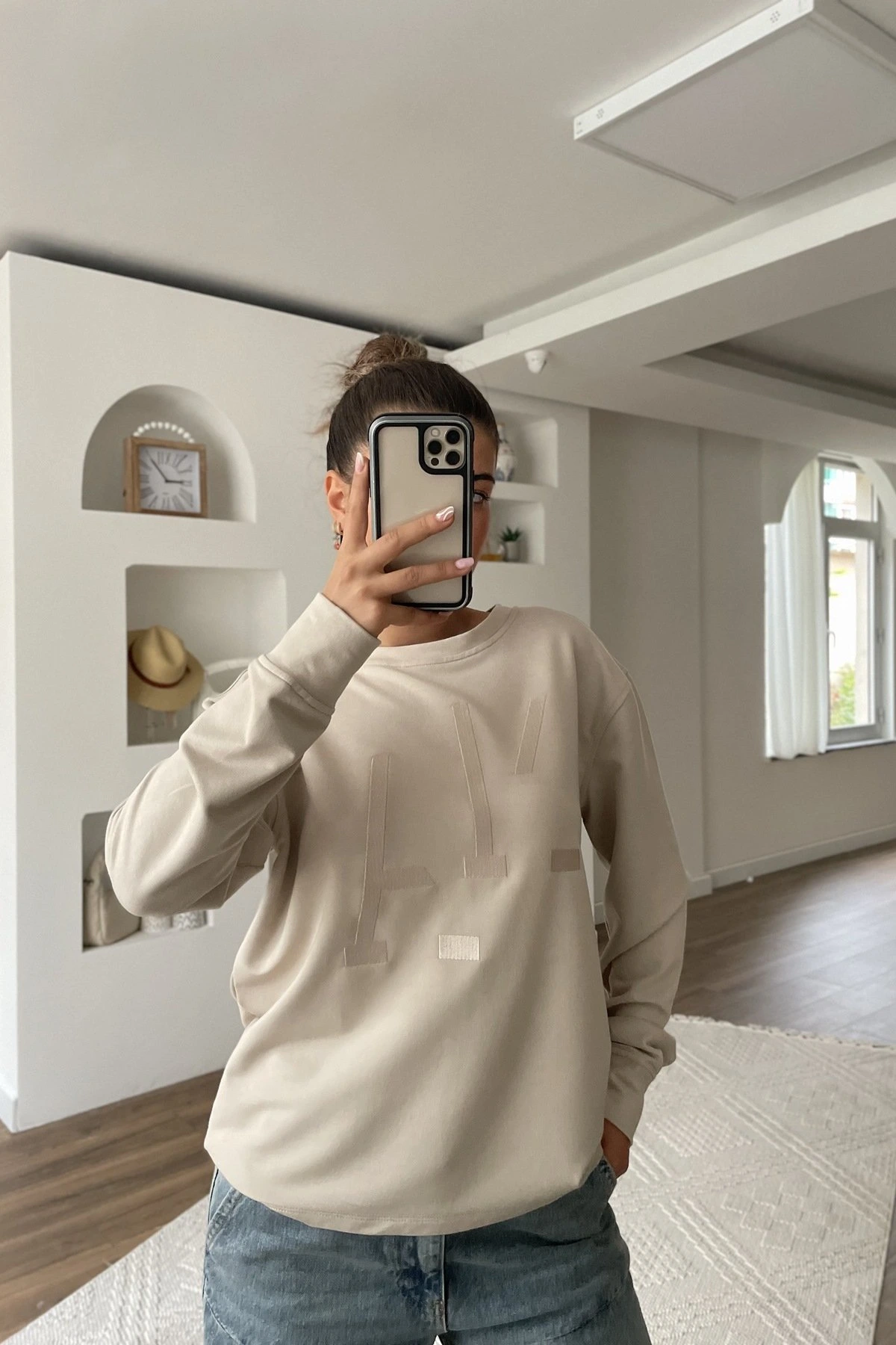 ÖN NAKIŞ BİSİKLET YAKA UZUN KOL PAMUK SWEAT – TAŞ