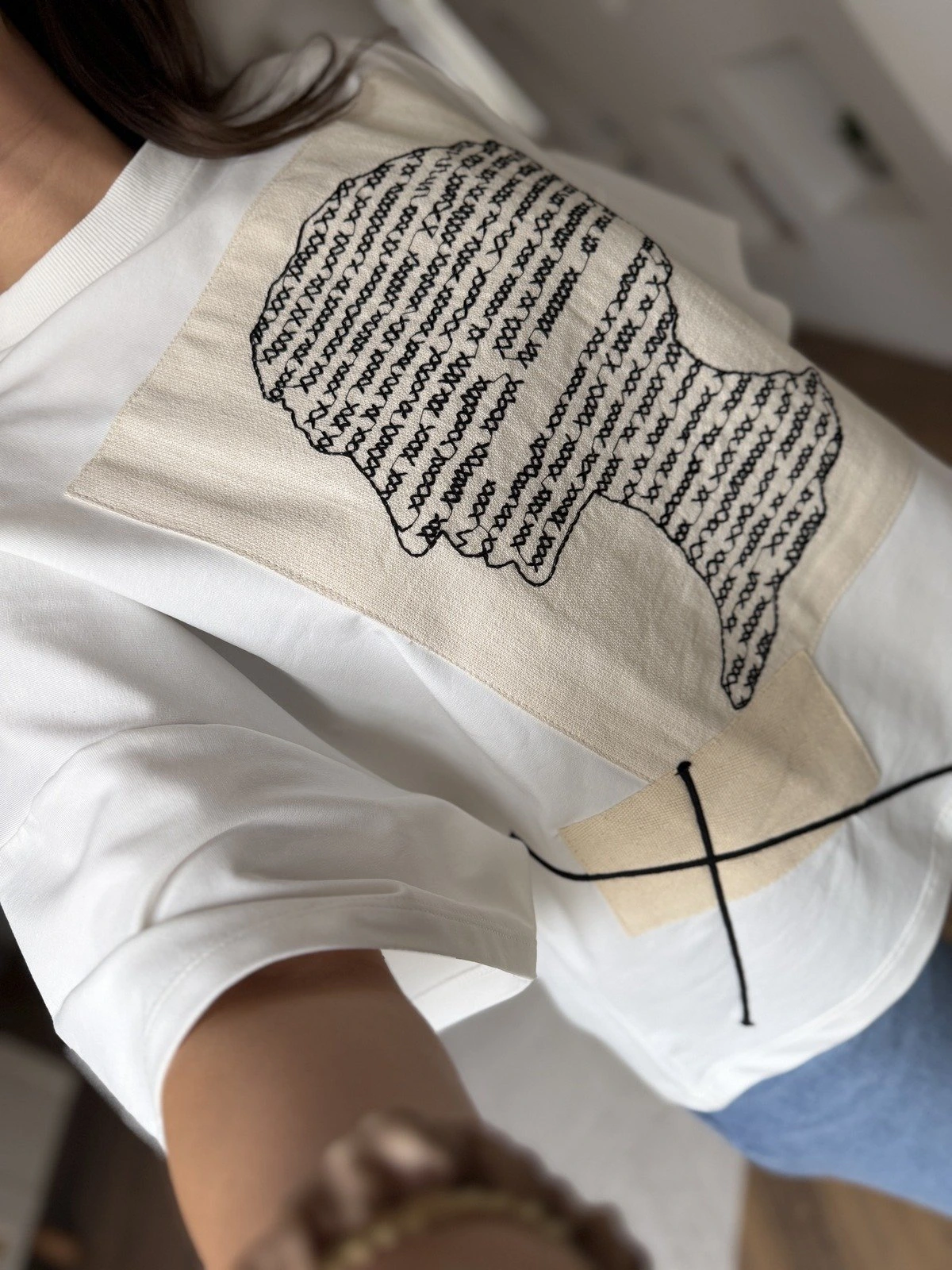 ÖN YÜZ NAKIŞ PARÇA KUMAŞ KISA KOL SALAŞ PAMUK SWEAT – EKRU