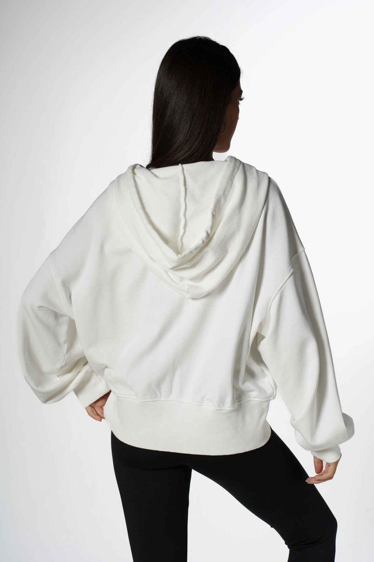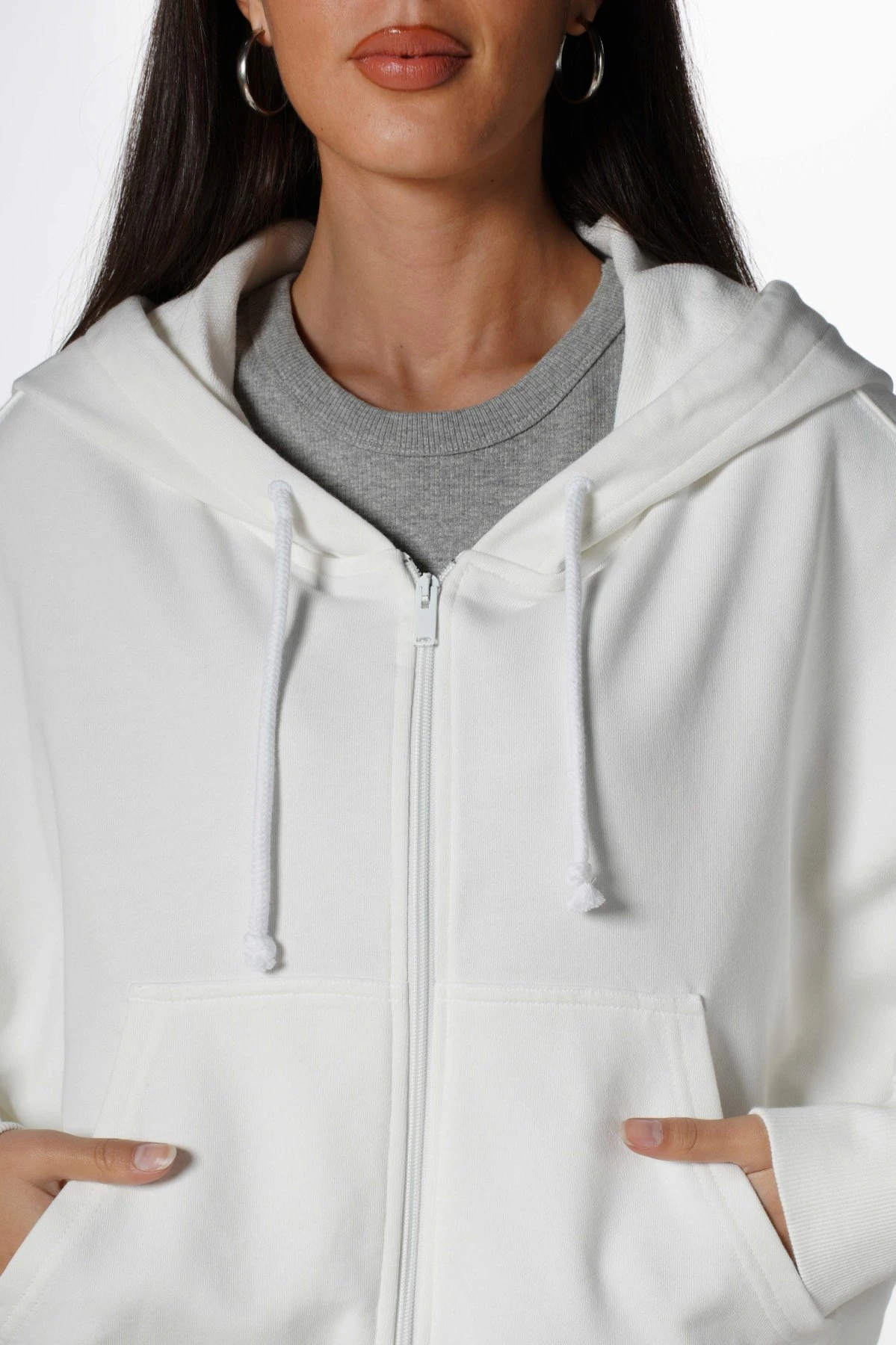 OVERSİZE FERMUARLI KAPÜŞONLU PAMUK SWEAT – EKRU