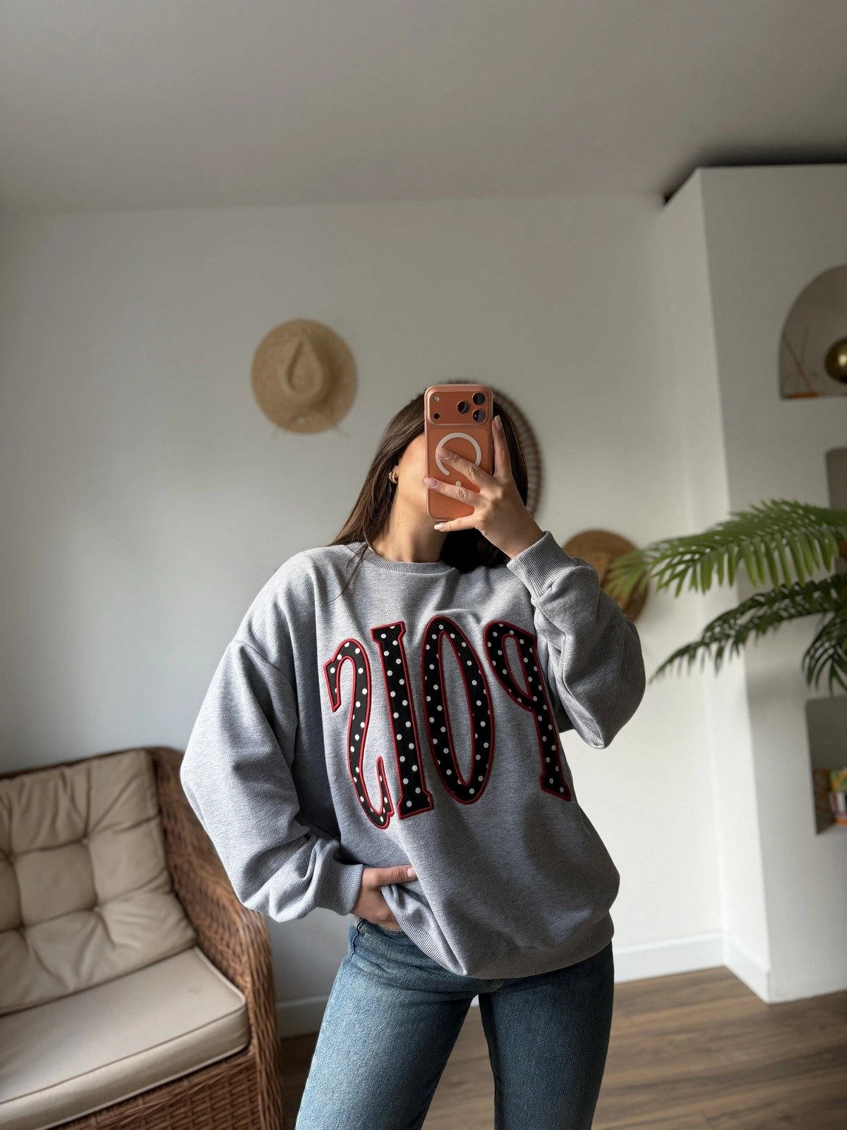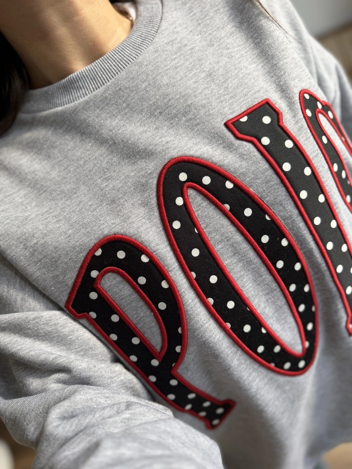 POIS PUANTİYE YAZI SALAŞ PAMUK SWEAT – GRİ MELANJ