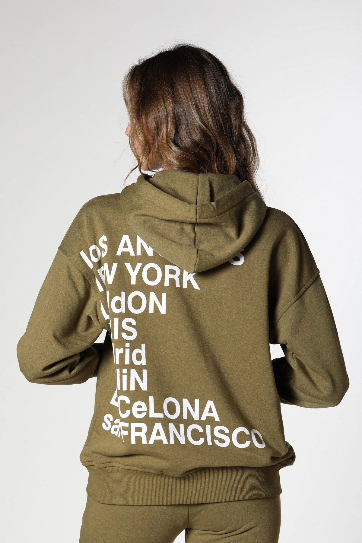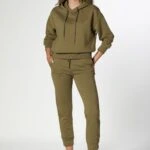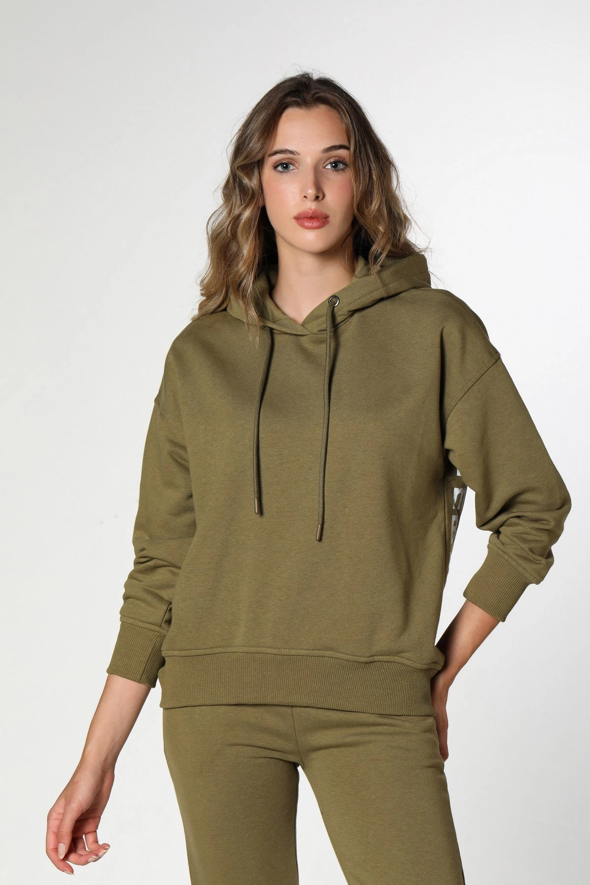 SIRT YAZI KAPÜŞONLU SWEAT – OLİVE