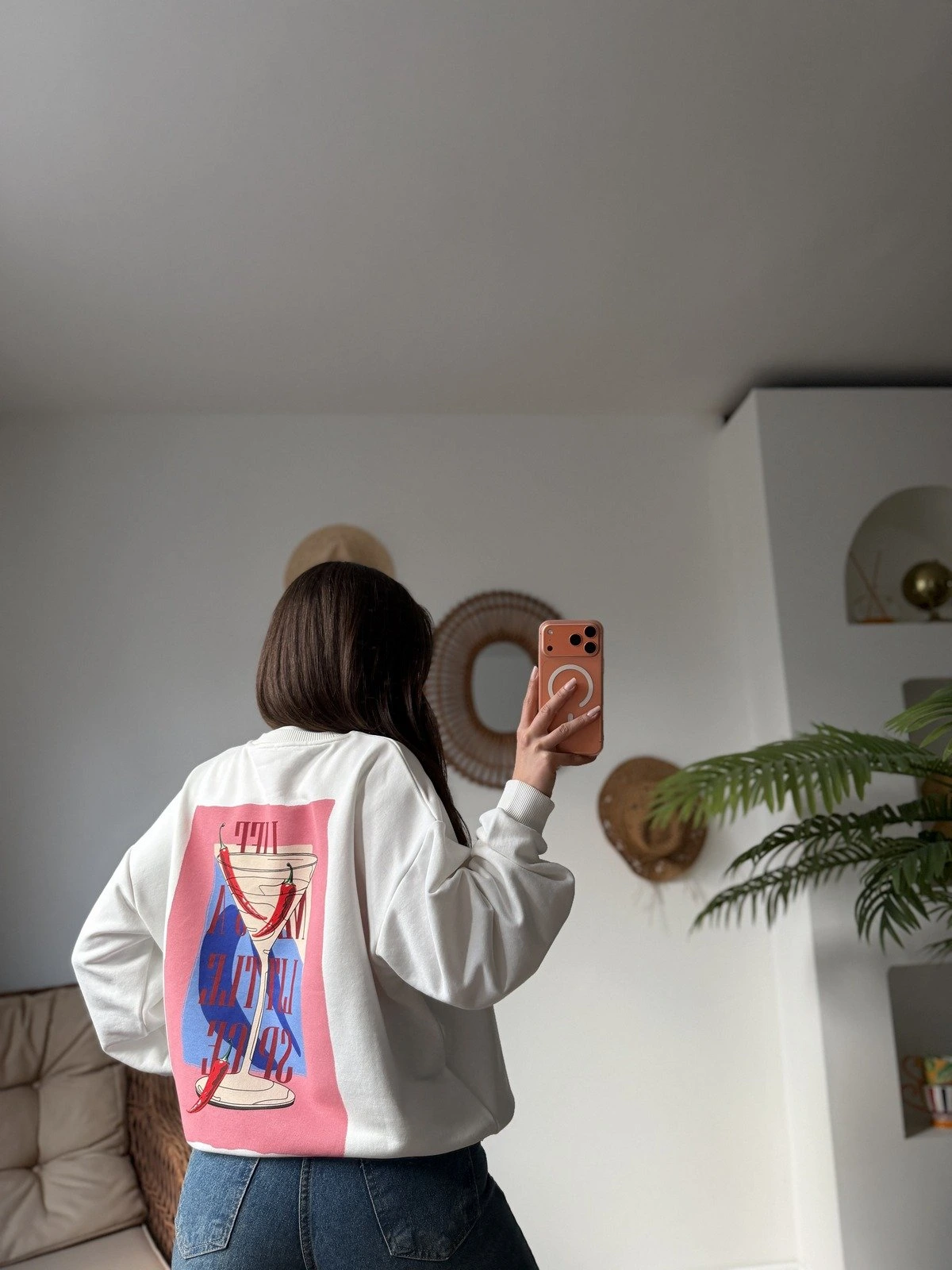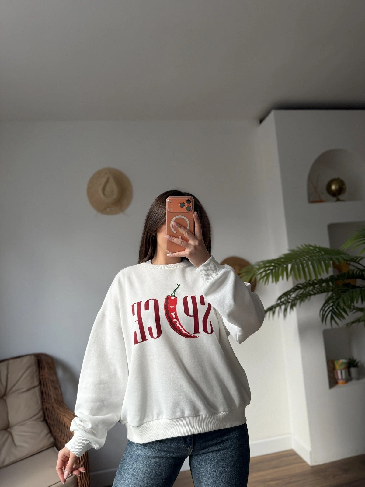 SPİCE YAZI BASKI ARKA DETAY PAMUK SALAŞ SWEAT – EKRU
