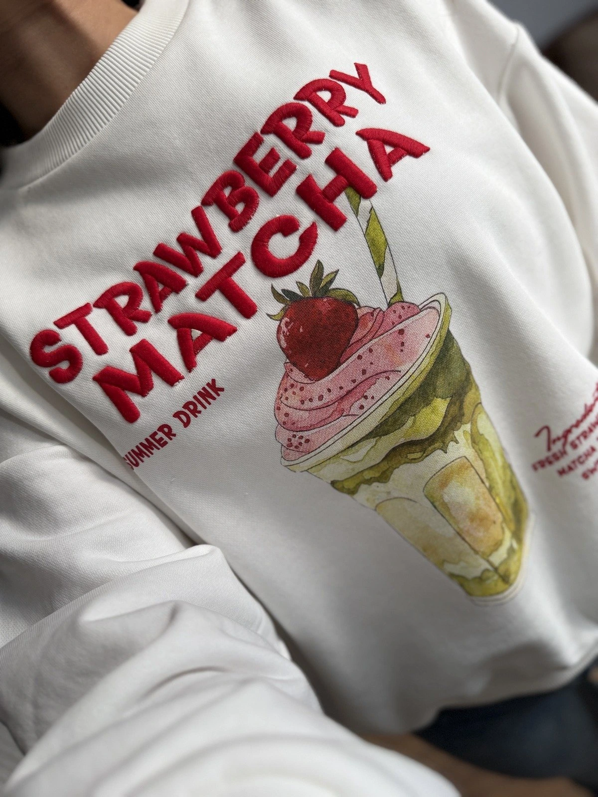 STRAWBERY YAZI NAKIŞ SALAŞ PAMUK SWEAT – EKRU
