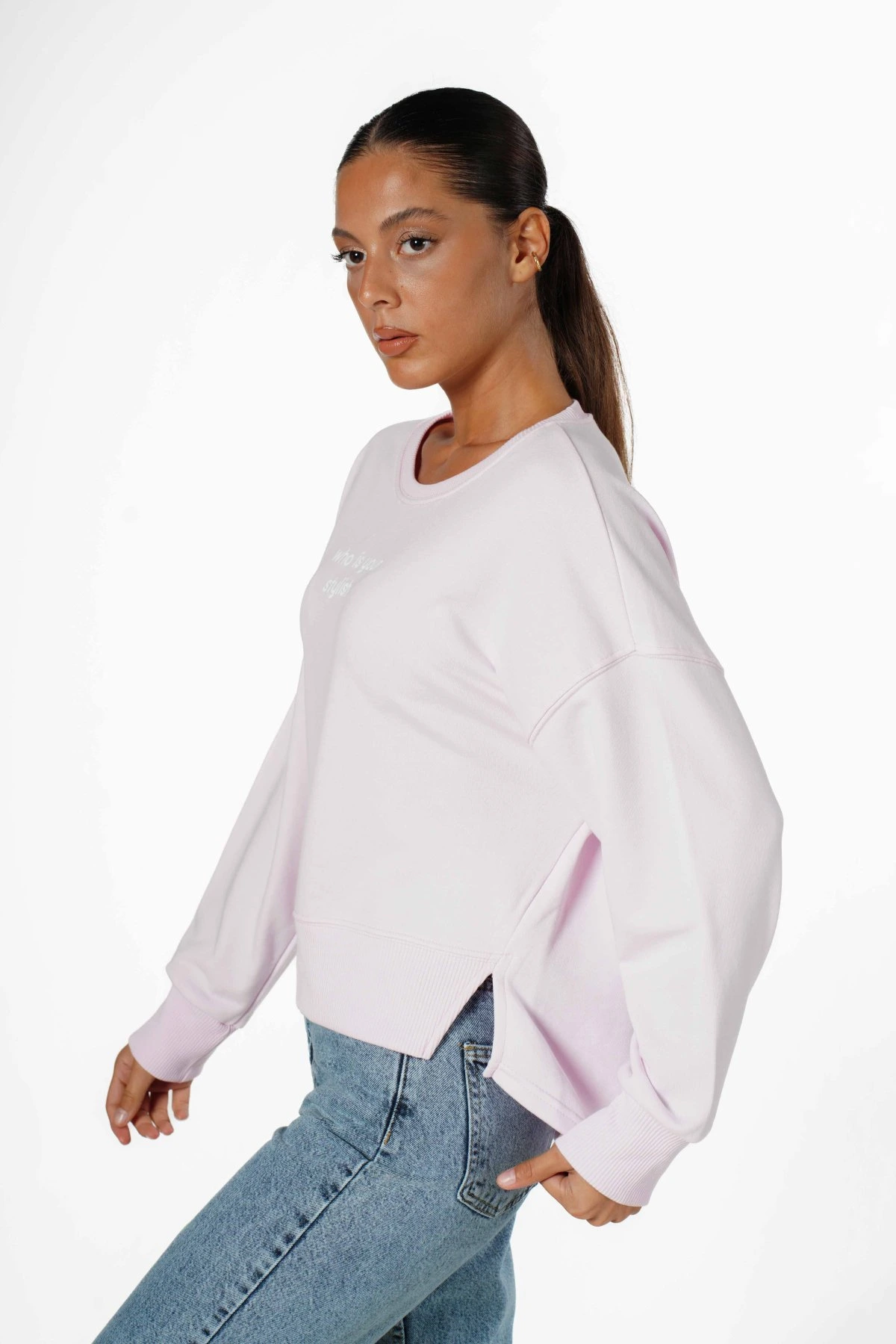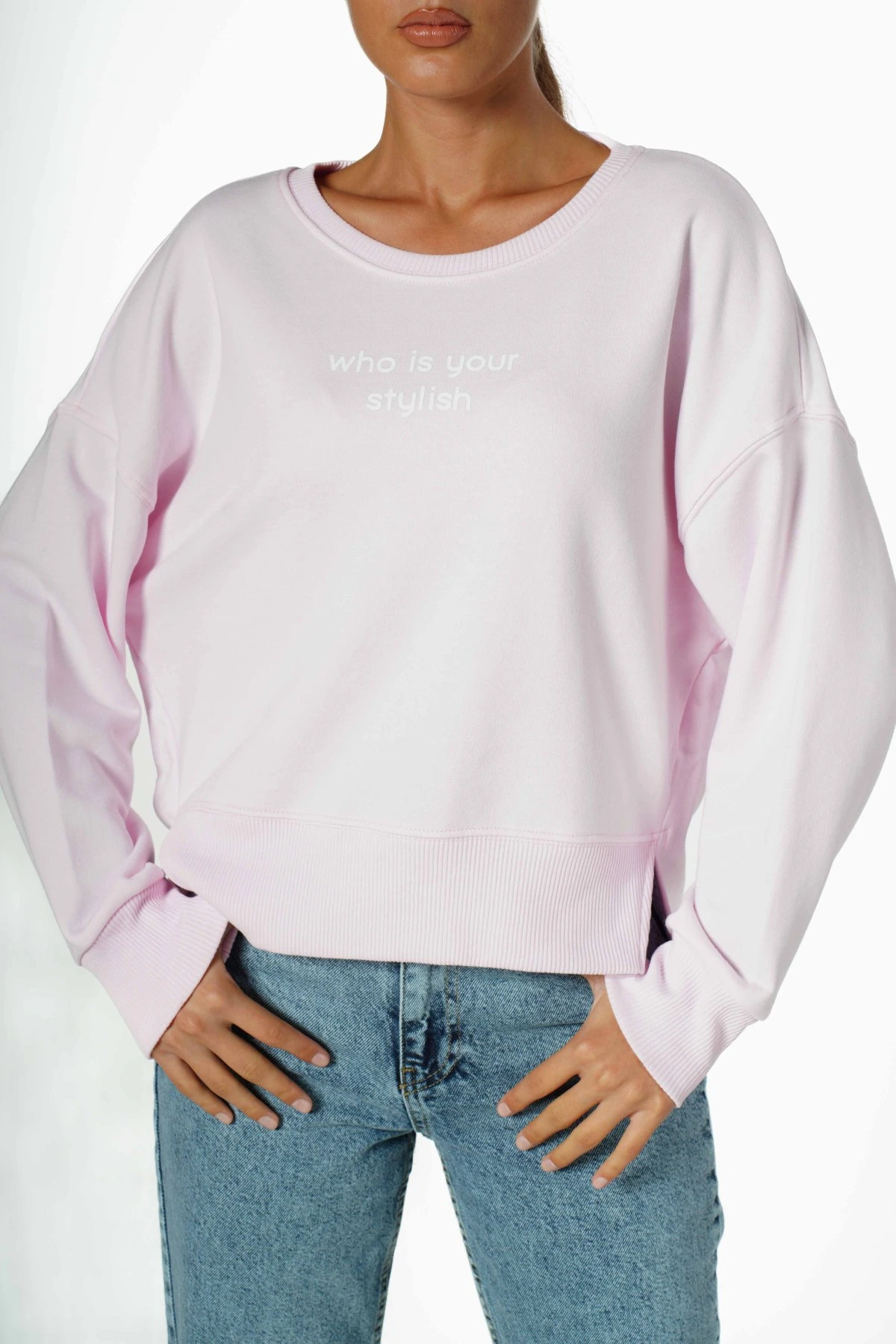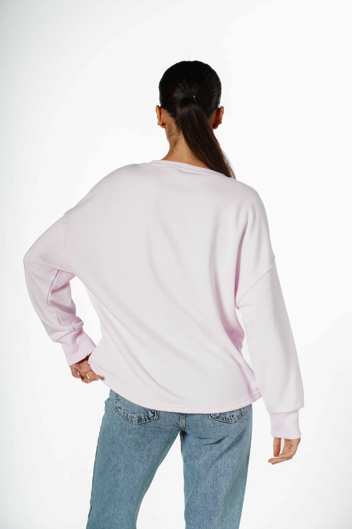 STYLİSH BASKI ARKA OVAL PAMUK SWEAT – AÇIK PEMBE