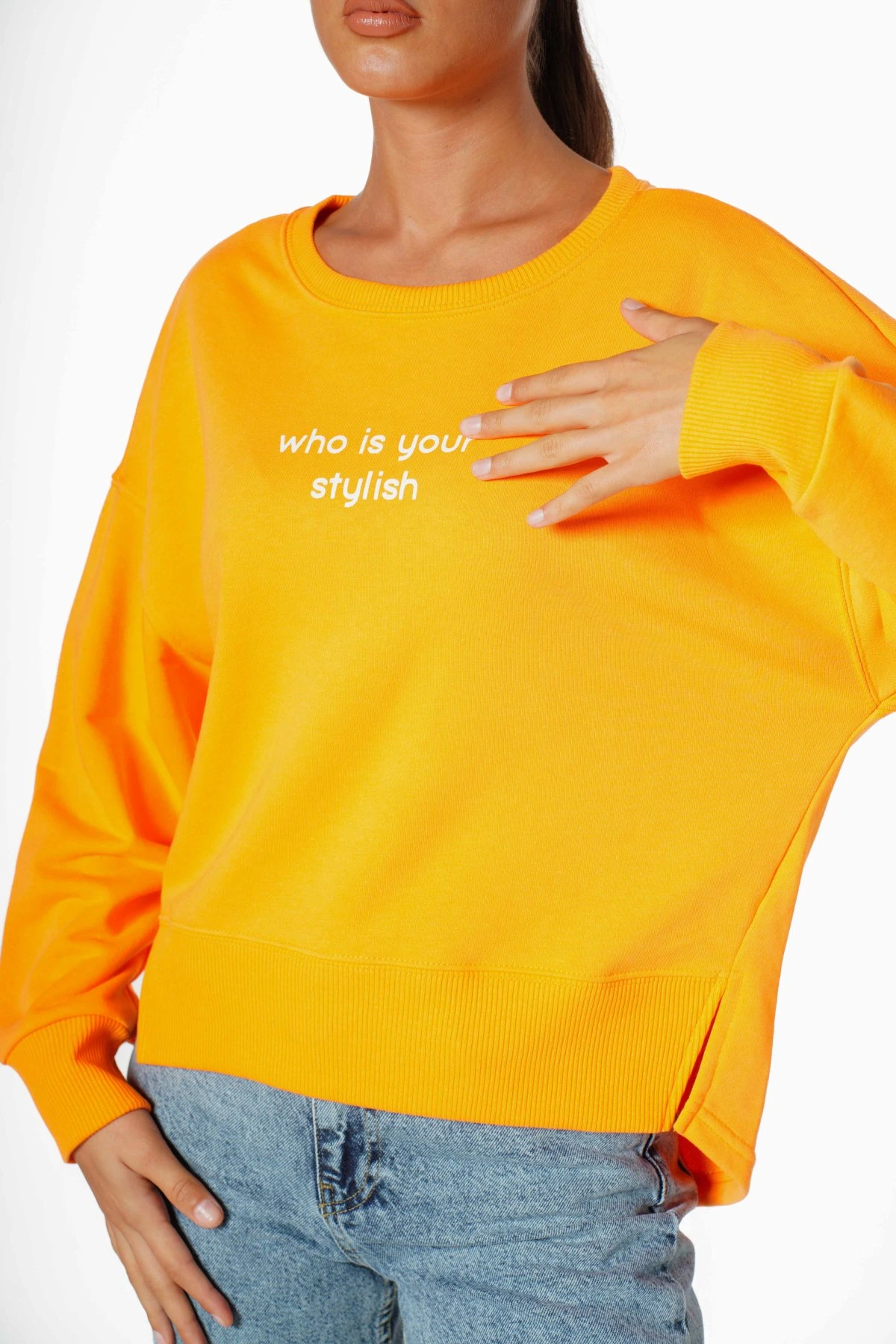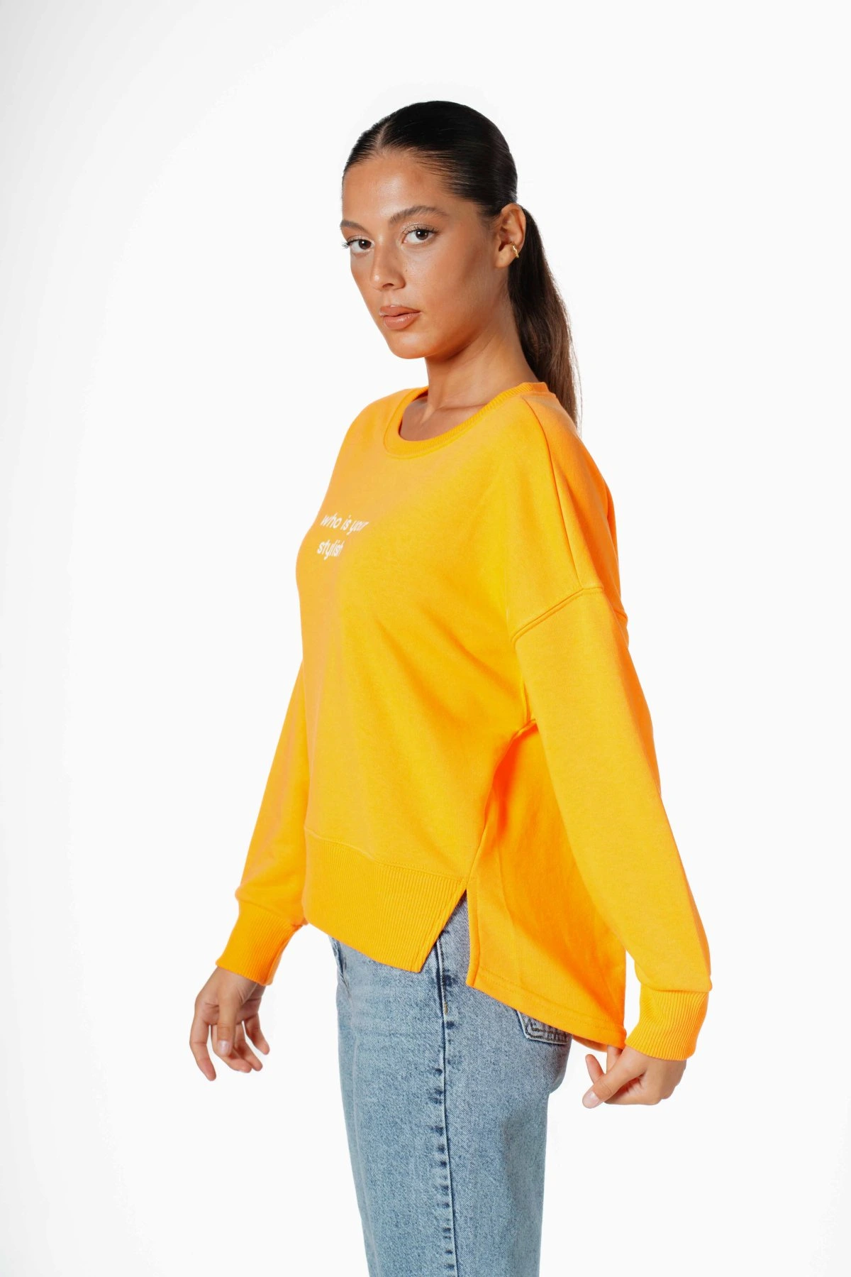 STYLİSH BASKI ARKA OVAL PAMUK SWEAT – NEON TURUNCU