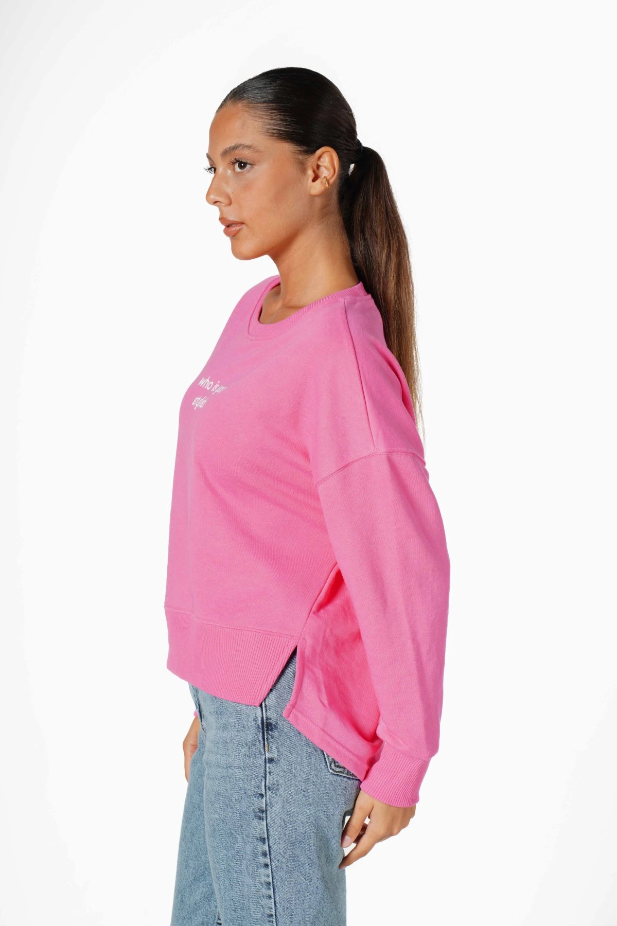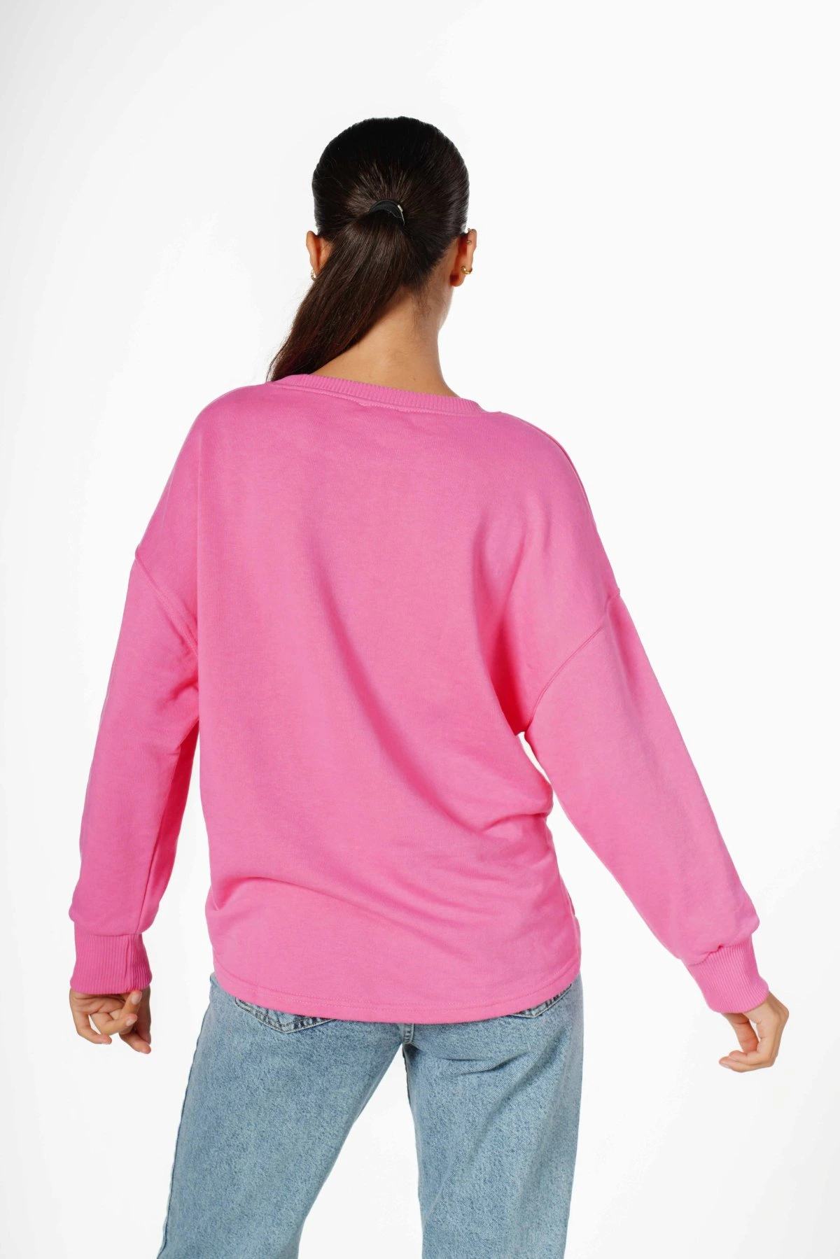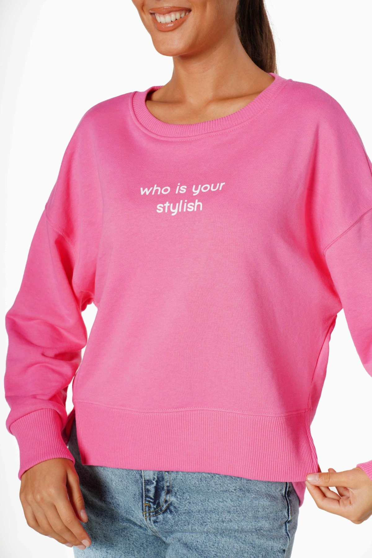 STYLİSH BASKI ARKA OVAL PAMUK SWEAT – PEMBE