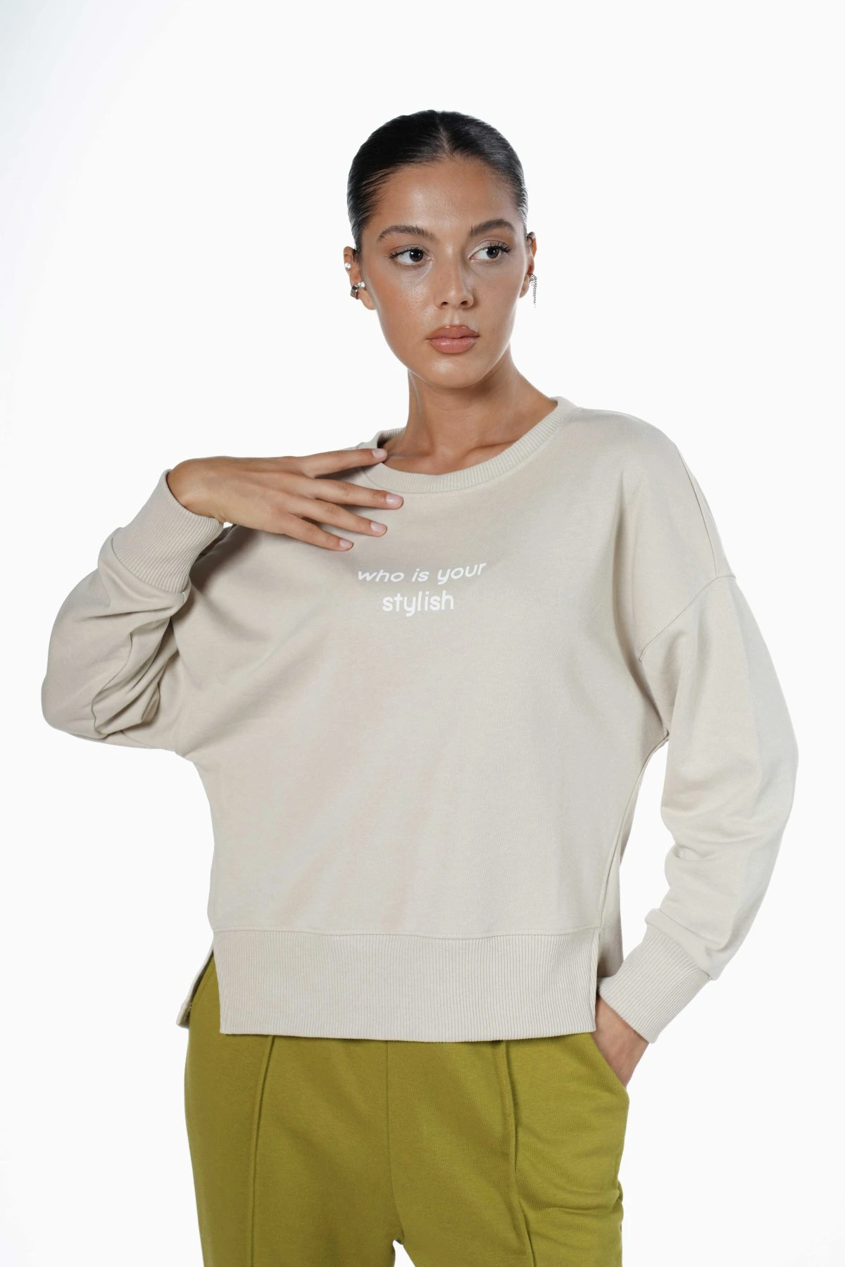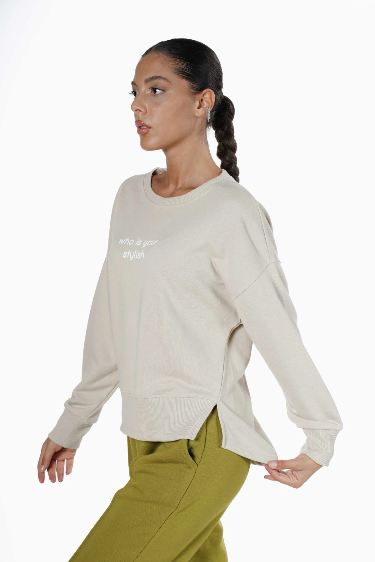 STYLİSH BASKI ARKA OVAL PAMUK SWEAT – TAŞ