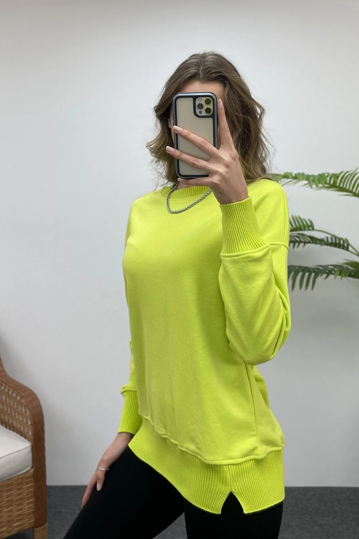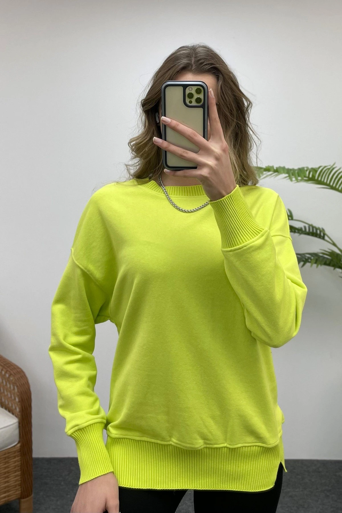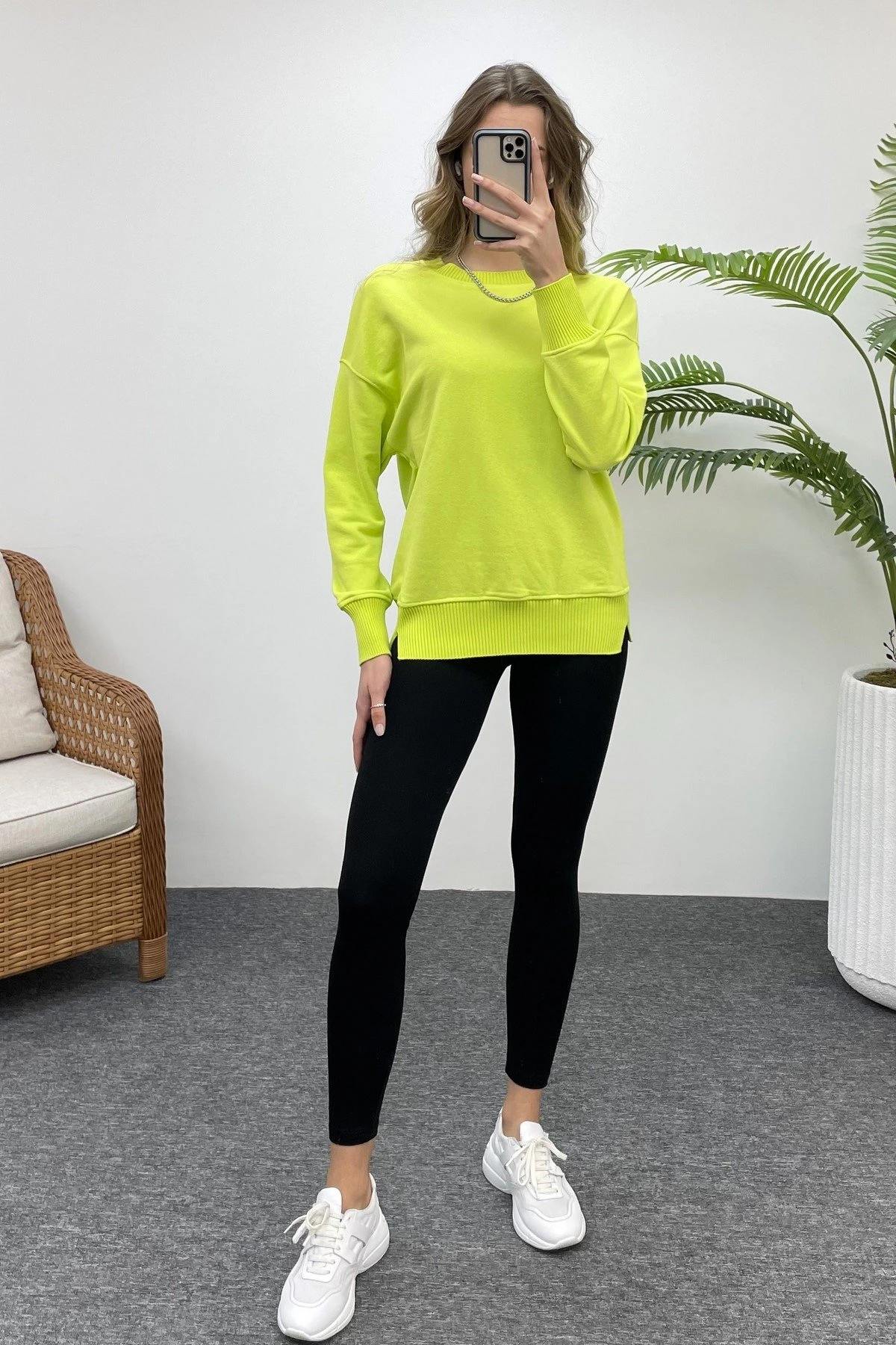 TRİKO MANŞETLİ SWEAT – NEON YEŞİL