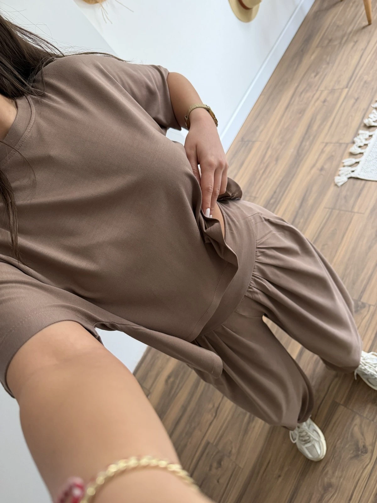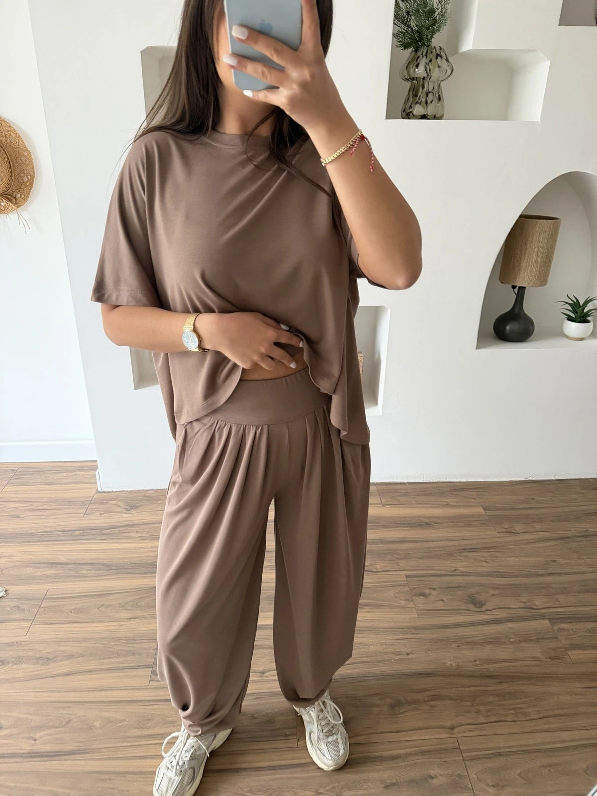ARKA UZUN TİŞÖRT BALON EŞOFMAN PAMUK TAKIM – KAHVE