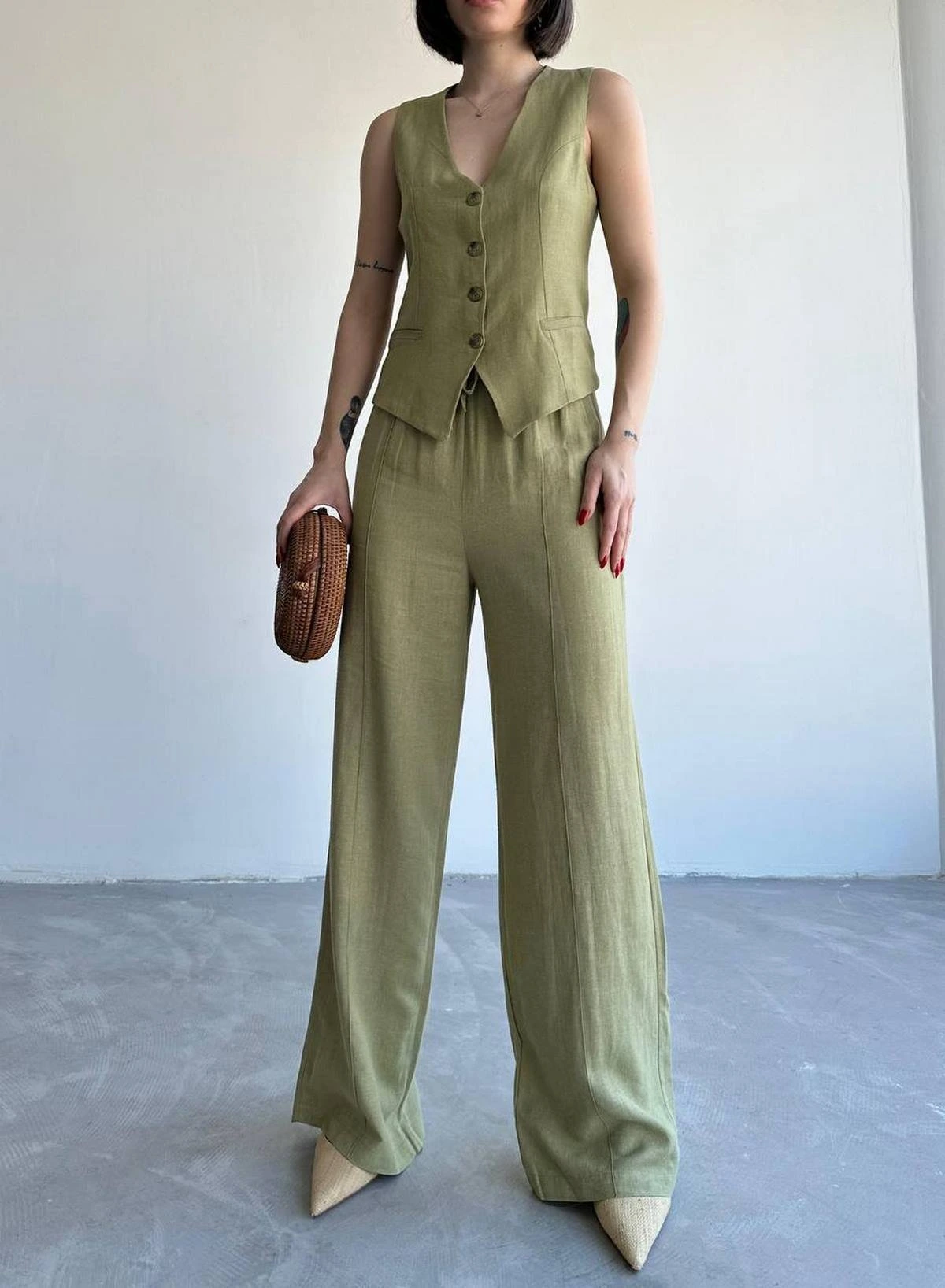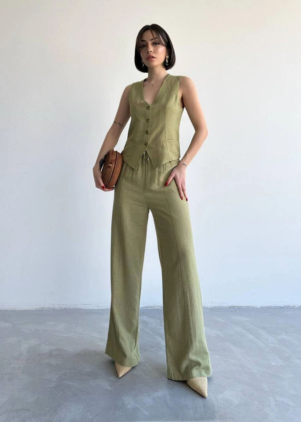 ASTARLI PAMUK YELEK PANTOLON TAKIM – HAKİ