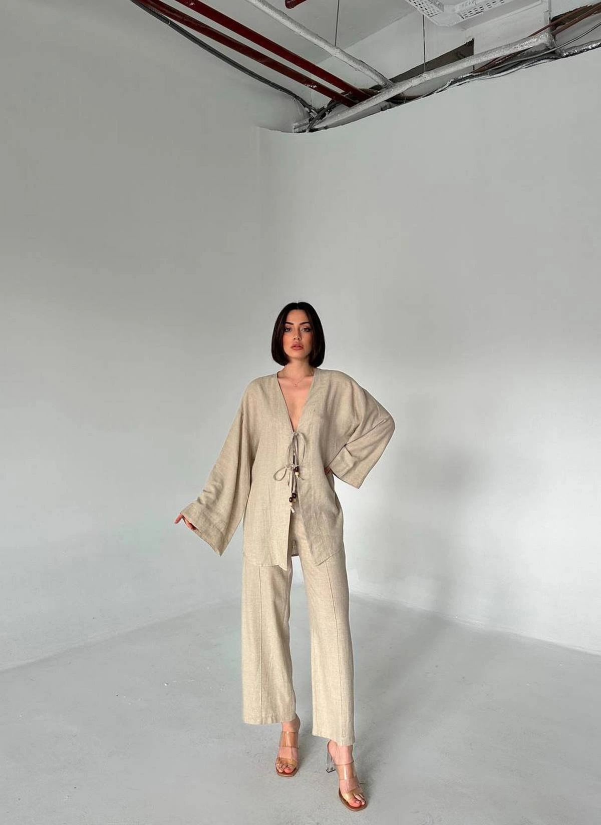 BAĞCIKLI KİMONO ASTARLI PANTOLON PAMUK TAKIM – NATUREL