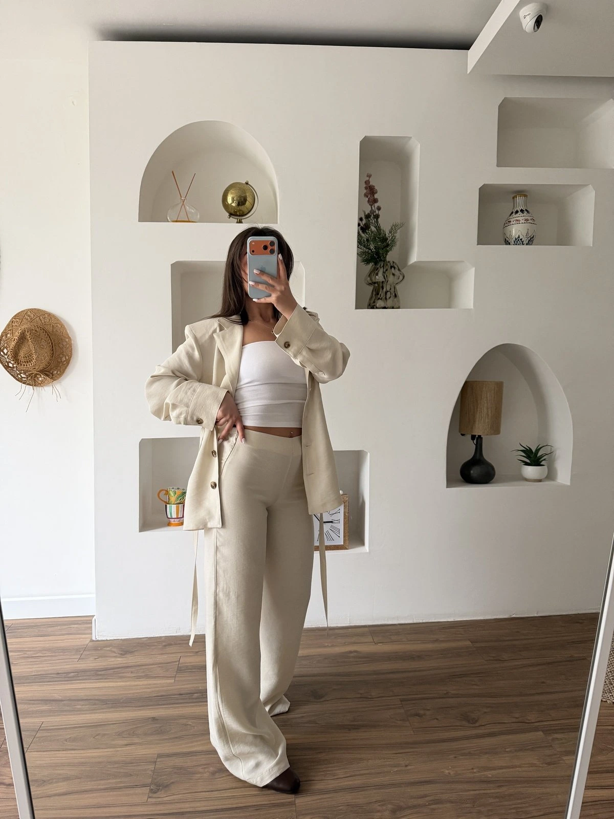BEL KUŞAK ASTARSIZ İNCE CEKET ARKA BEL LASTİK PANTOLON TENSEL TAKIM – TAŞ
