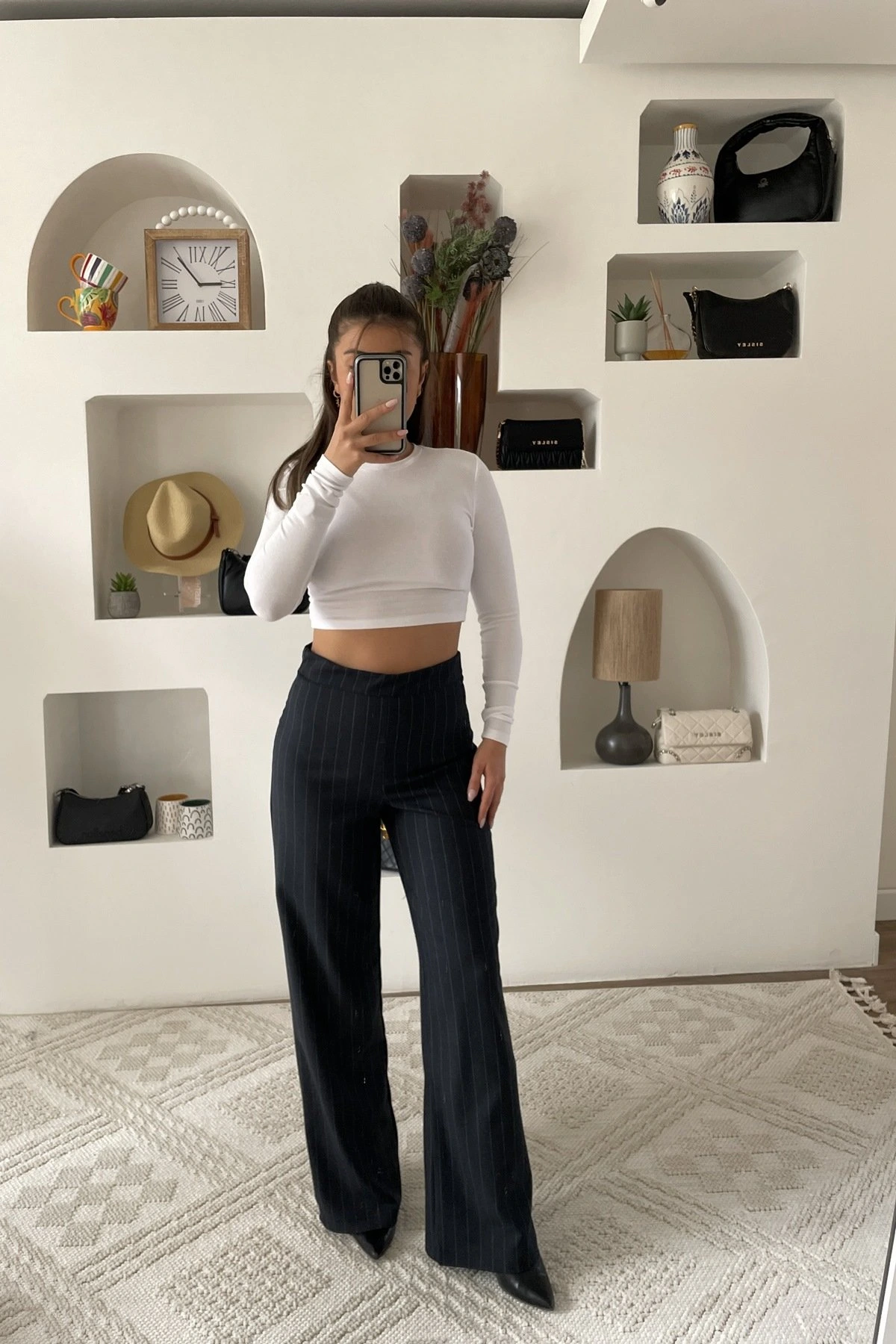 ÇİZGİLİ VİSKON KARIŞIMLI CEKET VE PANTOLON TAKIM – LACİVERT
