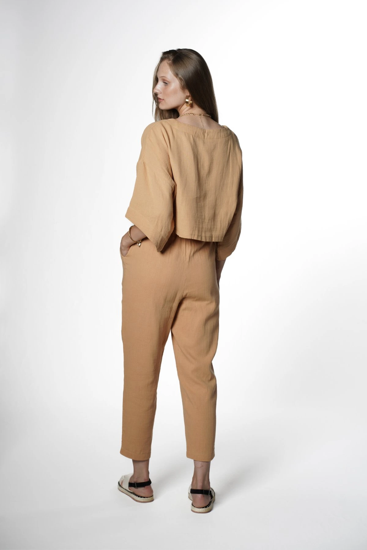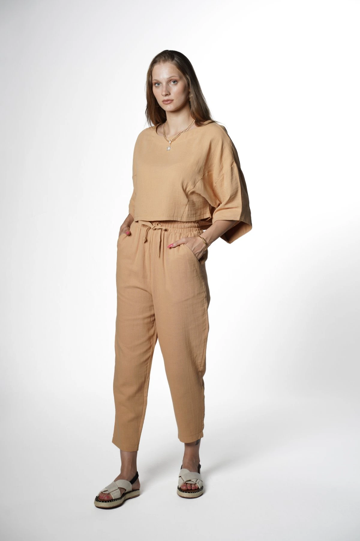 CROP BLUZ+PANTOLON PAMUK TAKIM – CAMEL