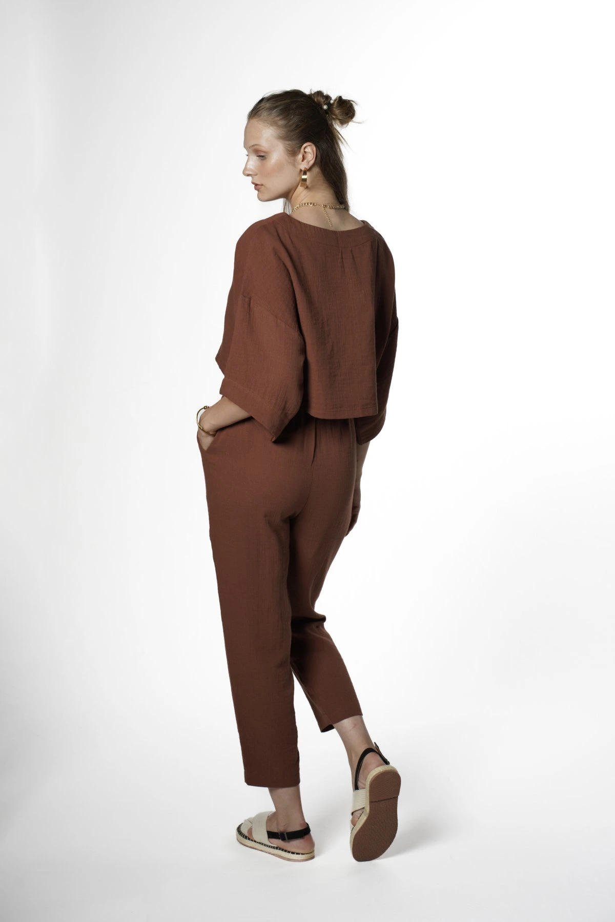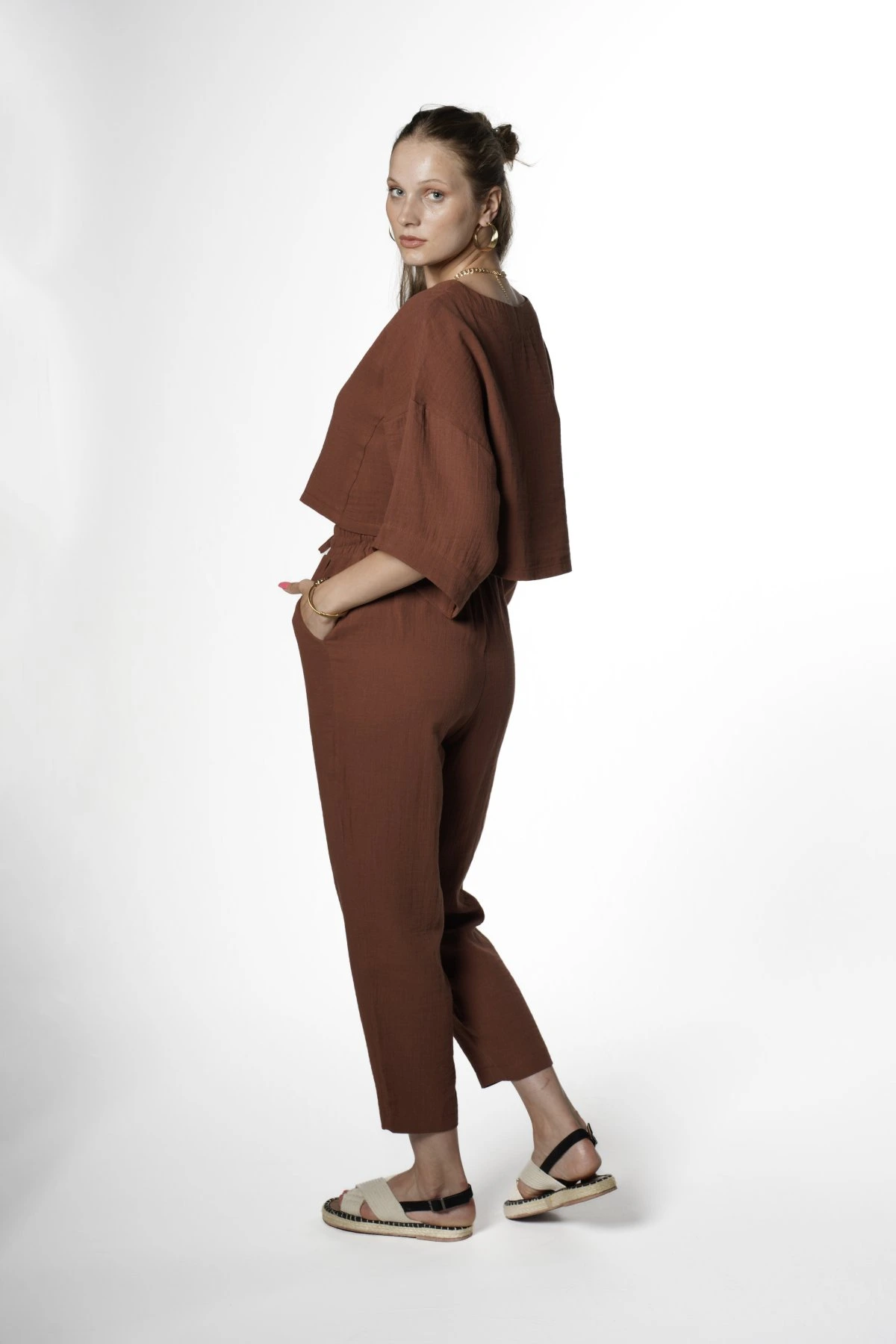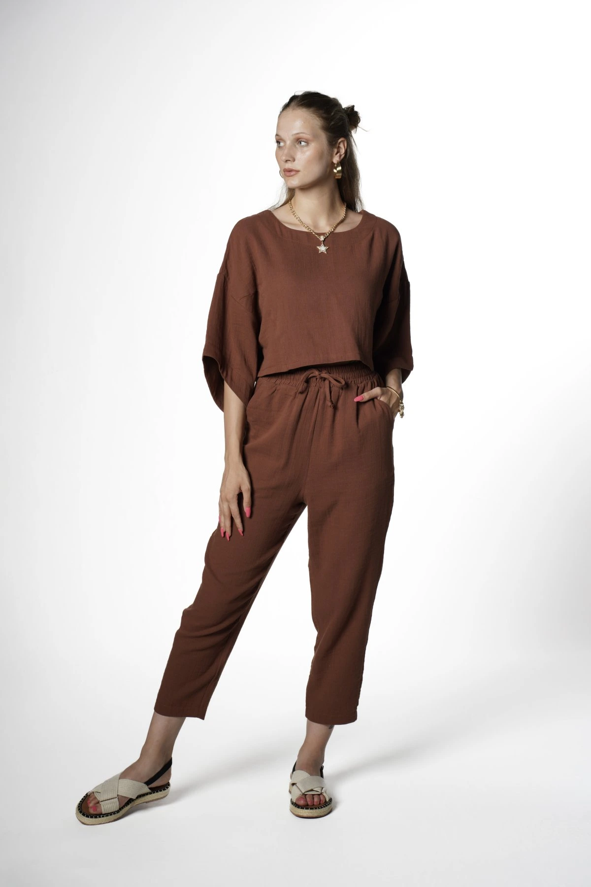 CROP BLUZ+PANTOLON PAMUK TAKIM – KAHVE