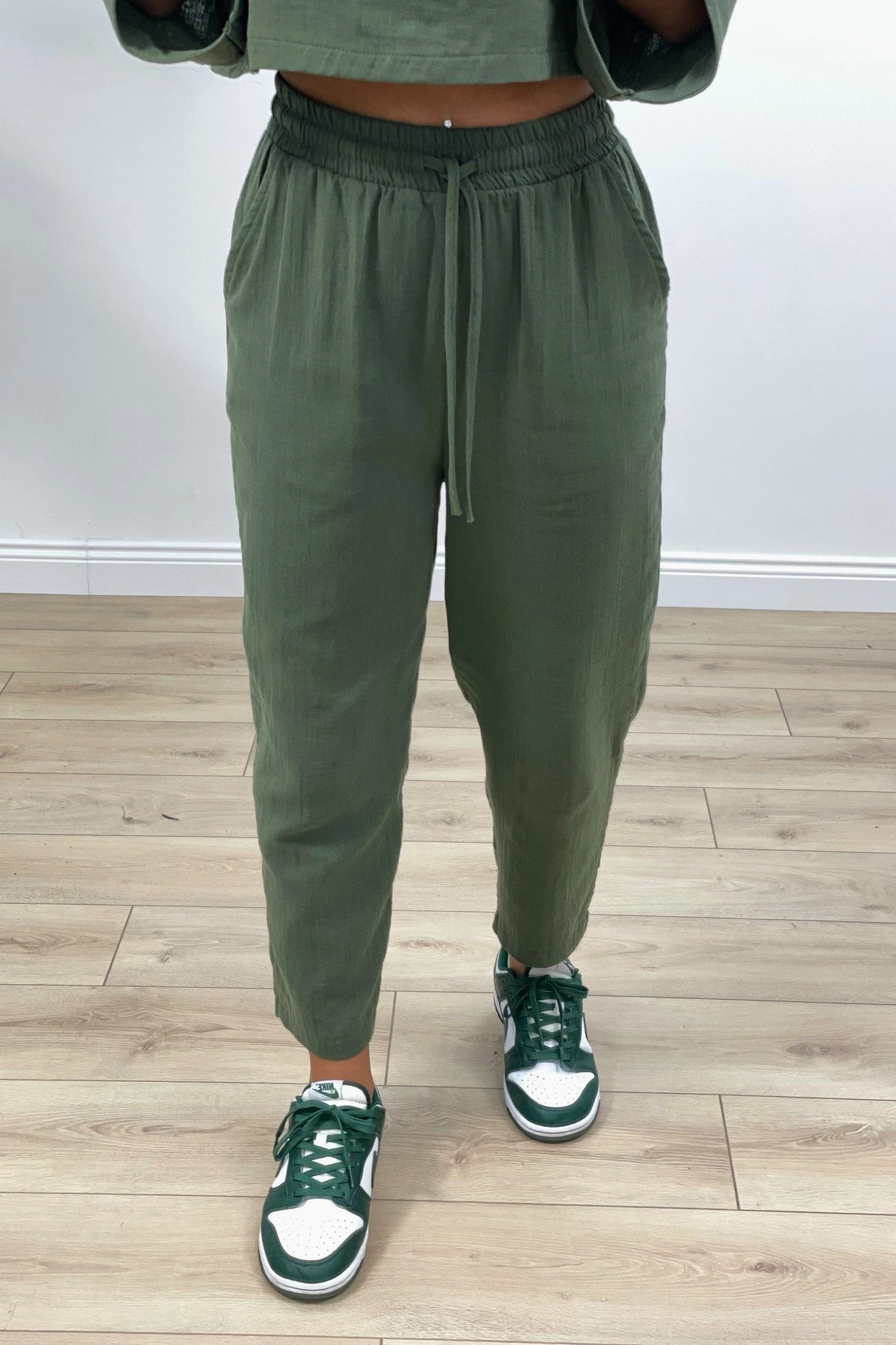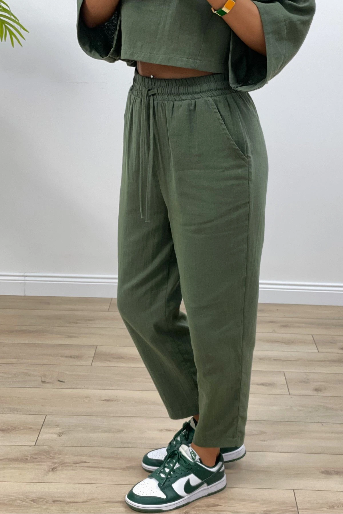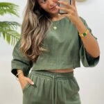CROP BLUZ+PANTOLON PAMUK TAKIM – KOYU HAKİ