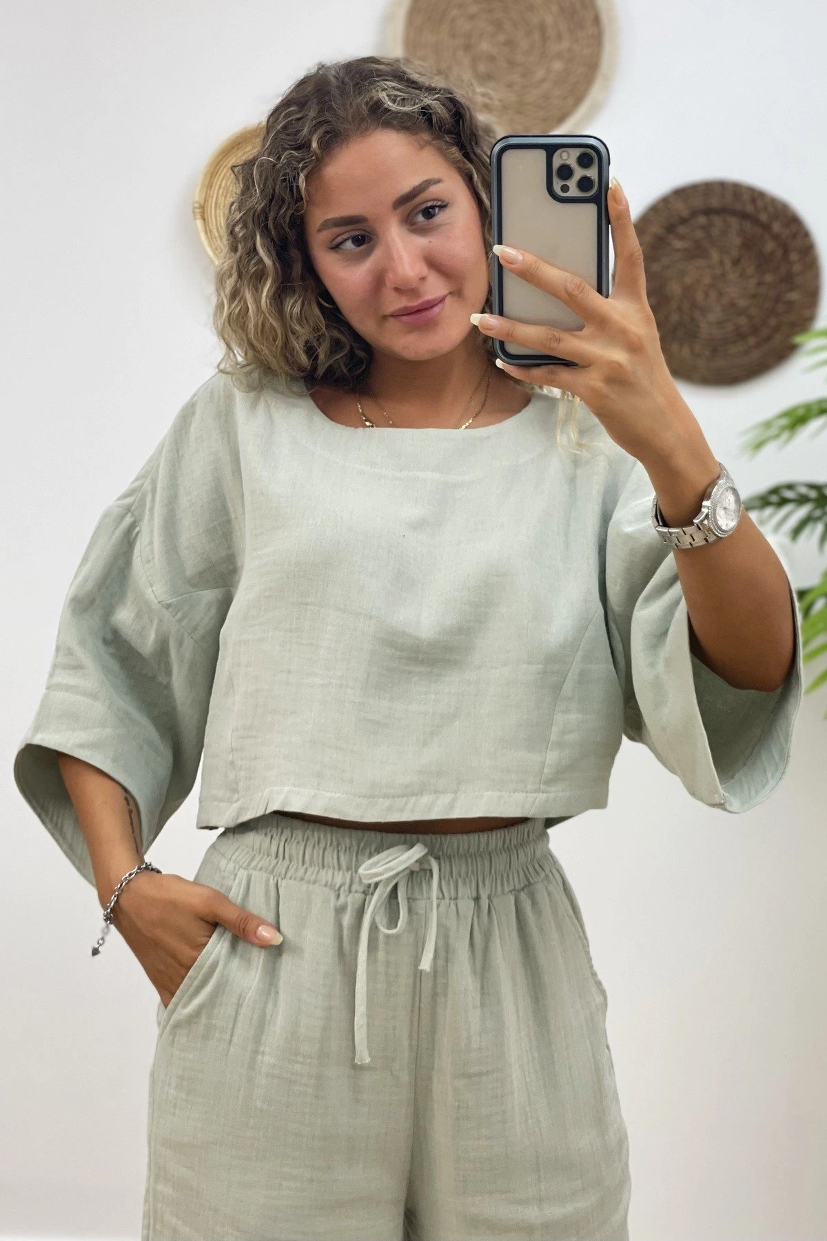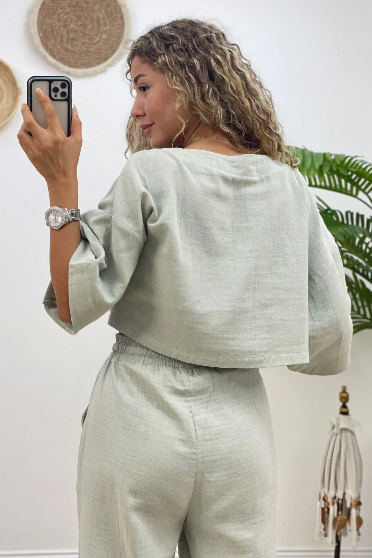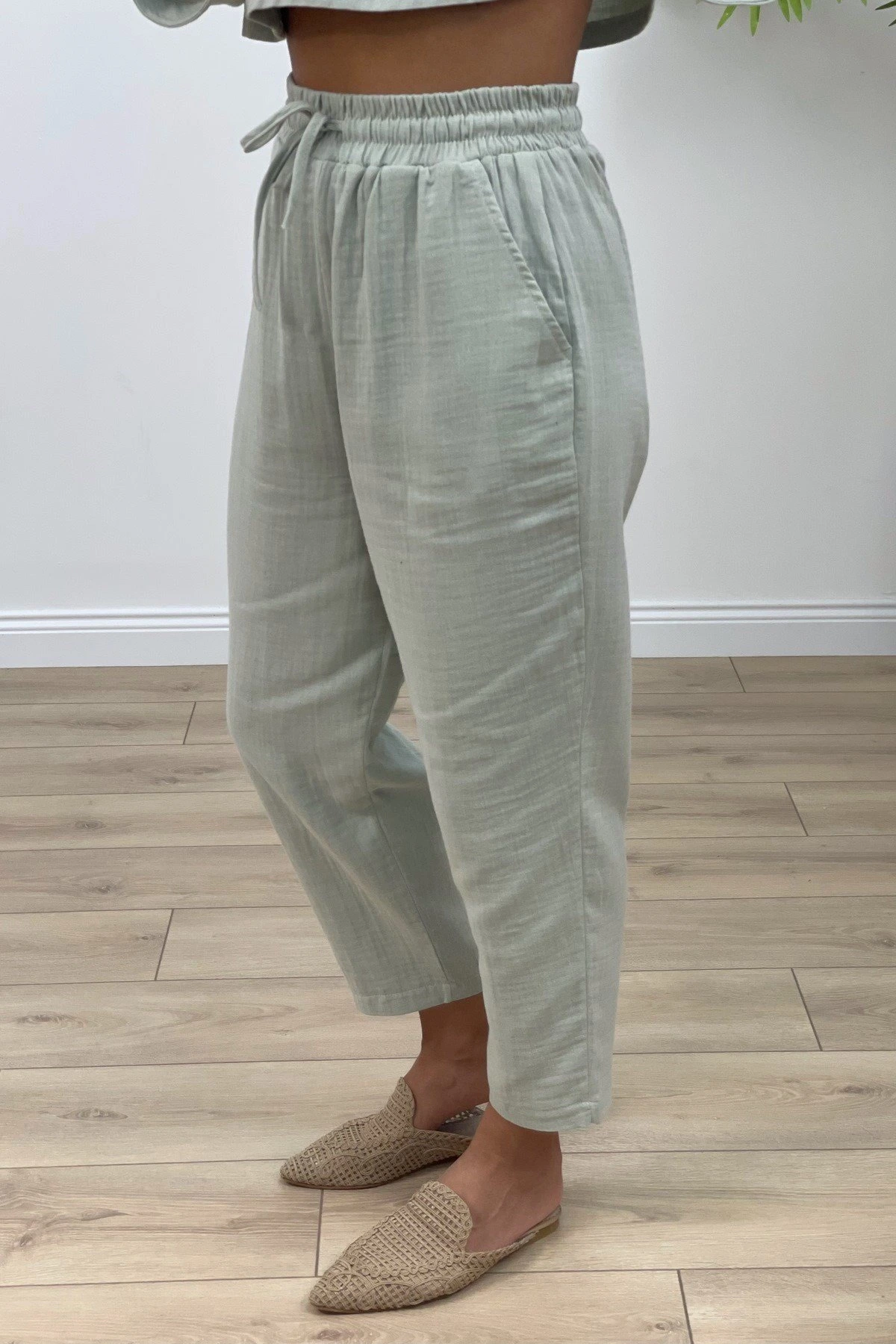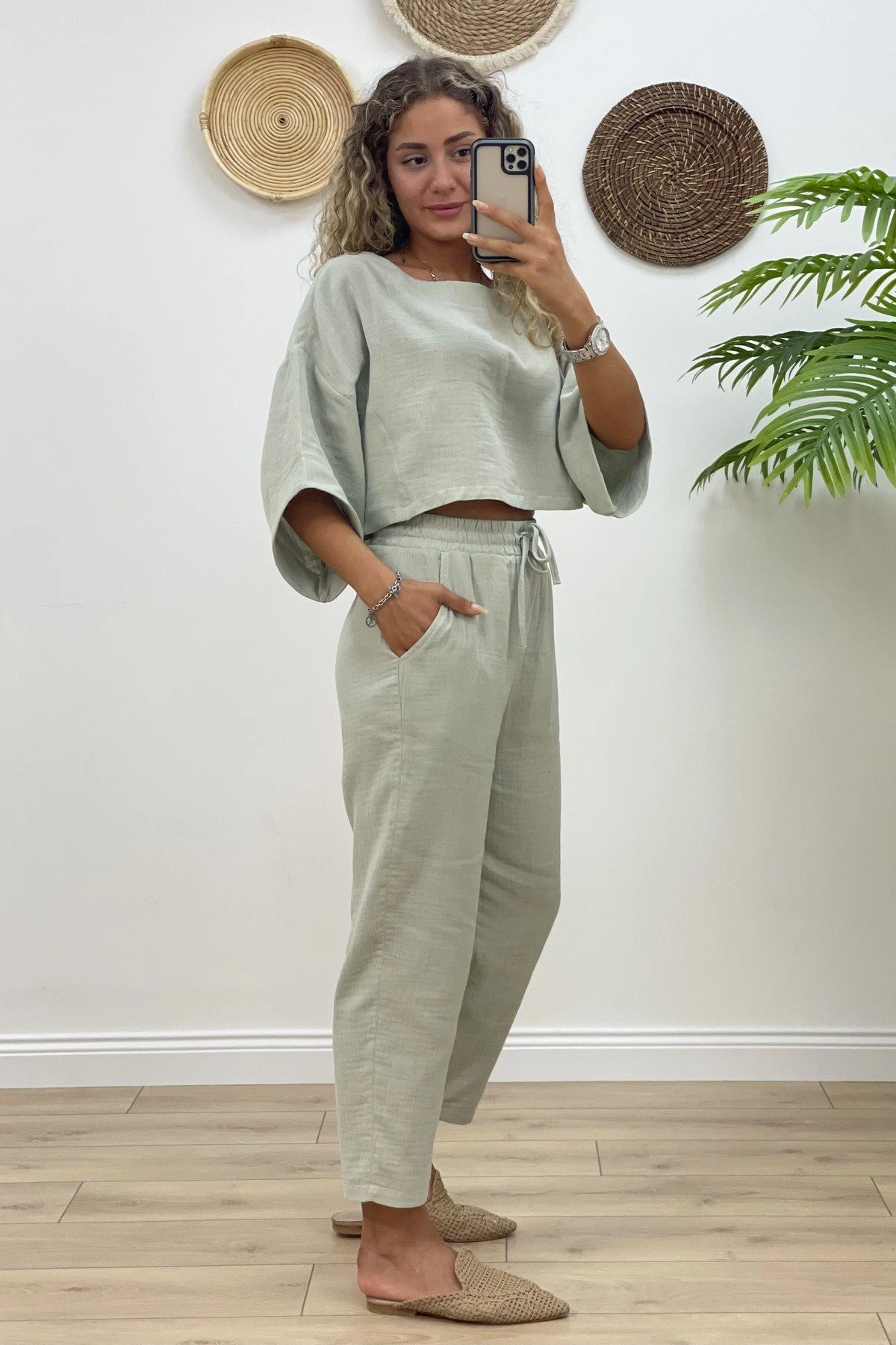 CROP BLUZ+PANTOLON PAMUK TAKIM – MİNT YEŞİLİ