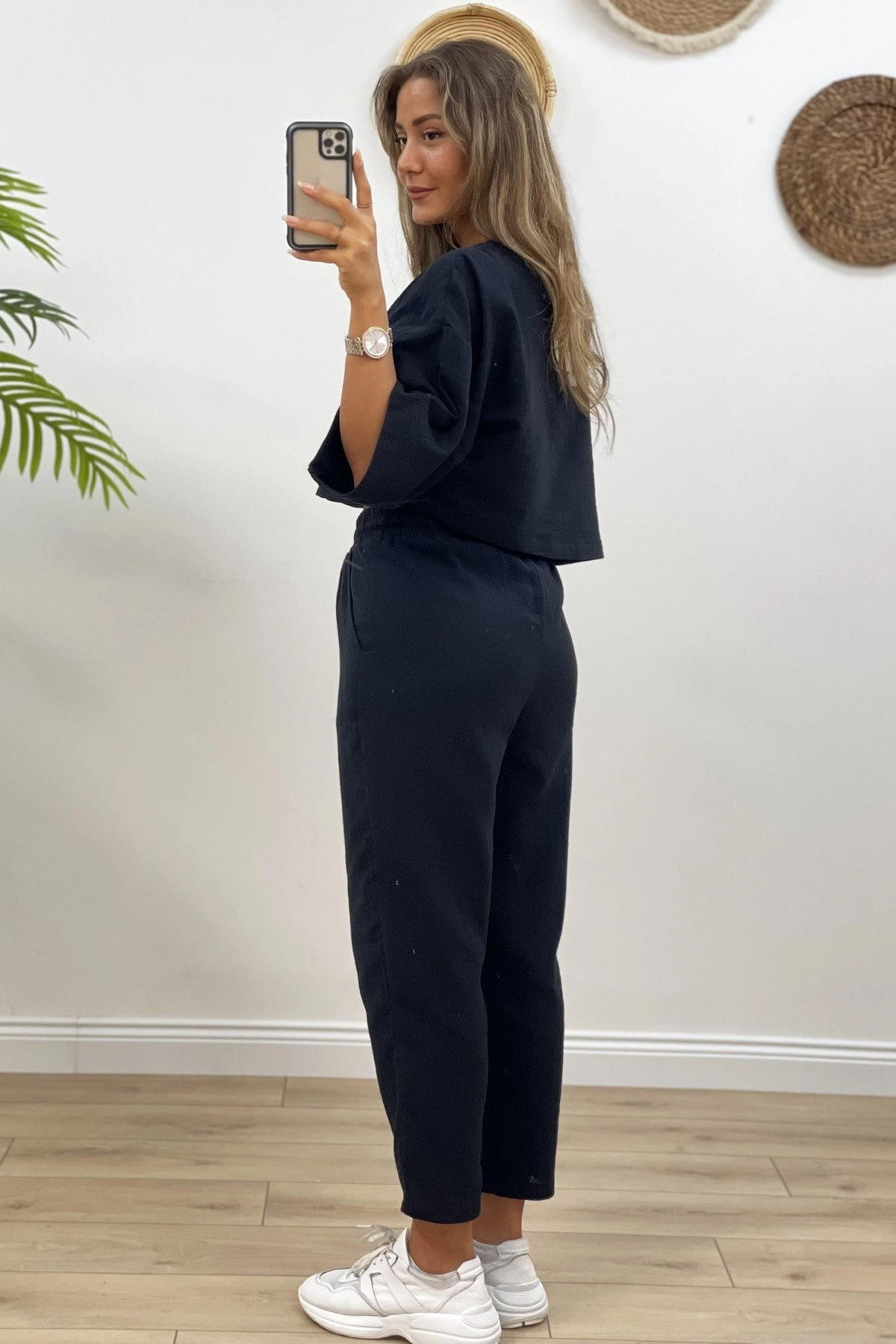 CROP BLUZ+PANTOLON PAMUK TAKIM – SİYAH