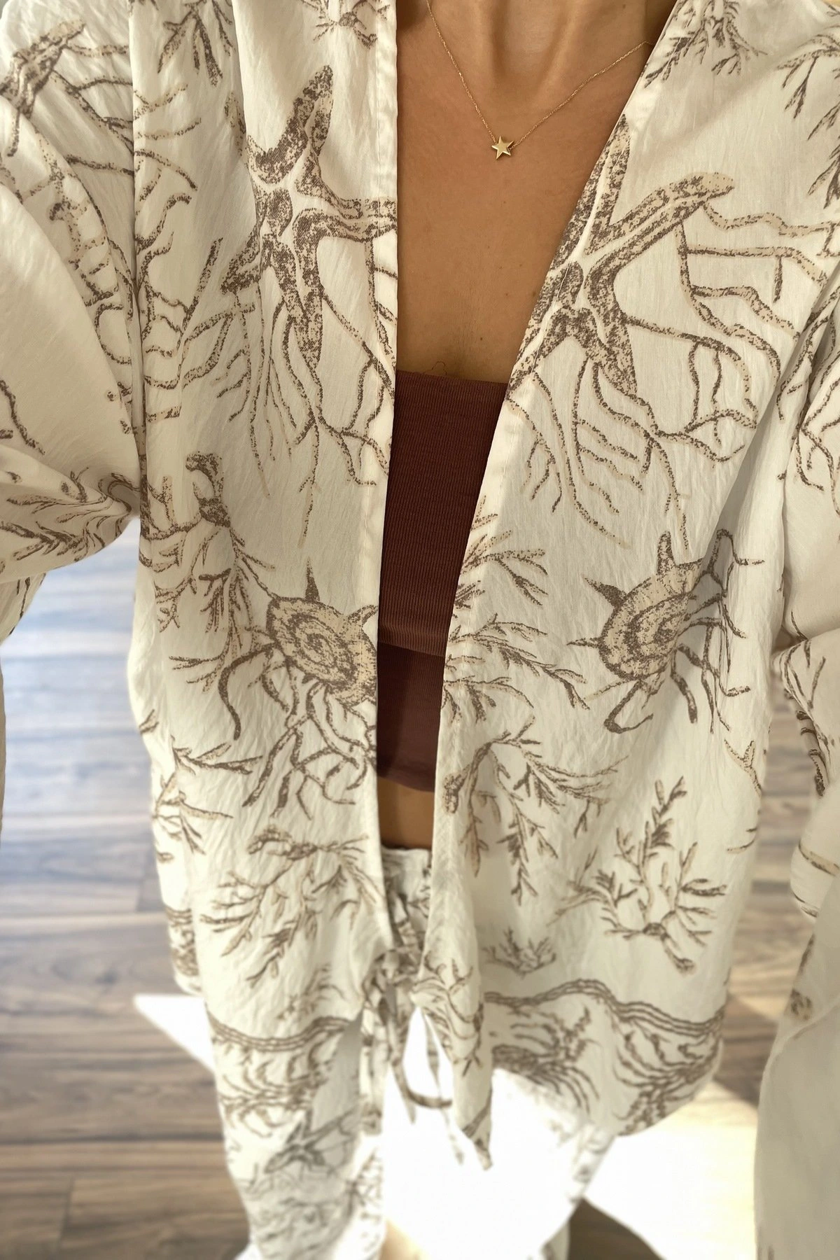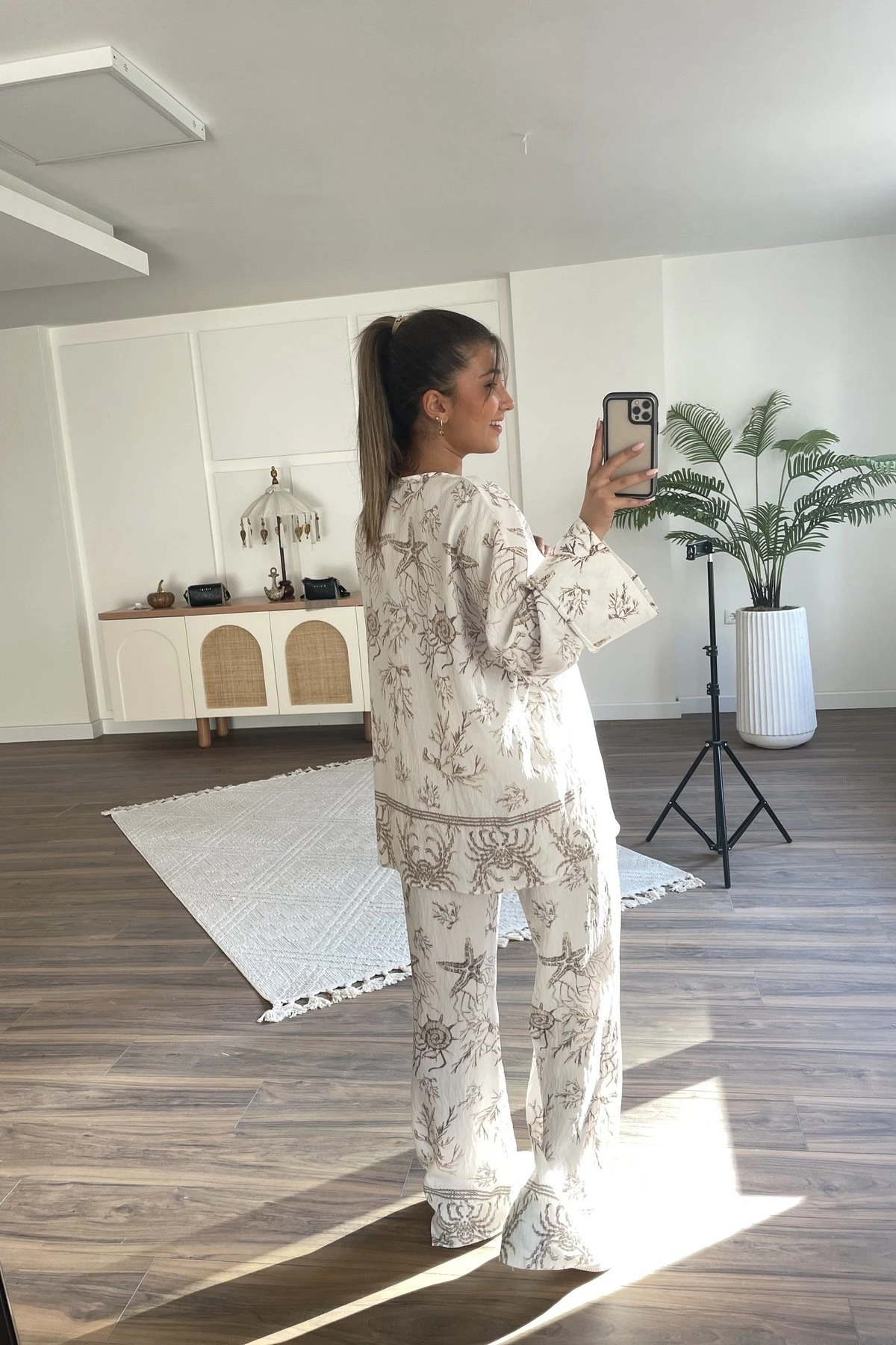 DESENLİ KİMONO PANTOLON PAMUK TAKIM – BEYAZ