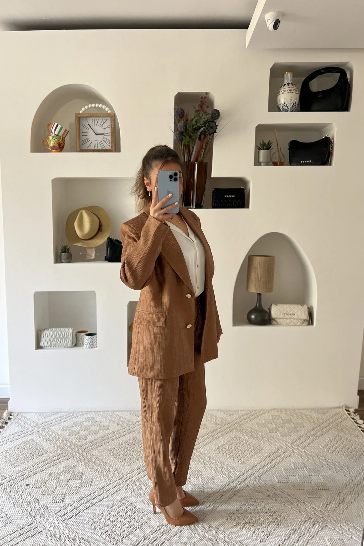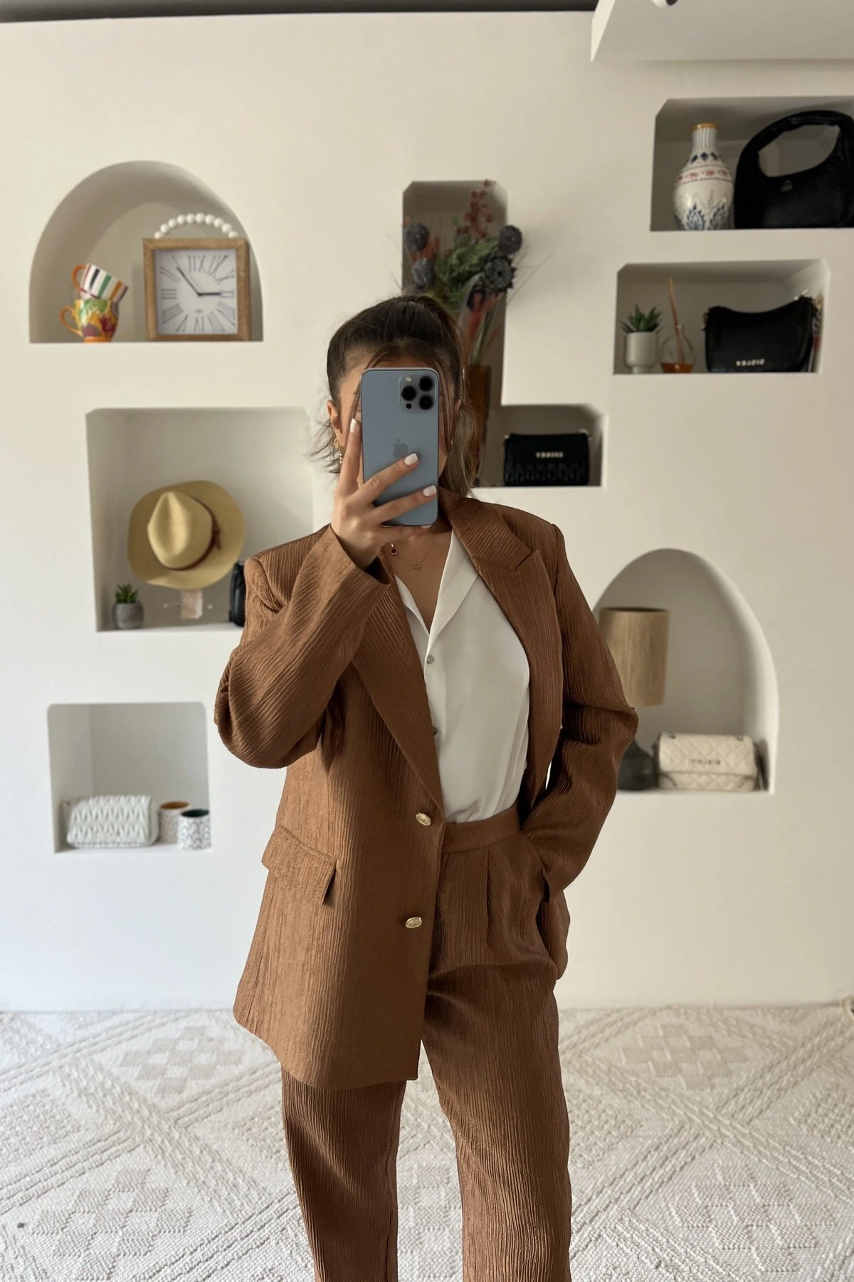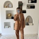 DOKULU VİSKON KUMAŞ HAVUÇ PANTOLON PARILTILI TAKIM – BRONZ