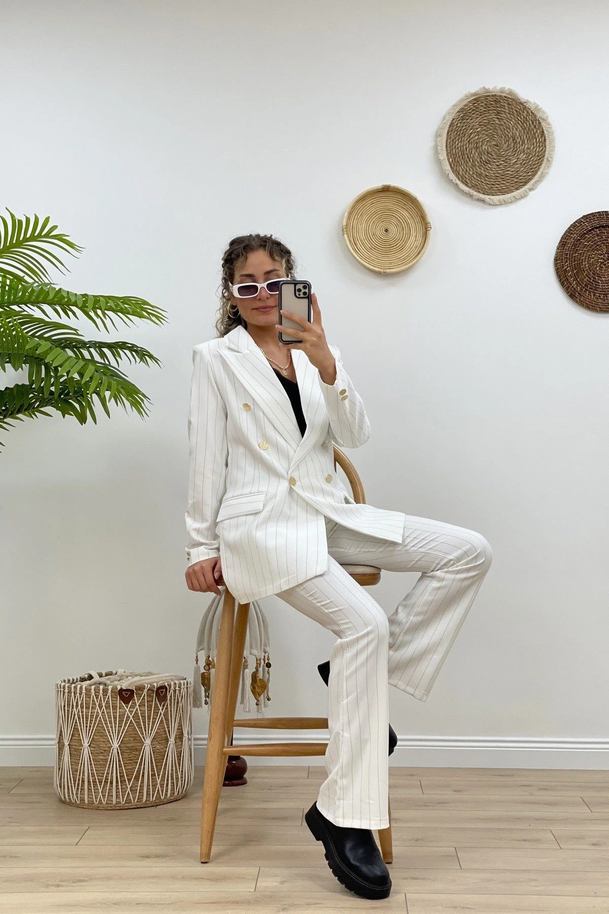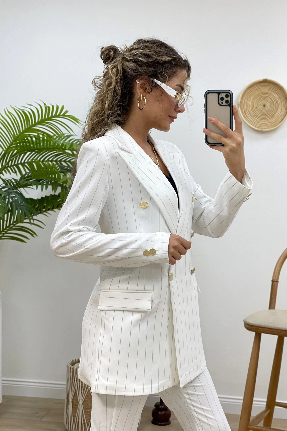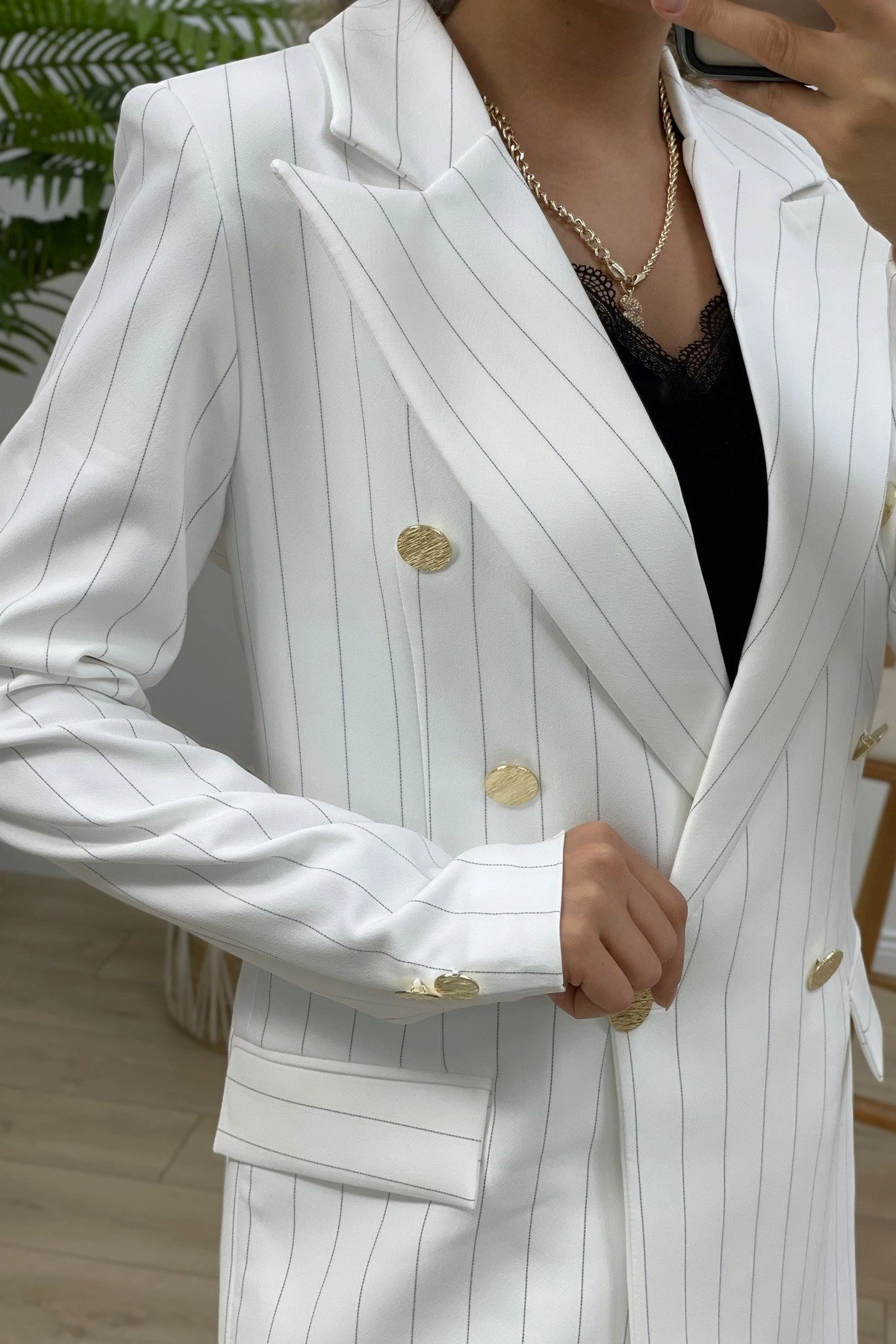 GOLD DÜĞME LİKRALI İSPANYOL PAÇA CEKET TAKIM – BEYAZ