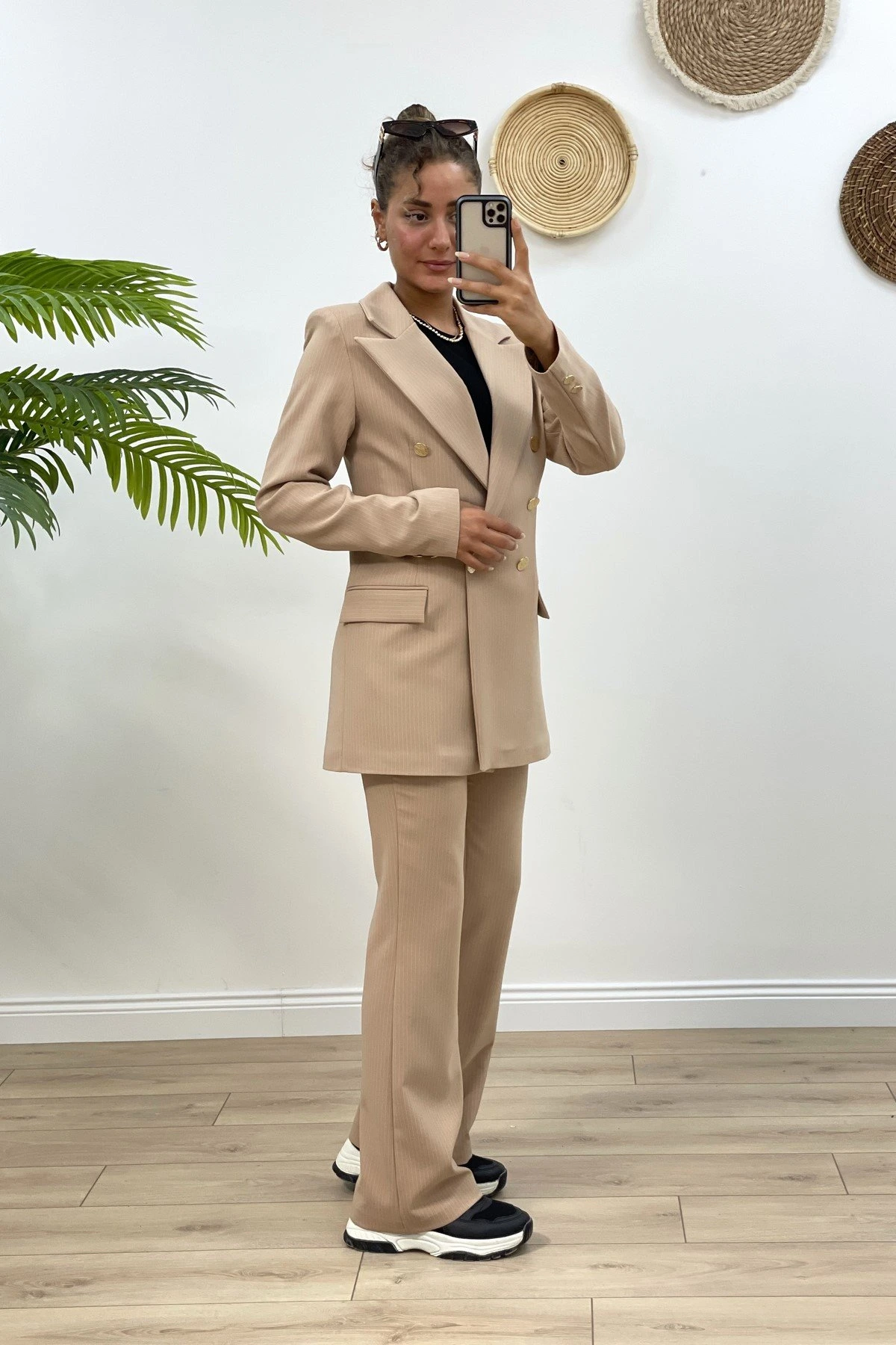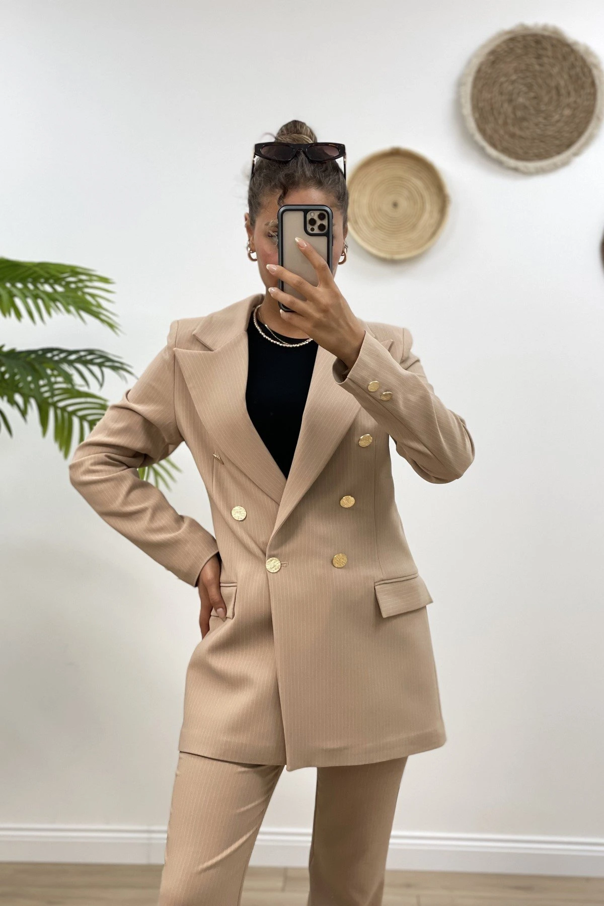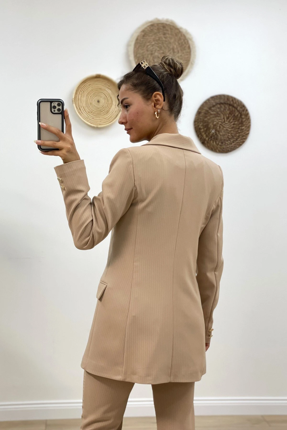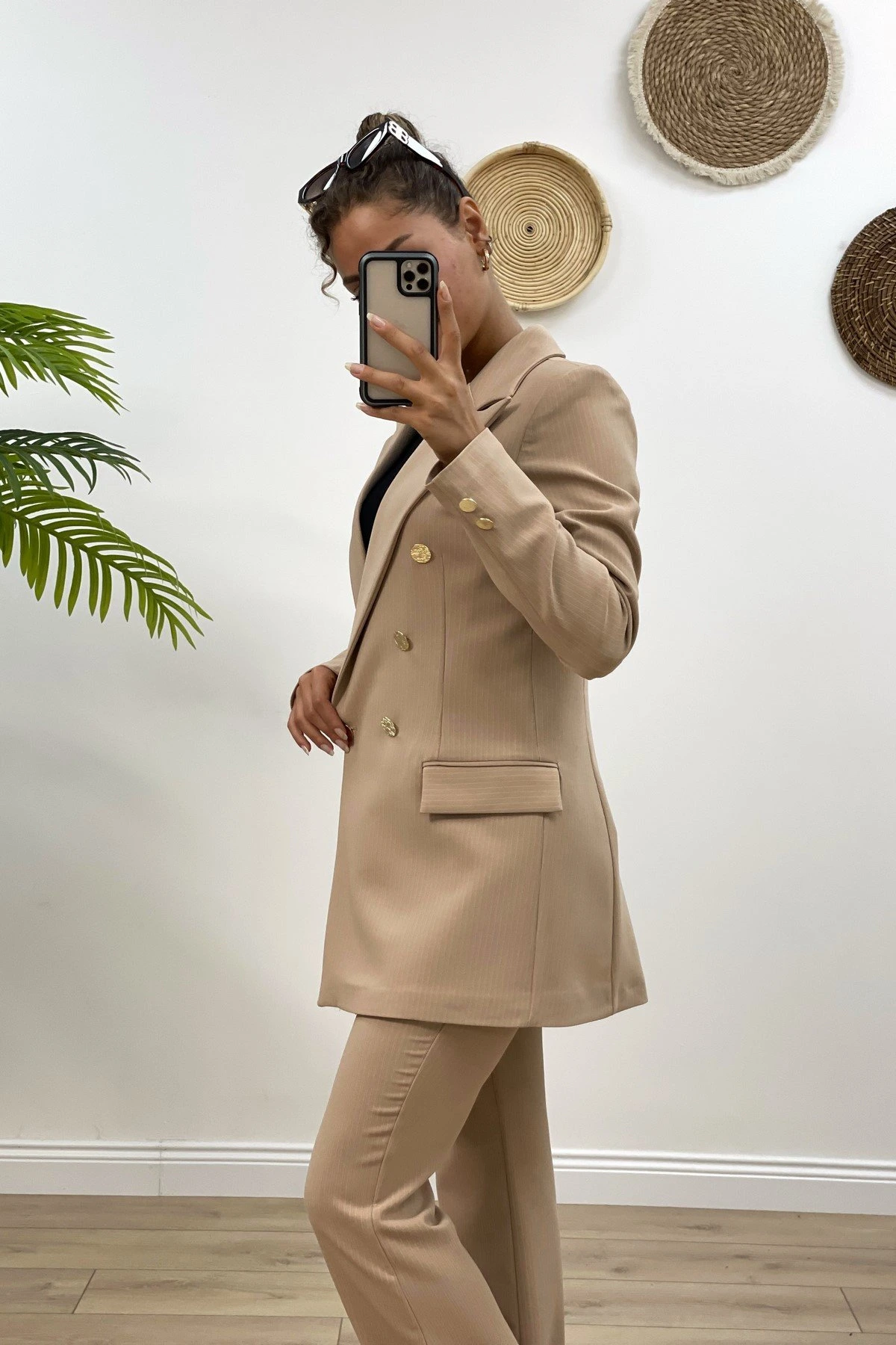 GOLD DÜĞME LİKRALI İSPANYOL PAÇA CEKET TAKIM – KARAMEL