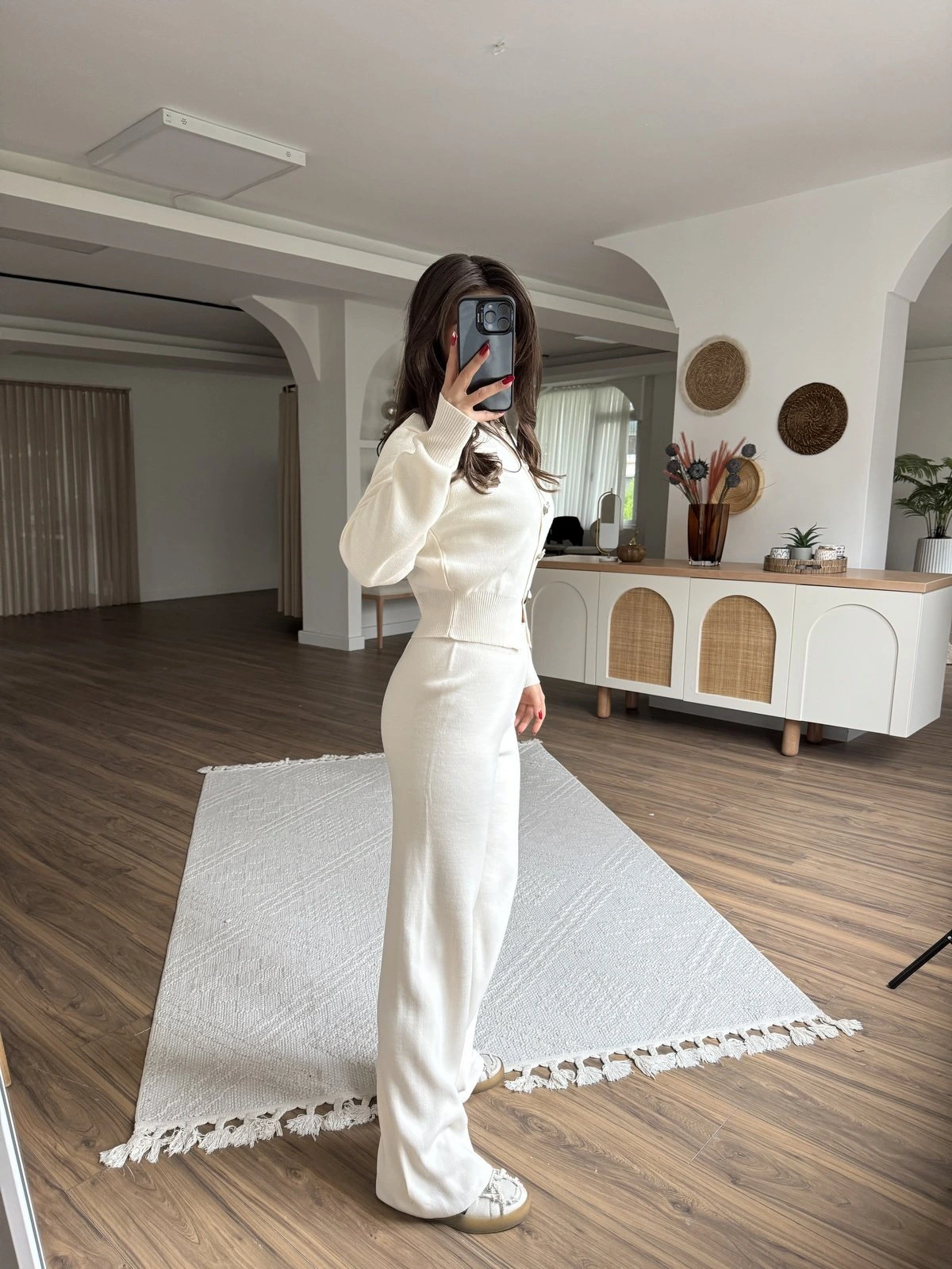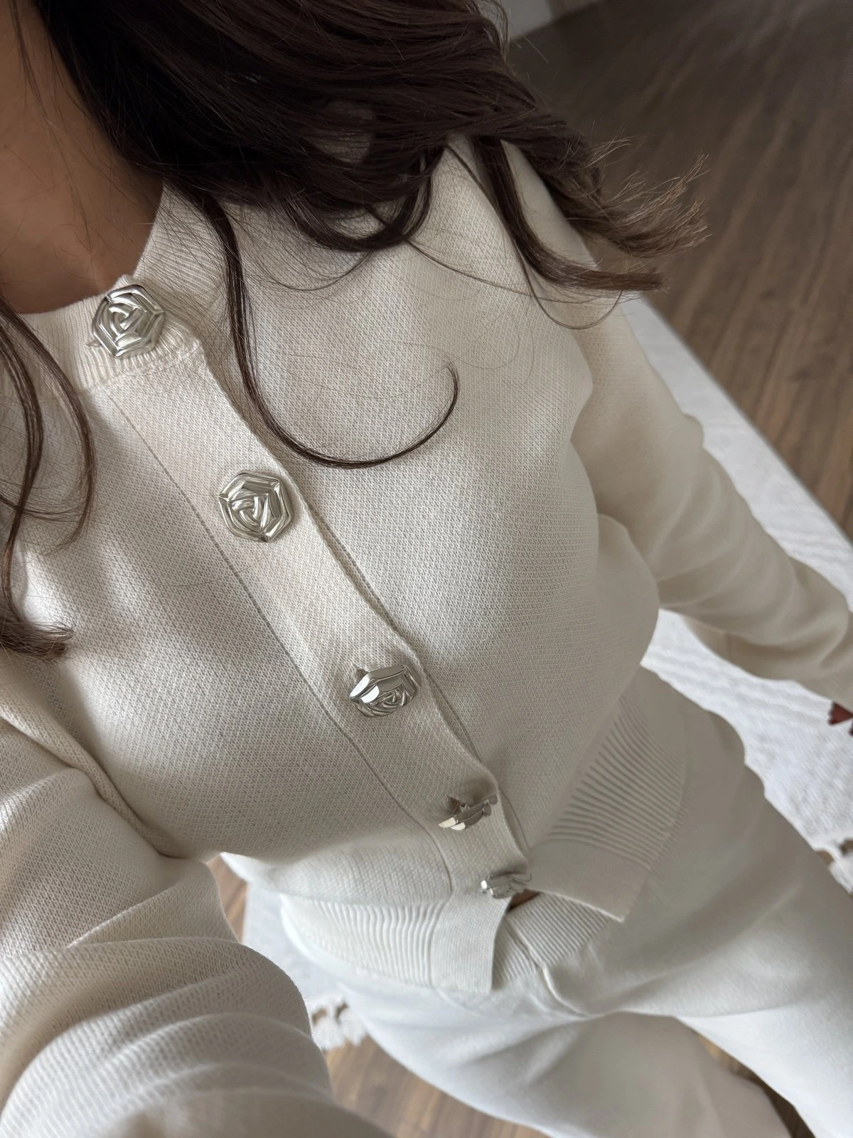 GÜL DÜĞME BİSİKLET YAKA HIRKA TRİKO PANTOLON TAKIM – TAŞ