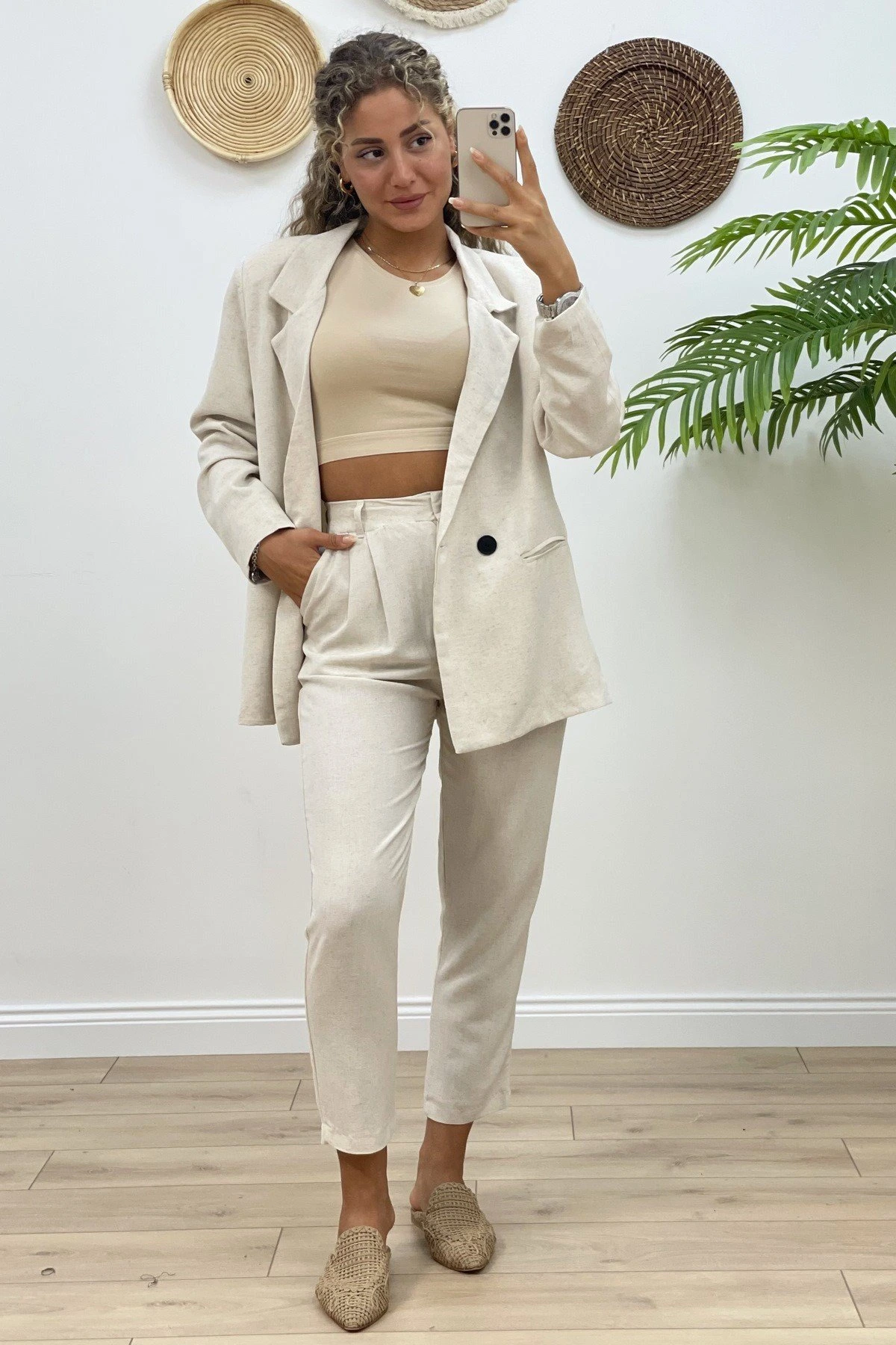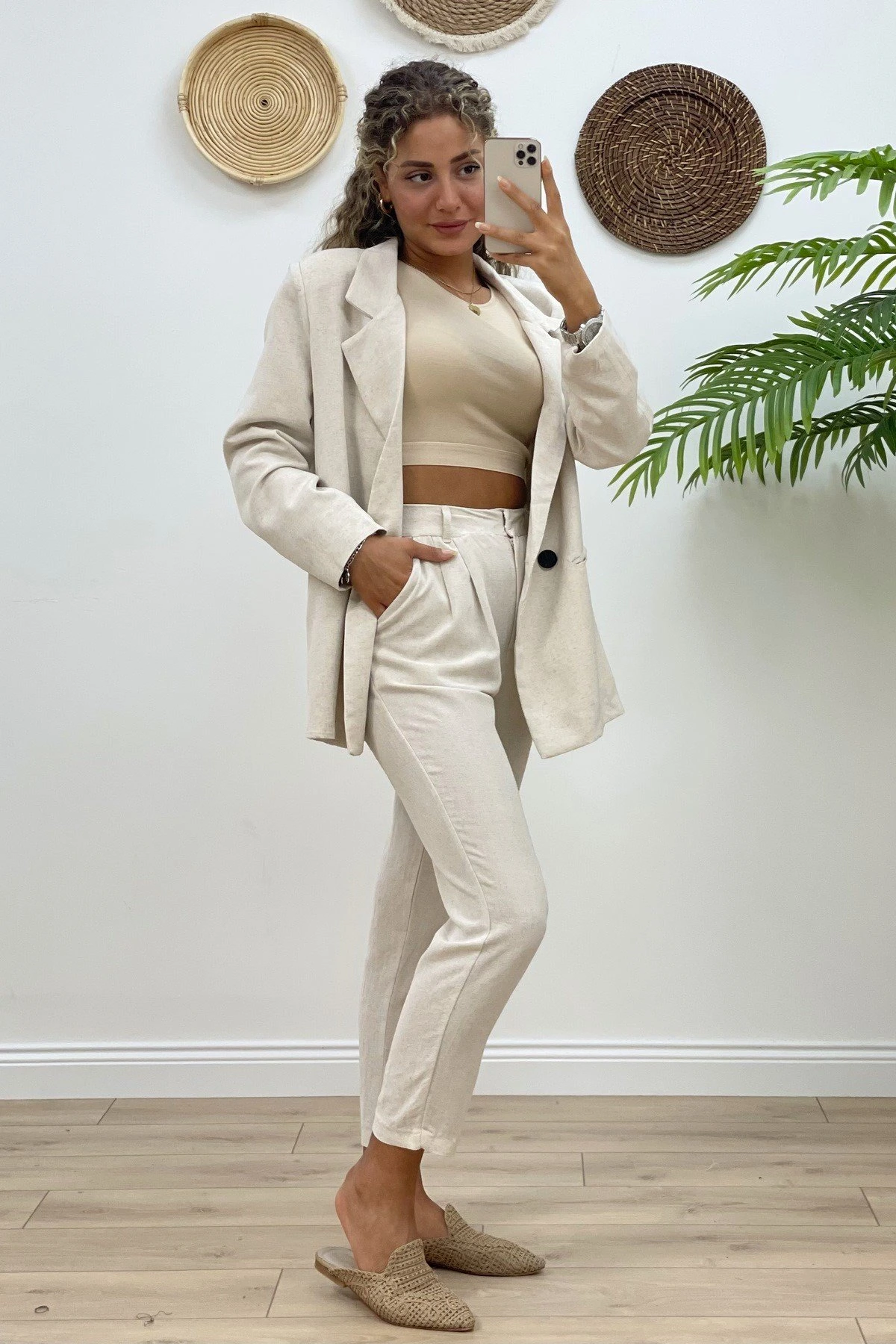 İKİ DÜĞME CEKET+ PANTOLON TAKIM – BEJ