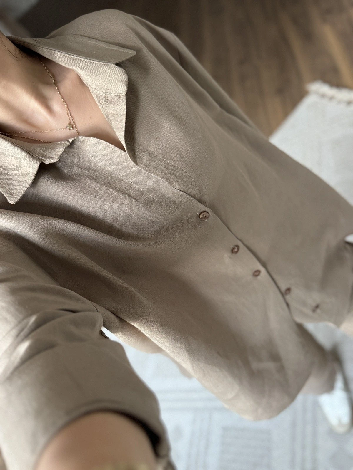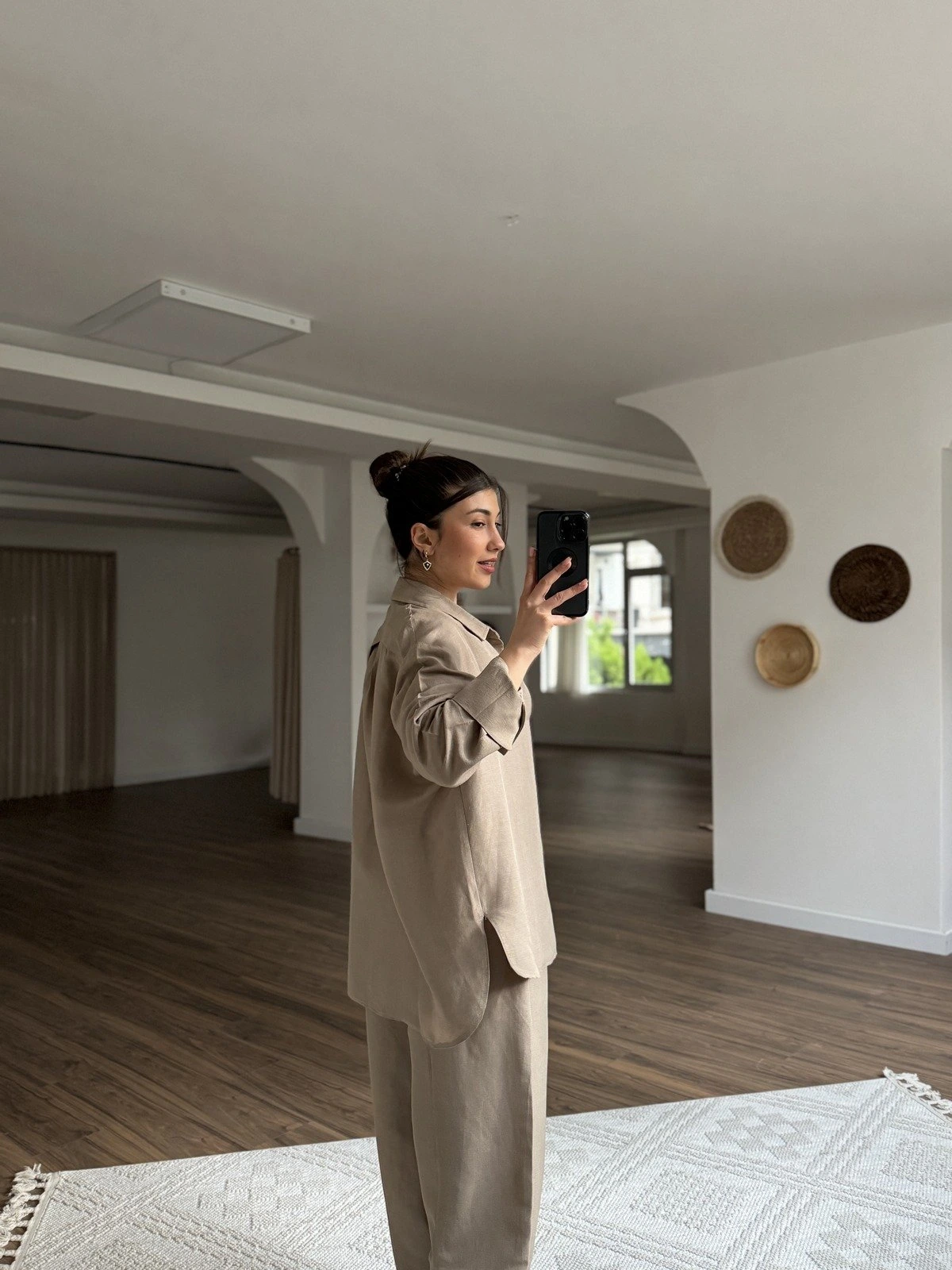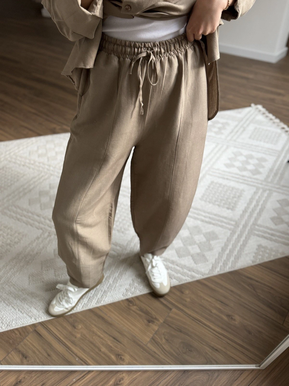 KETEN VİSKON GÖMLEK BALON PANTOLON TAKIM – VİZON