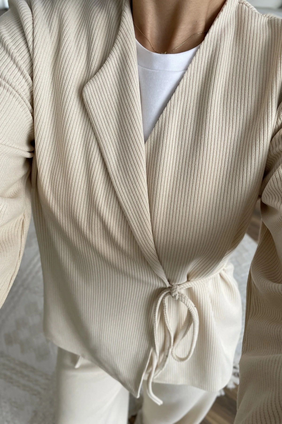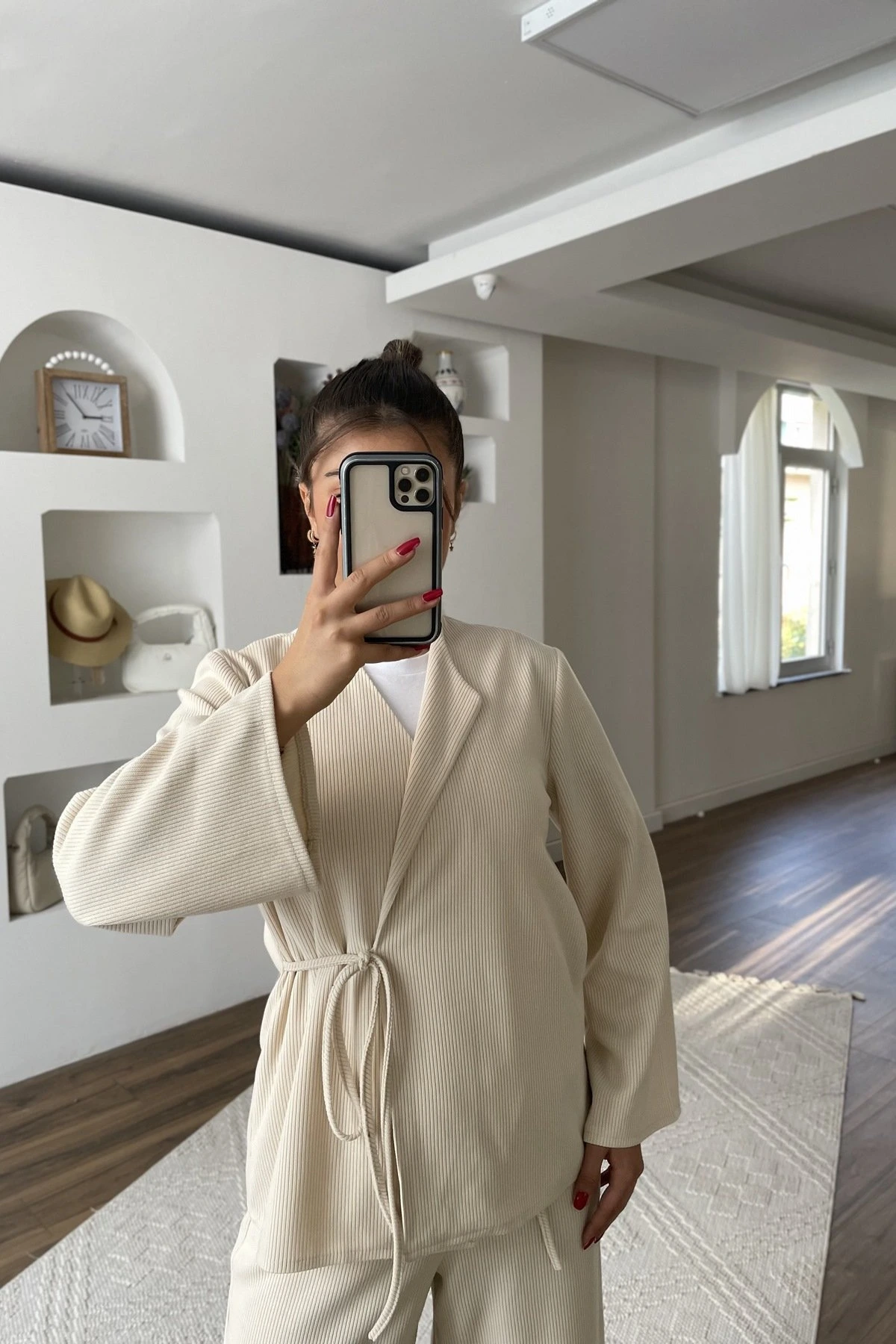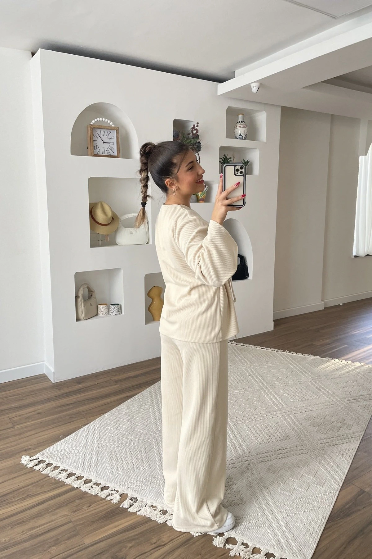 KRUVAZE BAĞLAMA CEKET BOL PAÇA PANTOLON TRİKO TAKIM – TAŞ