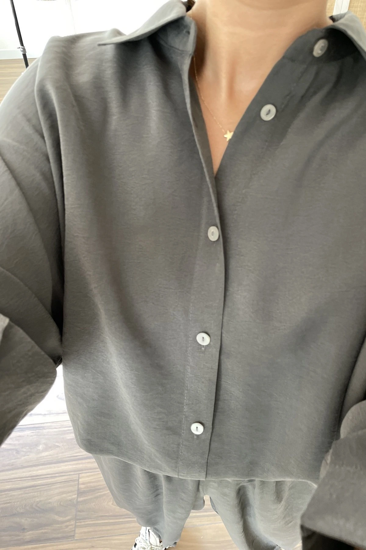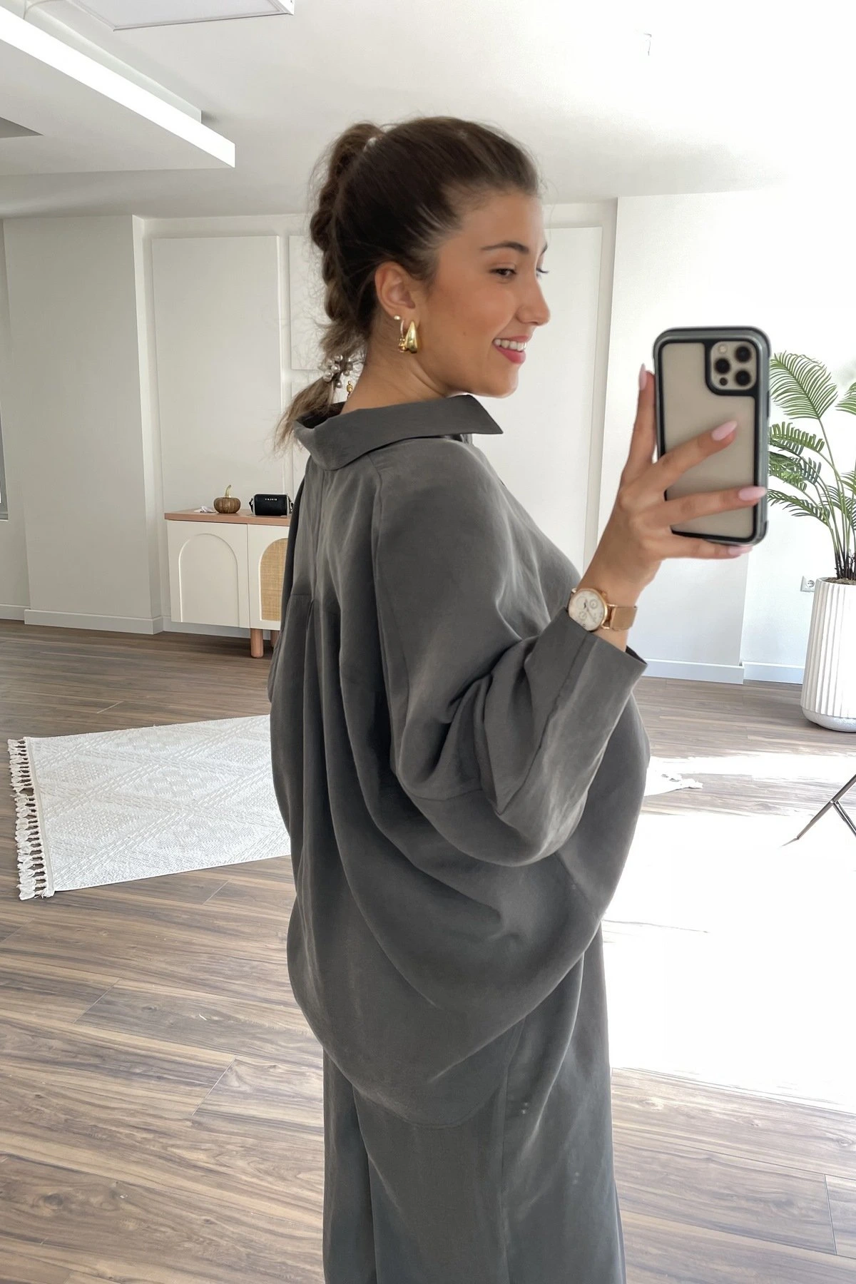 MODAL GÖMLEK BALON BİLEK DİKİŞ PANTOLON TAKIM – ANTRASİT