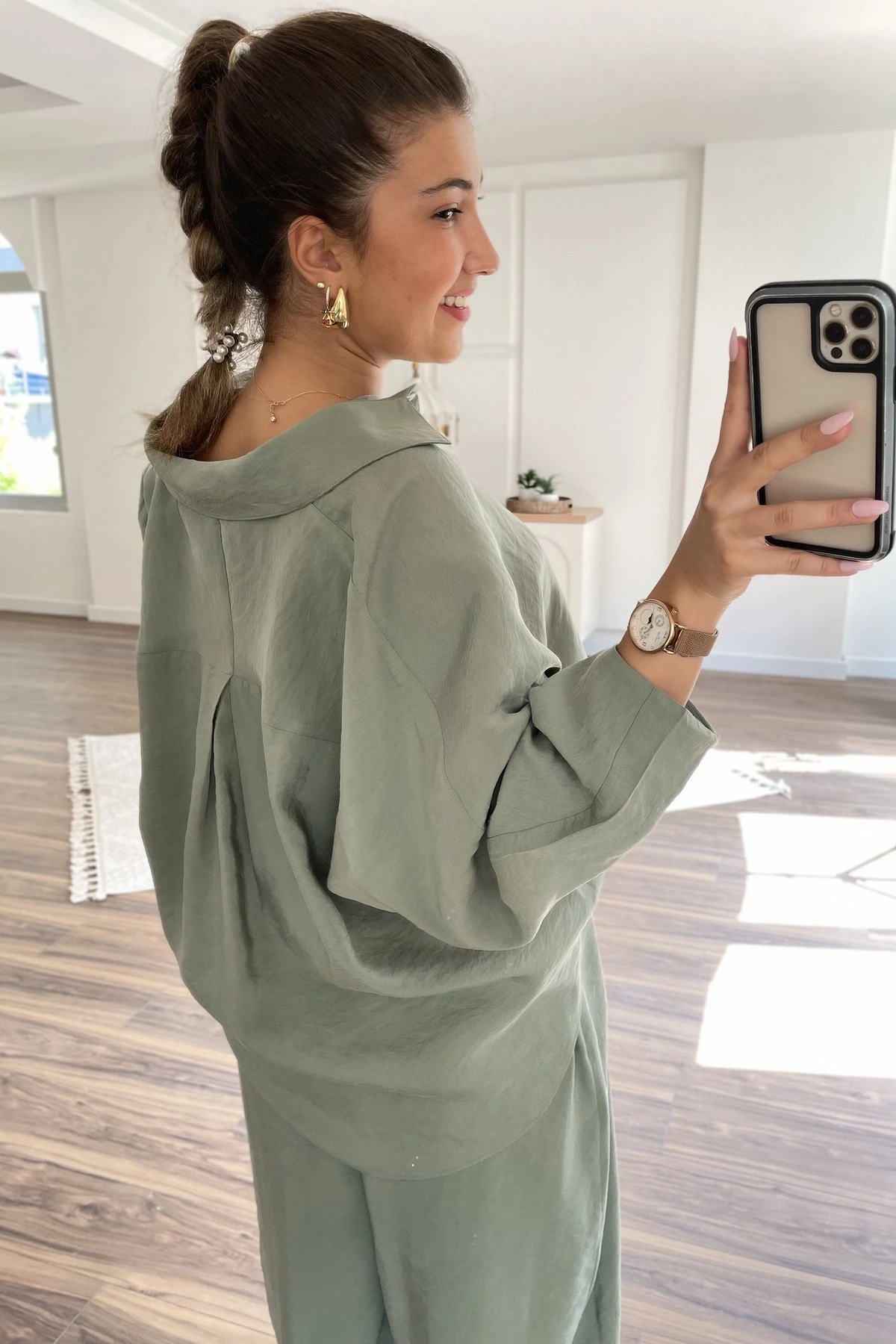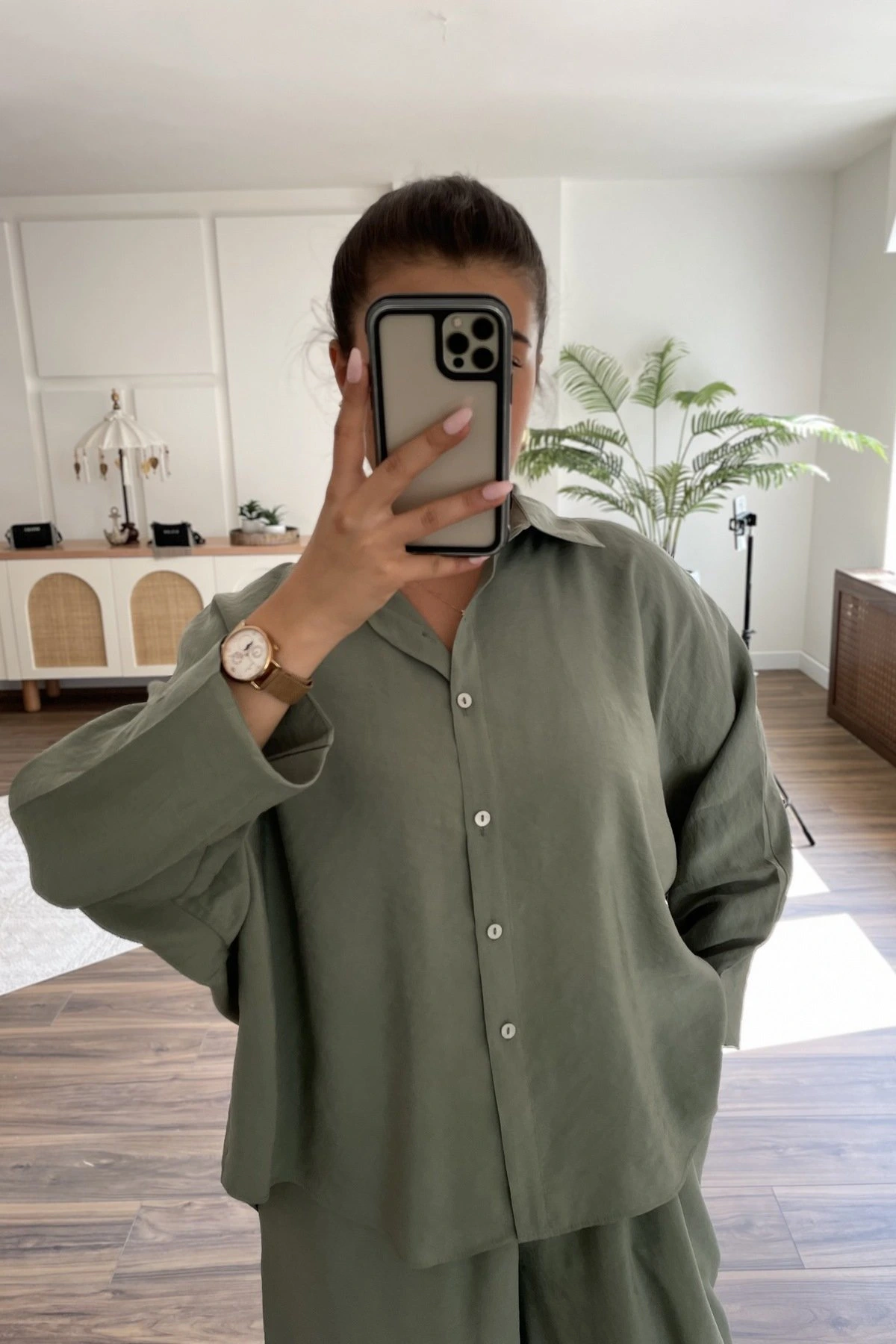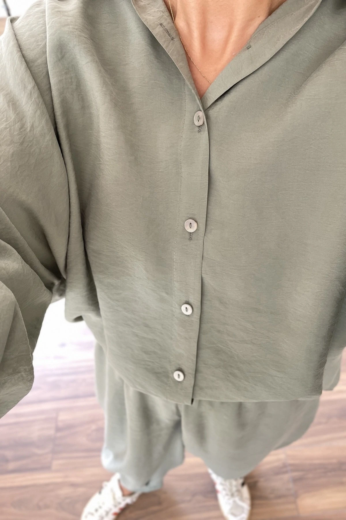 MODAL GÖMLEK BALON BİLEK DİKİŞ PANTOLON TAKIM – HAKİ
