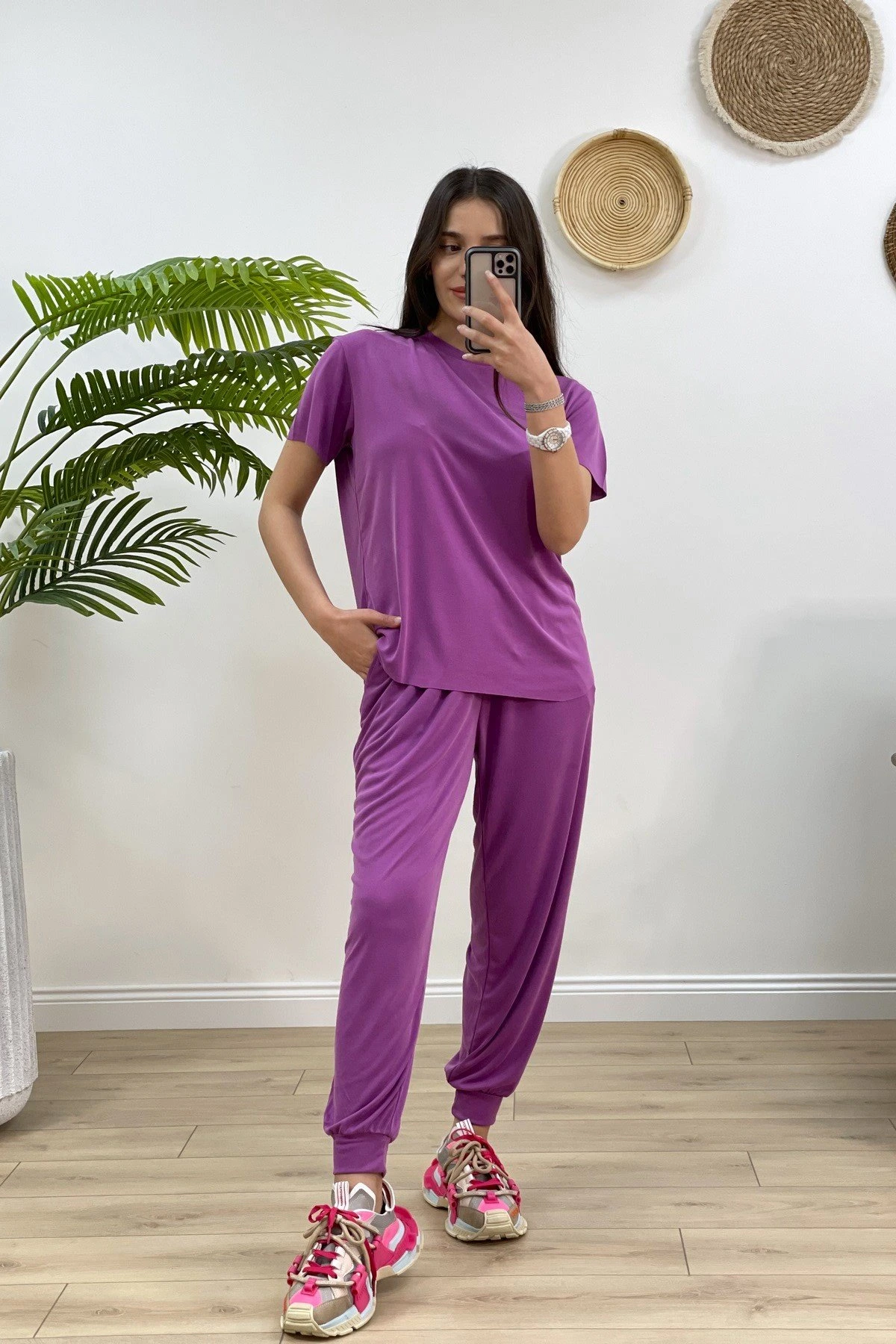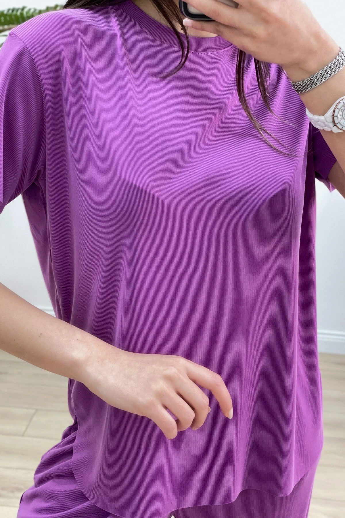 MODAL RİBANALI TİŞÖRT EŞOFMAN TAKIM – PATLICAN MORU