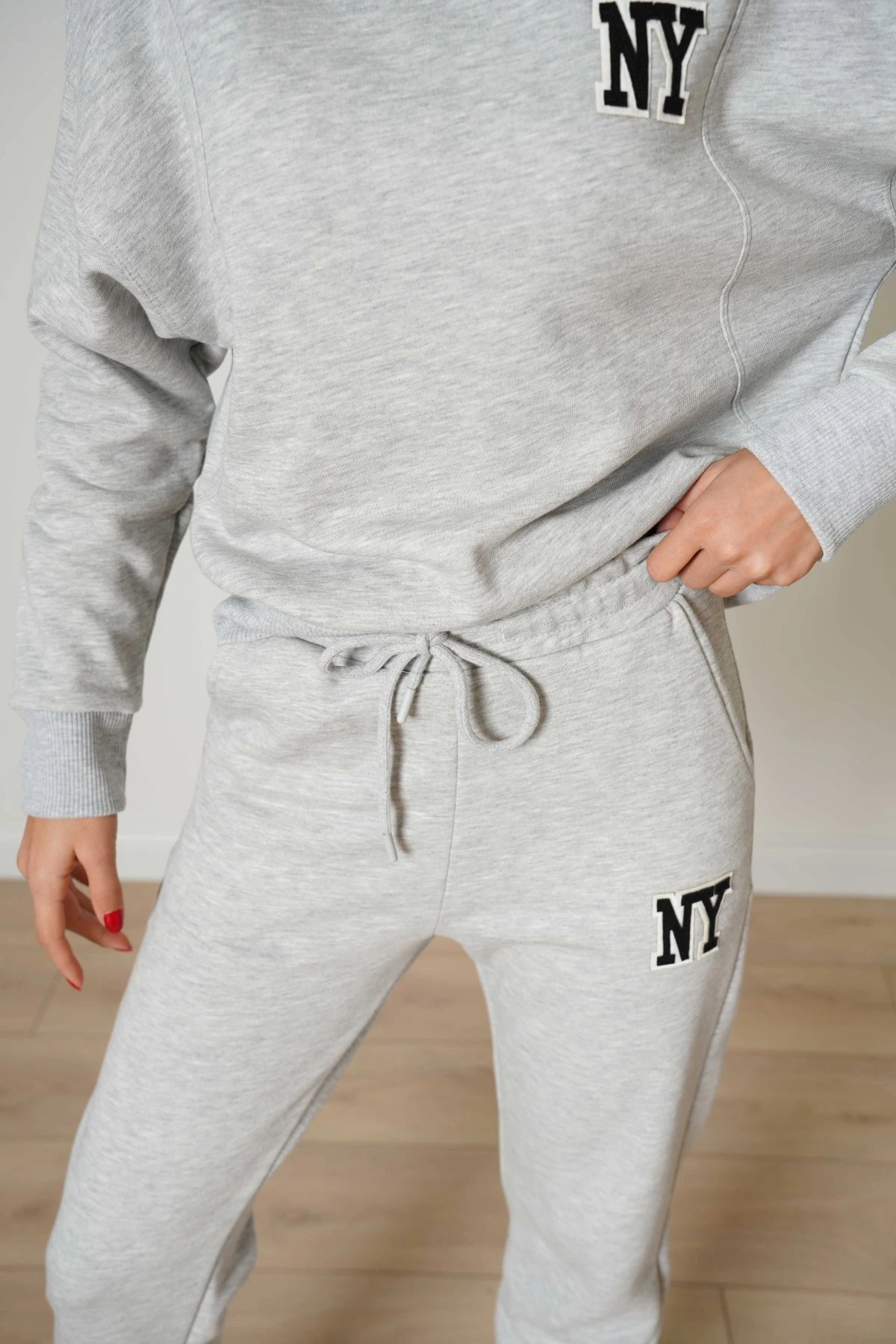 NY YAZI BİSİKLET YAKA CEPLİ BİLEK LASTİK EŞOFMAN TAKIM – GRİ