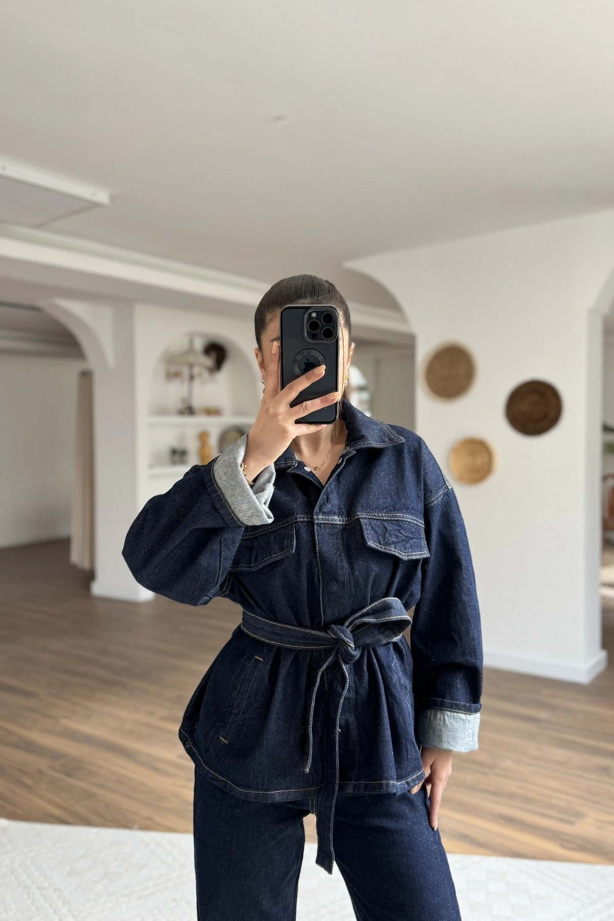 ÖN ÇITÇIT BELKEMERLİ CEKET PANTOLON JEAN TAKIM – LACİVERT